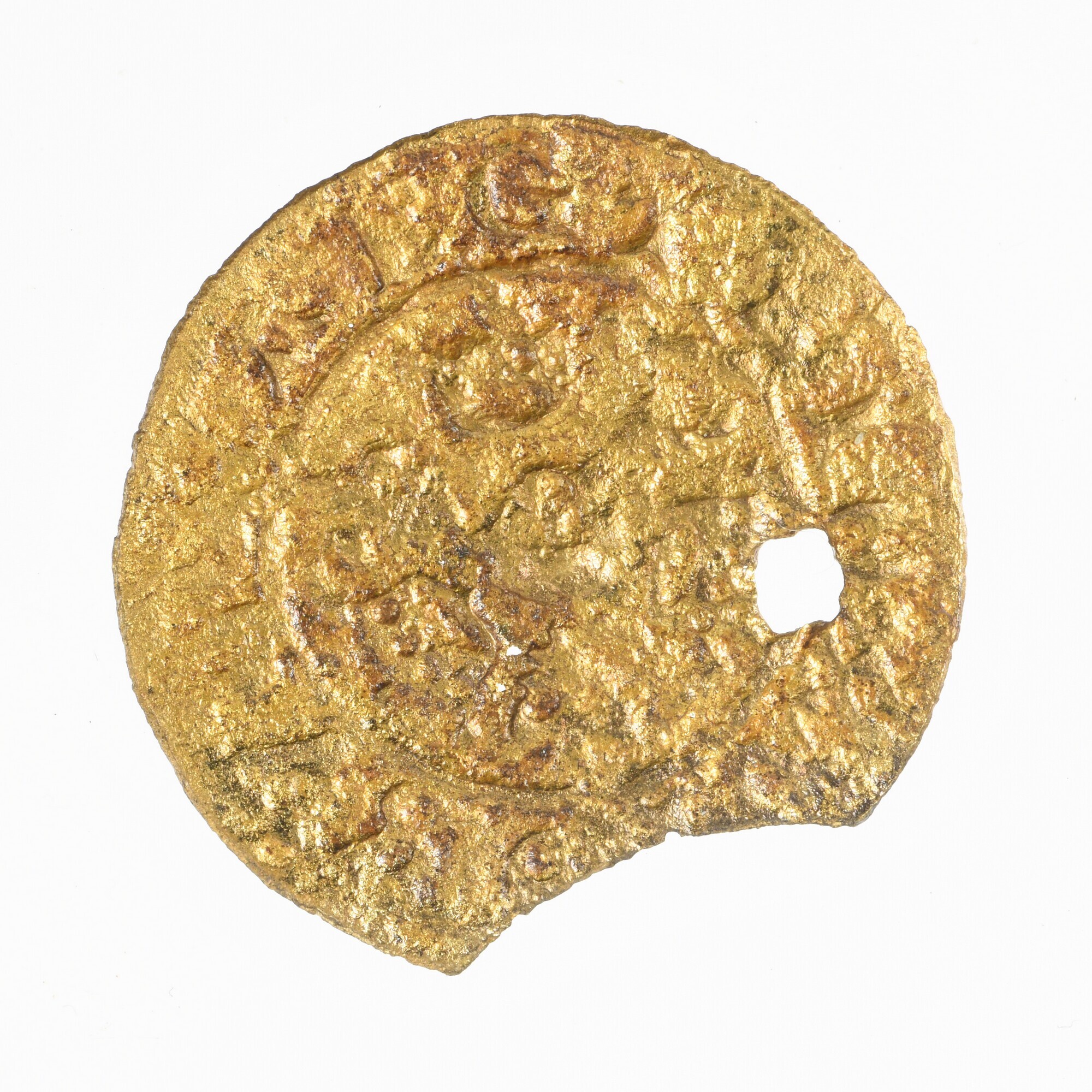 Rekenpenning; vz.: drie kronen en Franse lelies binnen cirkel met pseudorandtekst; kz.: rijksappel in driepas binnen cirkel met pseudorandtekst; secundaire doorboring?; herkomst: Neurenberg; gewicht: 1.26 gram