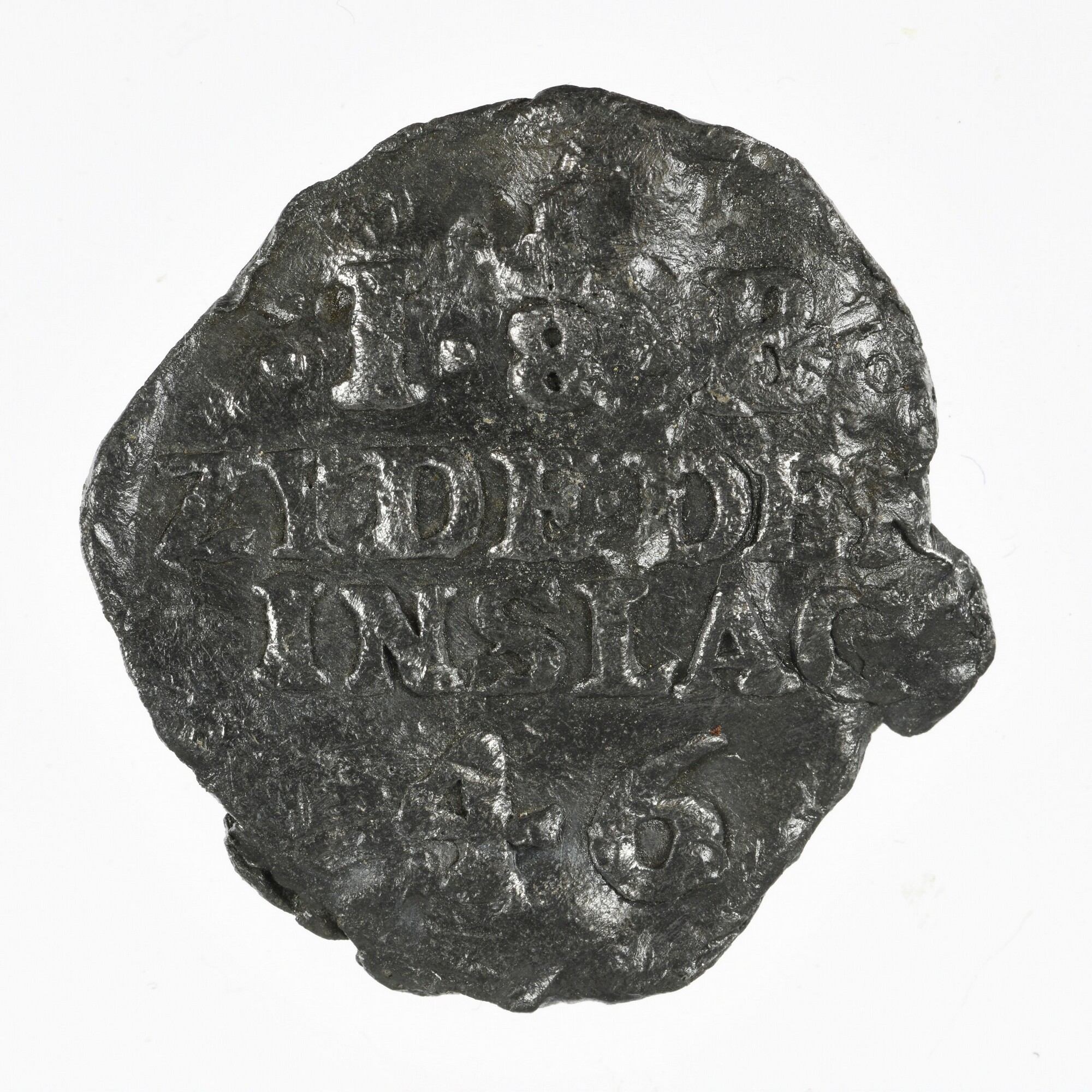 Textiellood; vz.: in vijf regels (onduidelijk symbool) / • I • 8 • B • / ZYDE•DEN / INSLAG / 46; kz.: stadswapen Leiden; herkomst: Leiden