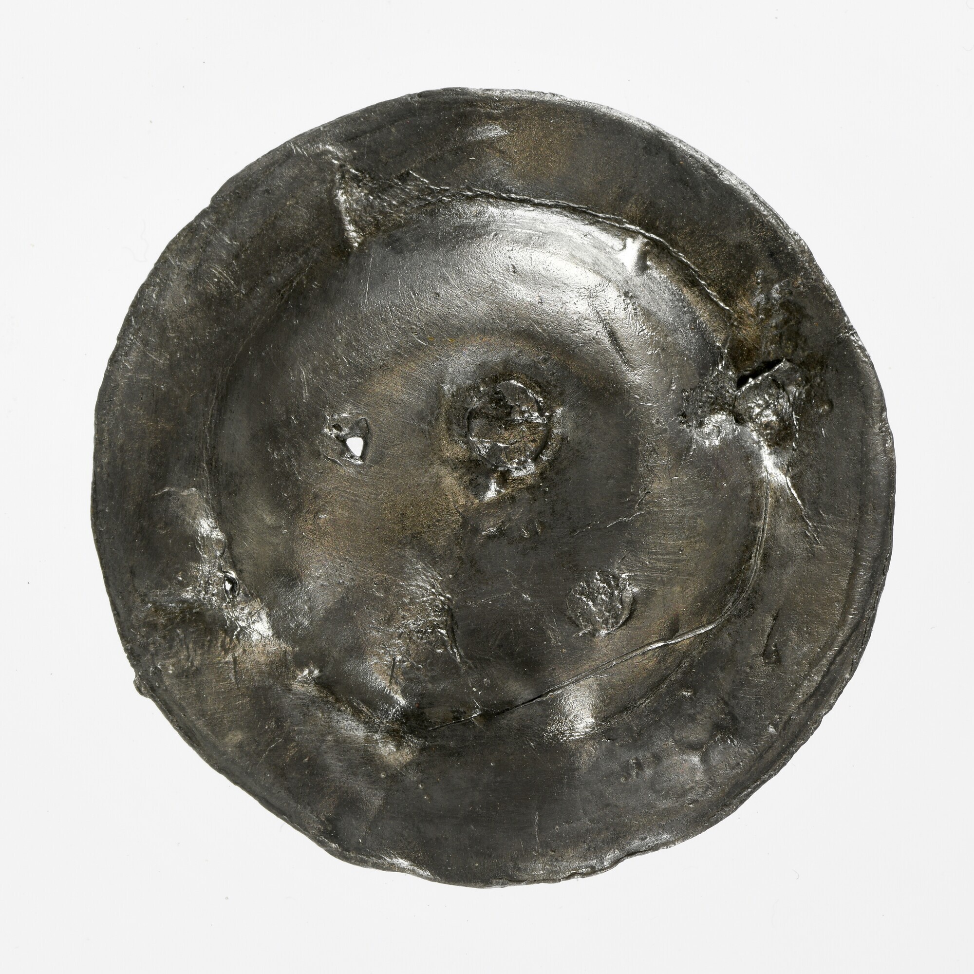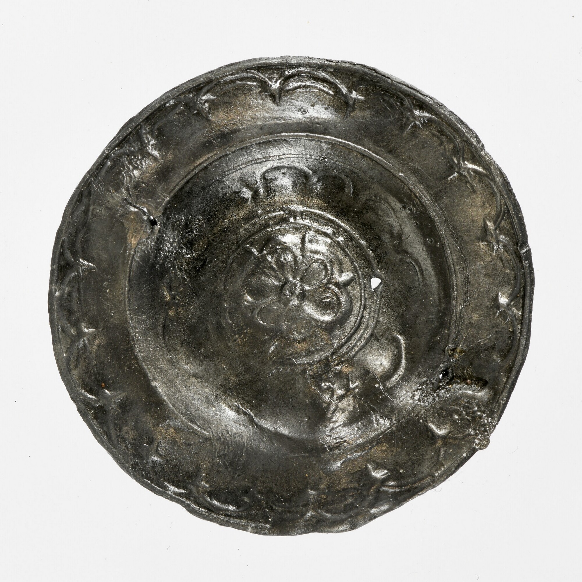 Miniatuur bord; centrale rozet met daaromheen twee cirkels van boogversieringen