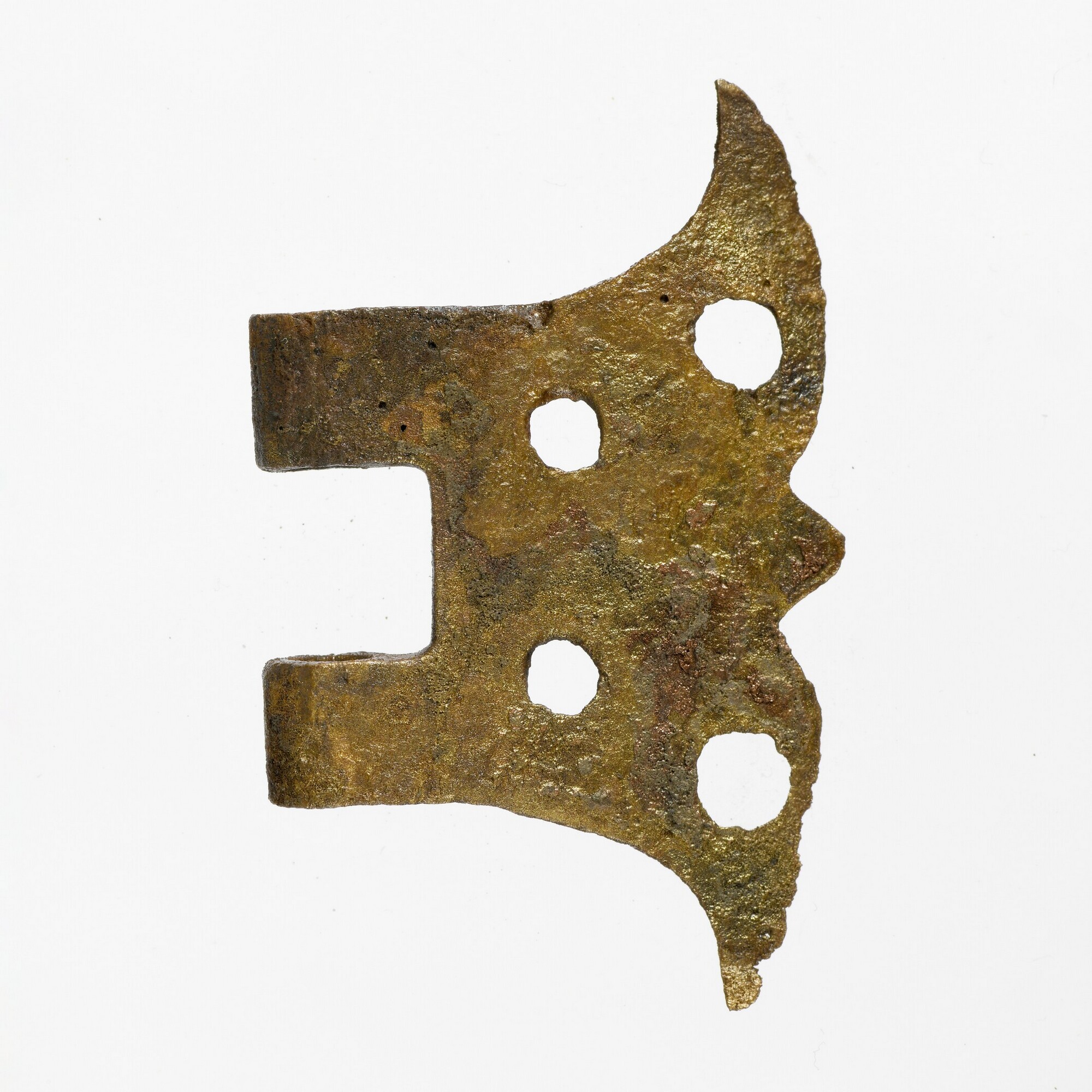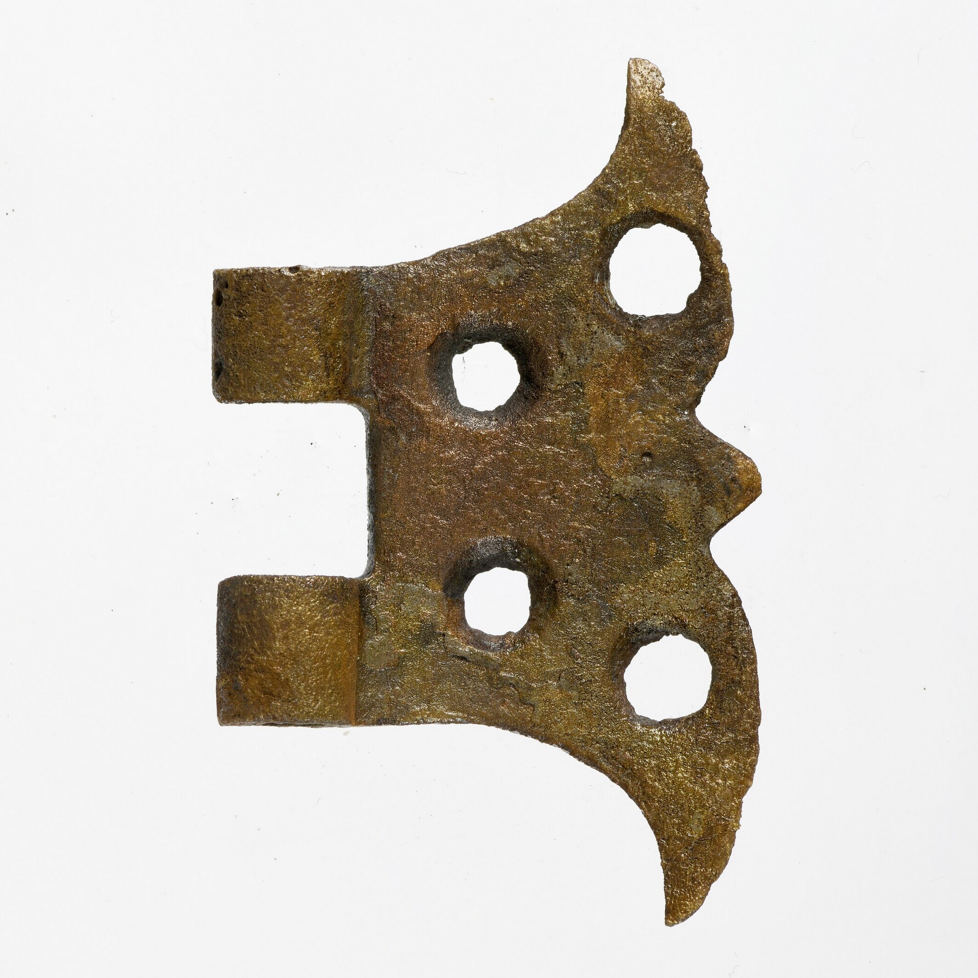 Scharnier; vlinderscharnier; boekbandsluiting?; vier bevestingsgaten; cilinderhuls uiteinde