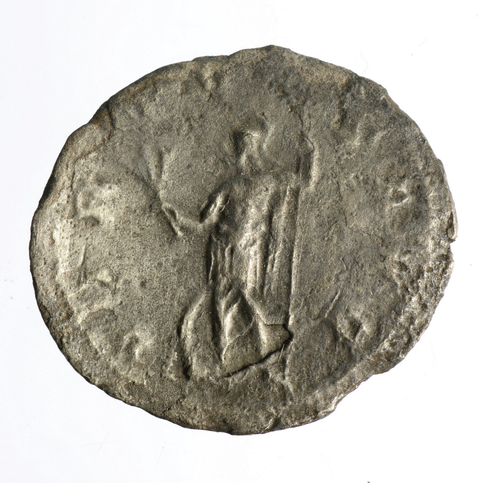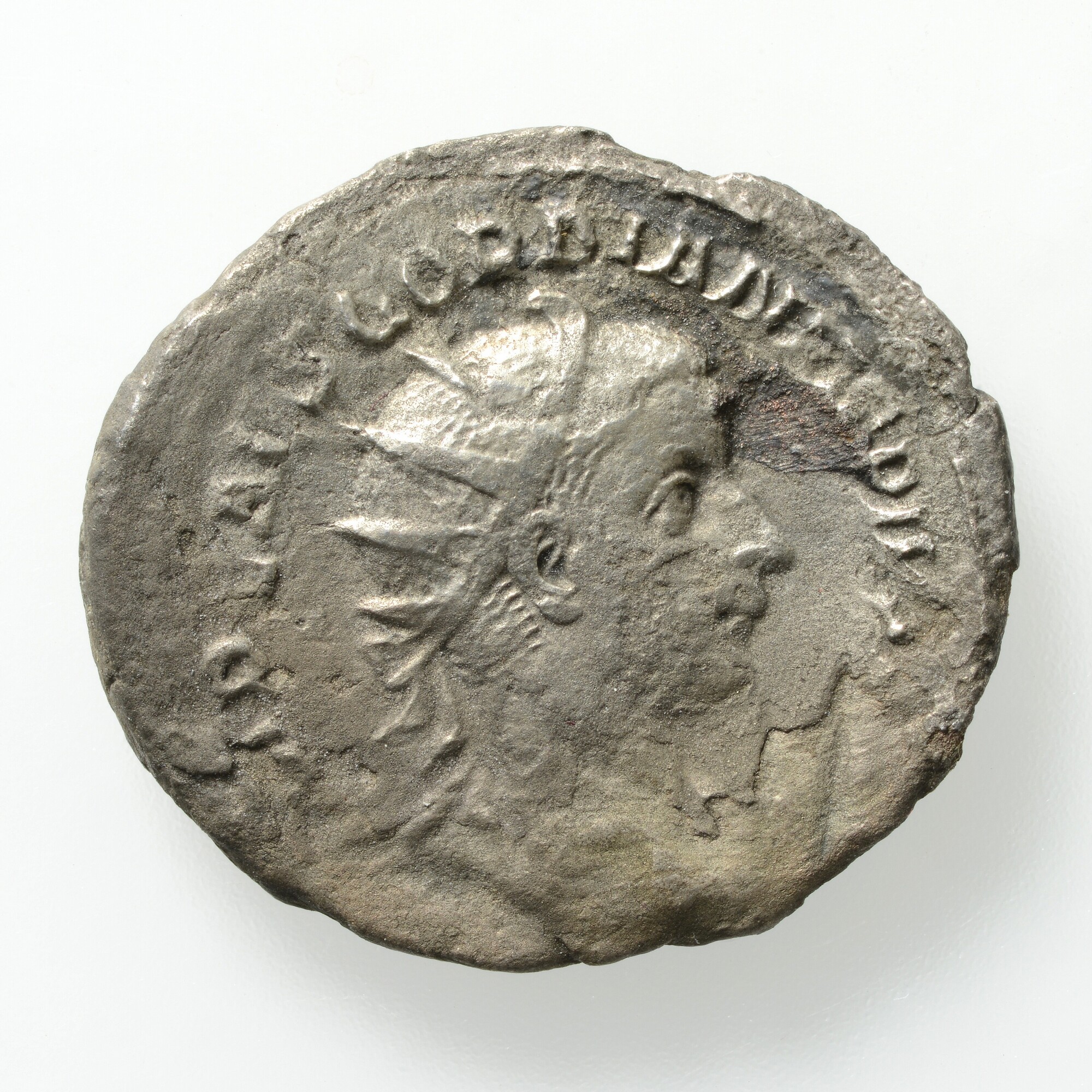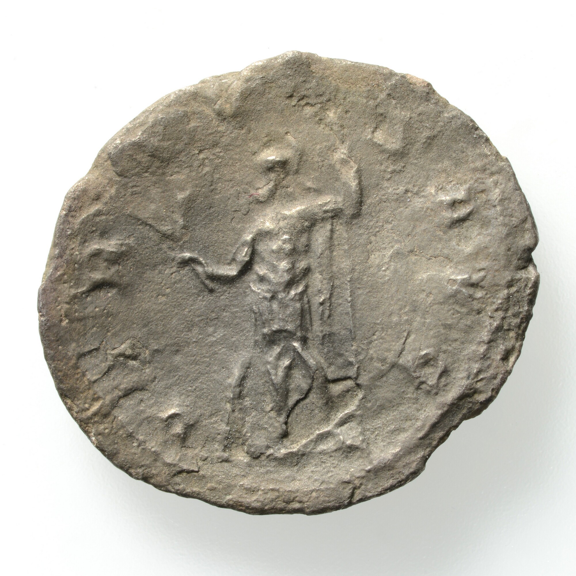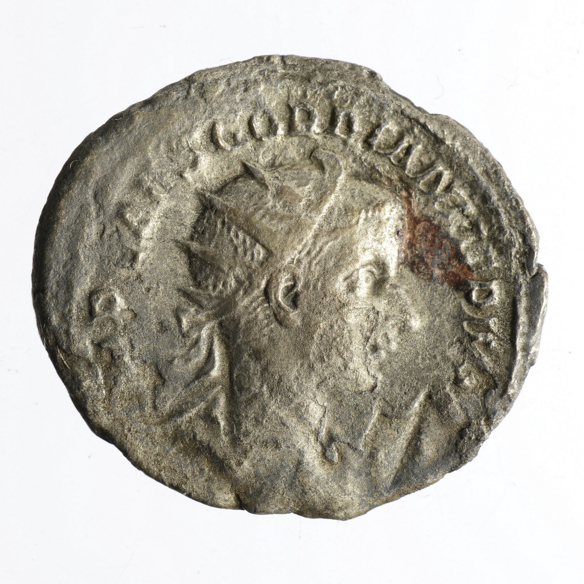 Antoninianus; Romeinse Keizerrijk; Gordianus III (238-244); vz.: IMP CAES GORDIANVS PIVS AVG, gedrapeerde buste met kuras en stralenkroon van Gordianus III naar rechts van achteren gezien; kz.: VIRTVS AVG, Virtus staand naar links met tak en speer; schild aan zijn voeten; gewicht: 2.38 gram