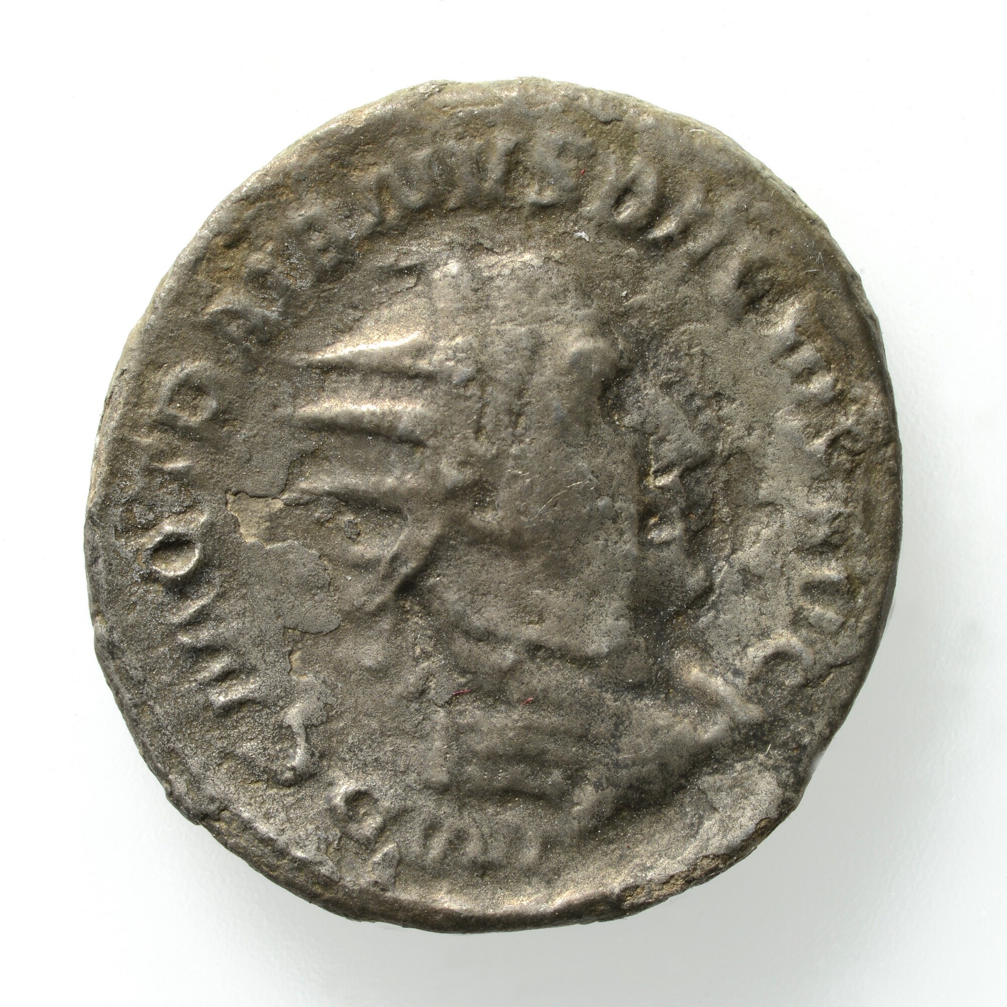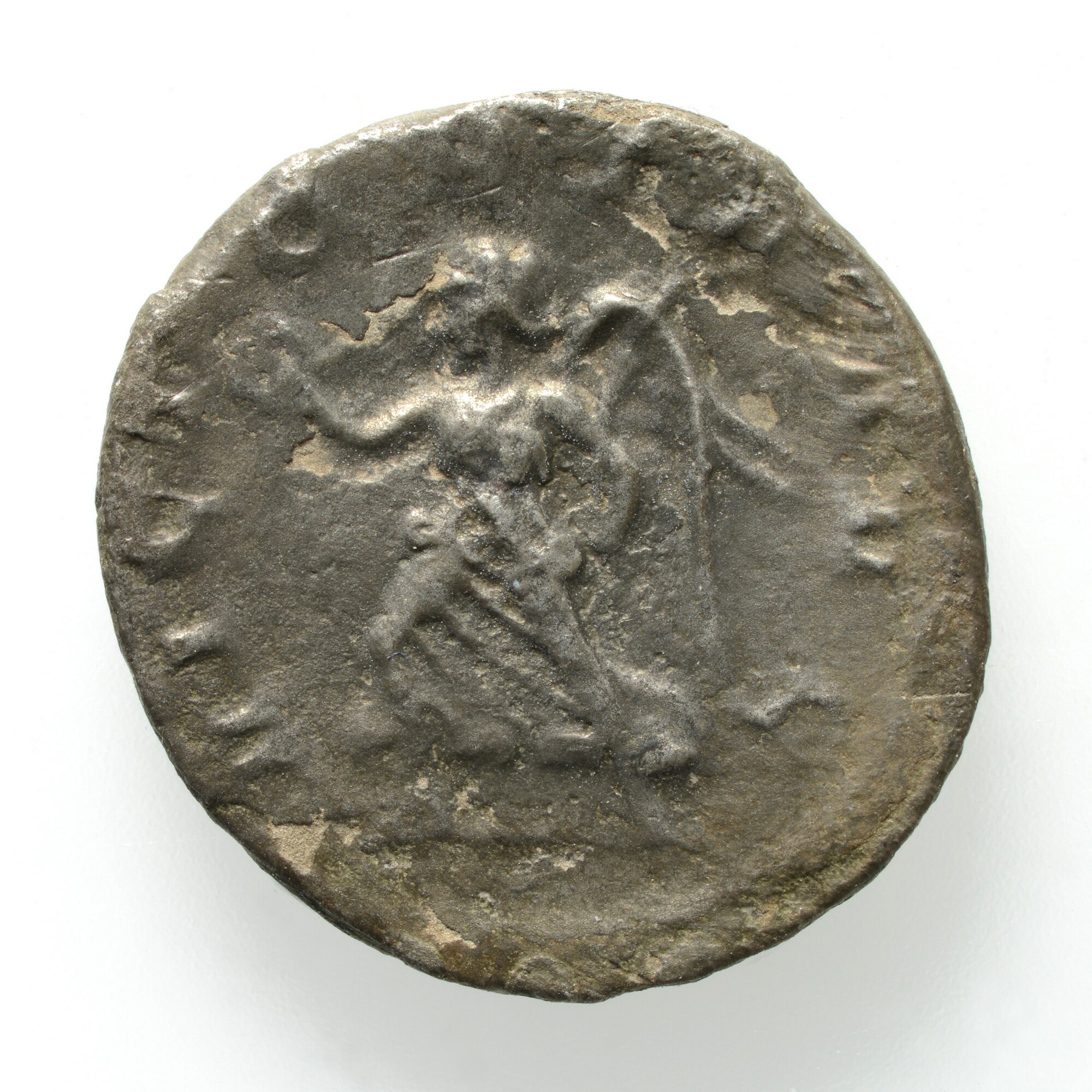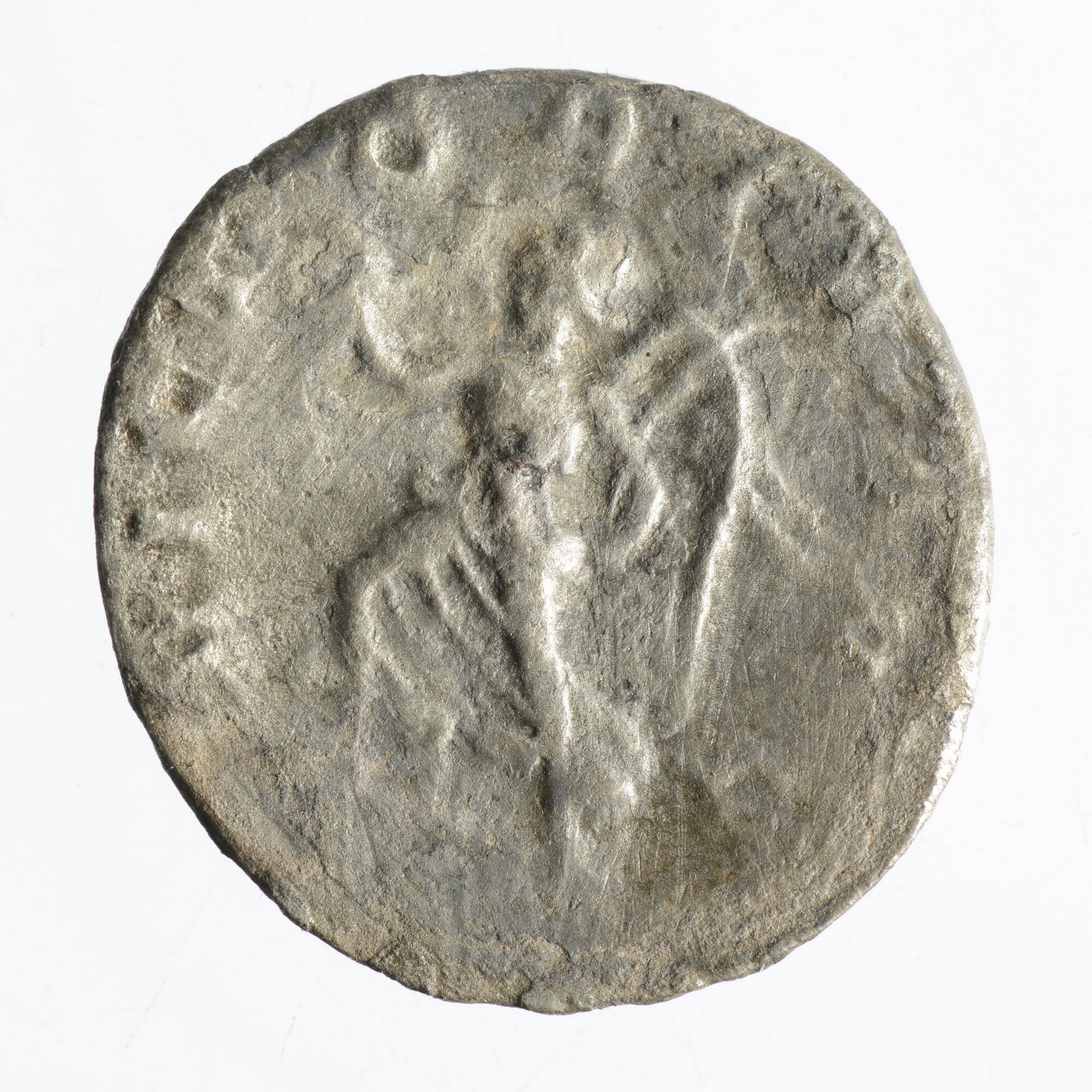 Antoninianus; Romeinse Keizerrijk; Traianus Decius (249-251); vz.: IMP C M Q TRAIANVS DECIVS AVG, gedrapeerde buste met kuras en stralenkroon van Trajanus Decius naar rechts van achteren gezien; kz.: VICTORIA AVG, Victoria lopend naar links met krans en palmtak; gewicht: 3.14 gram