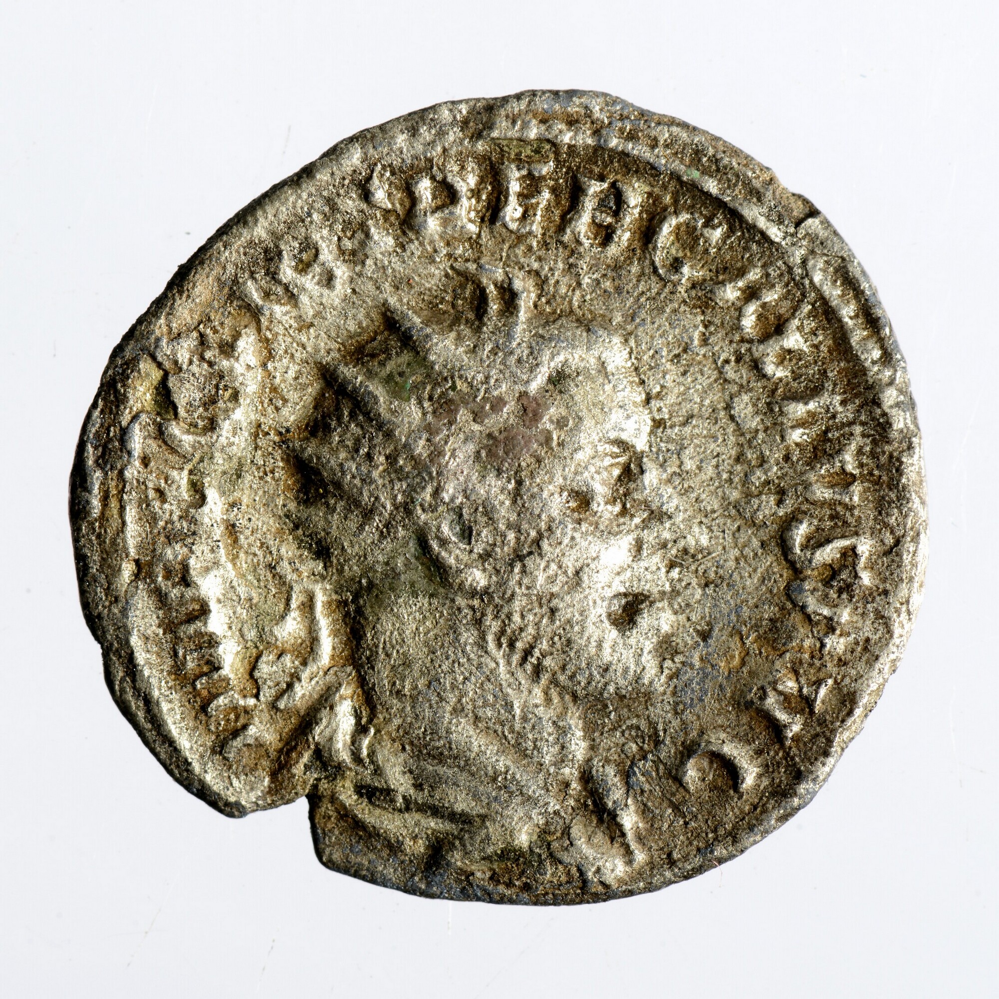 Antoninianus; Romeinse Keizerrijk; Trebonianus Gallus (251-253); vz.: IMP C C VIB TREB GALLVS AVG, gedrapeerde buste met kuras en stralenkroon van Trebonianus Gallus naar rechts van achteren gezien; kz.: PAX AETERNA, Pax staand naar links met olijftak in de rechterhand en skepter in de linkerhand; gewicht: 2.05 gram