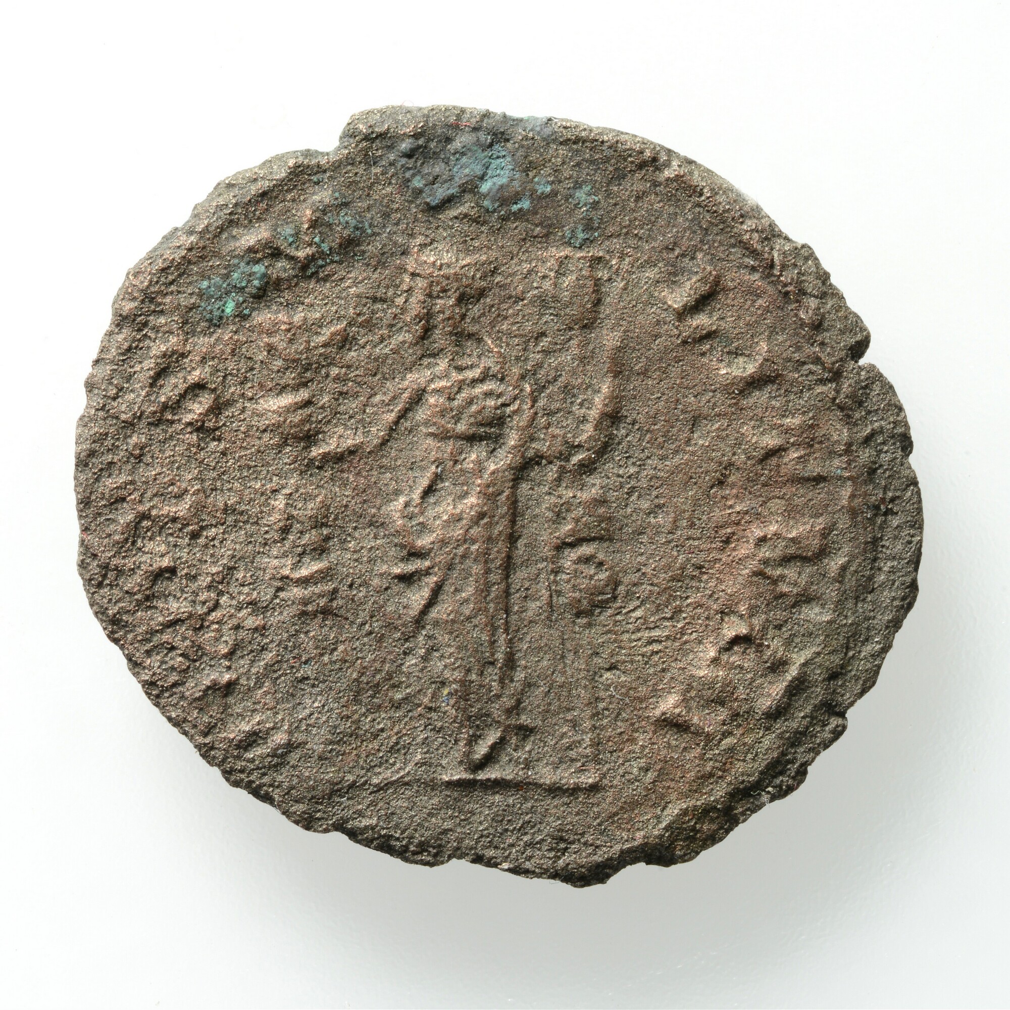 Antoninianus; Gallische keizerrijk; Postumus (260-269); vz.: IMP C POSTVMVS PF AVG, buste met kuras en stralenkroon van Postumus naar rechts 3/4 van voren gezien; kz.: FIDES MILITVM, Fides staand naar links met twee standaards; gewicht: 2.92 gram