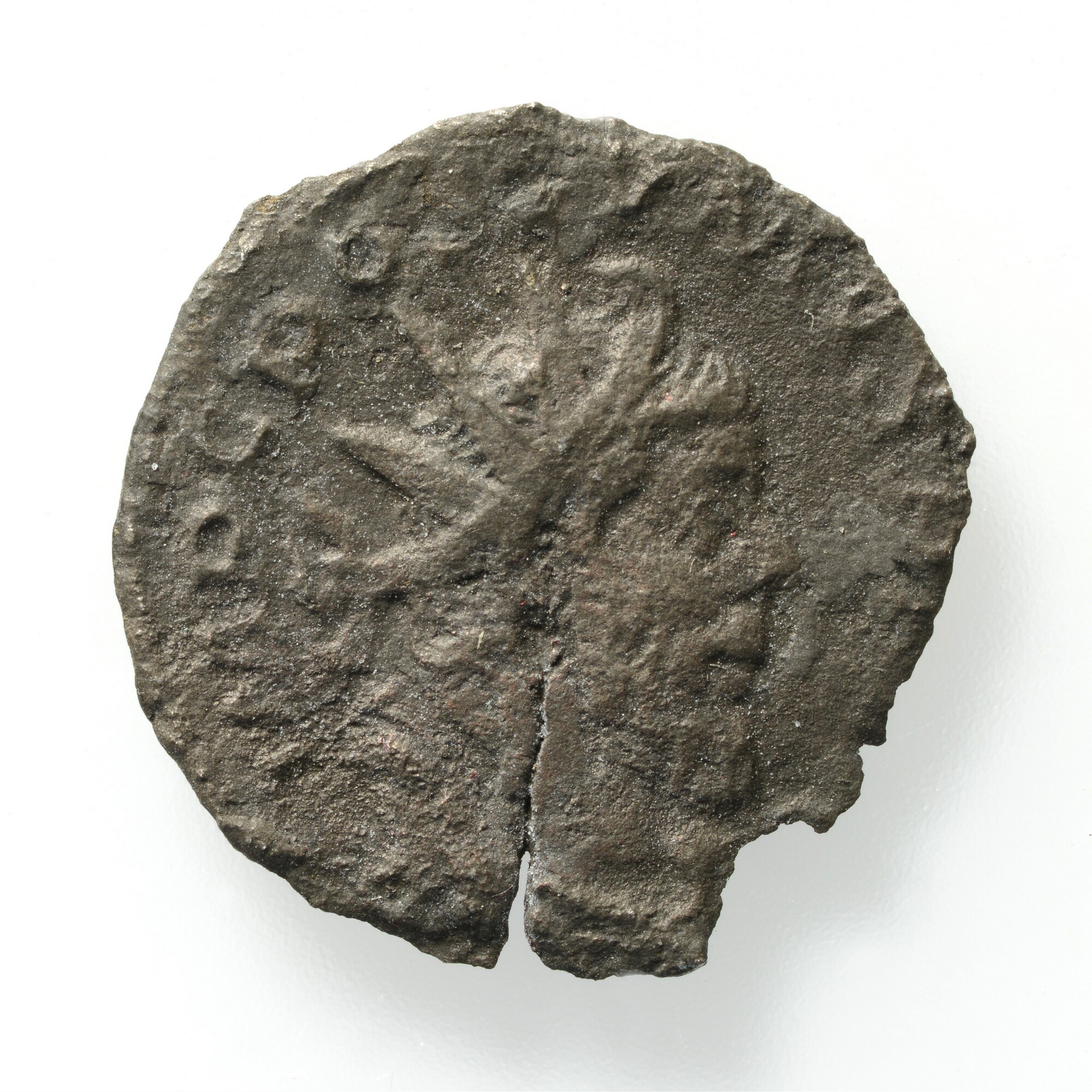 Antoninianus; Gallische Keizerrijk; Postumus (260-269); vz.: IMP C POSTVMVS PF AVG, buste met kuras en stralenkroon van Postumus naar rechts 3/4 van voren gezien; kz.: P M TR P X - COS V P P, keizer staand naar links; gewicht: 1.54 gram