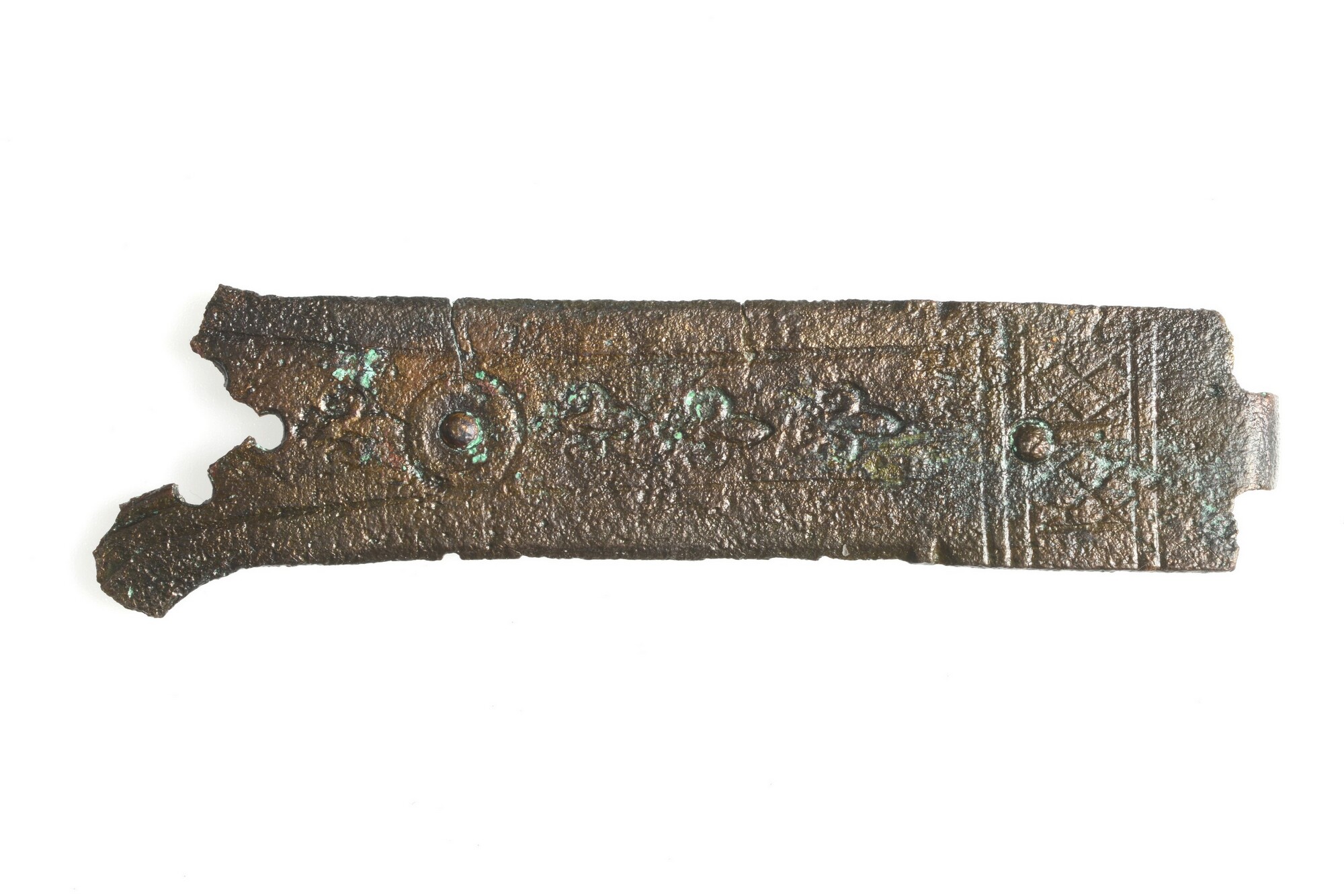 Boekbeslag; versierd met franse lelies en geometrische lijnen