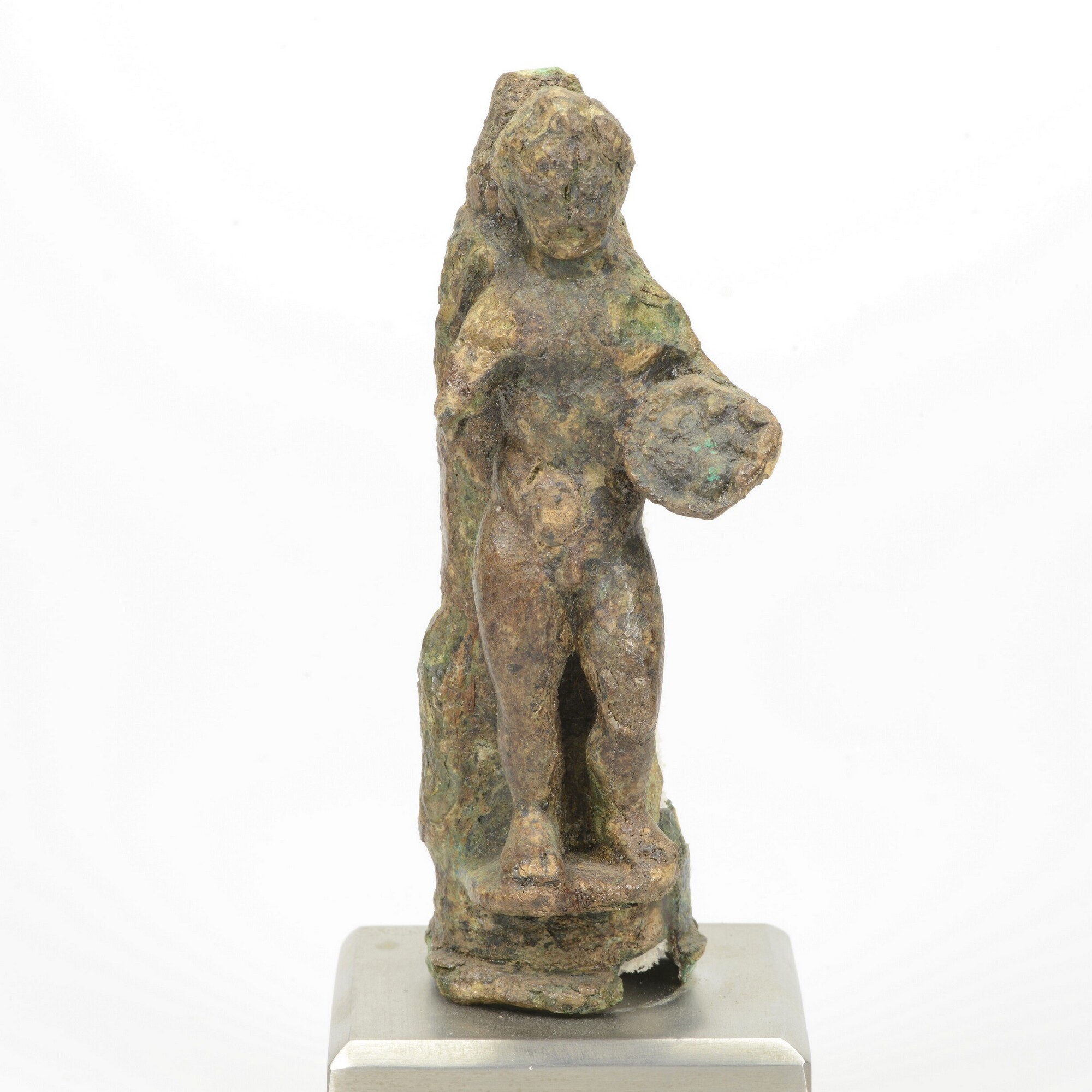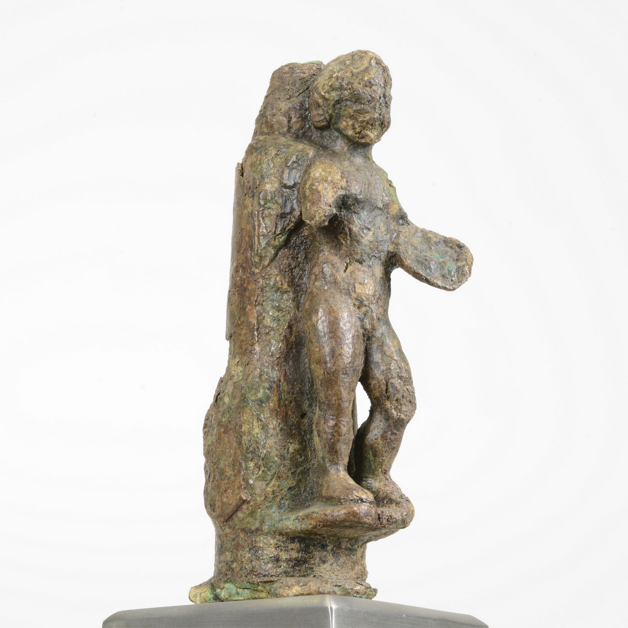 Putto of Amor met schaal in linkerhand; rechterarm deels afgebroken; oorspronkelijk onderdeel van een meubel of onderzijde van een drinkschaal