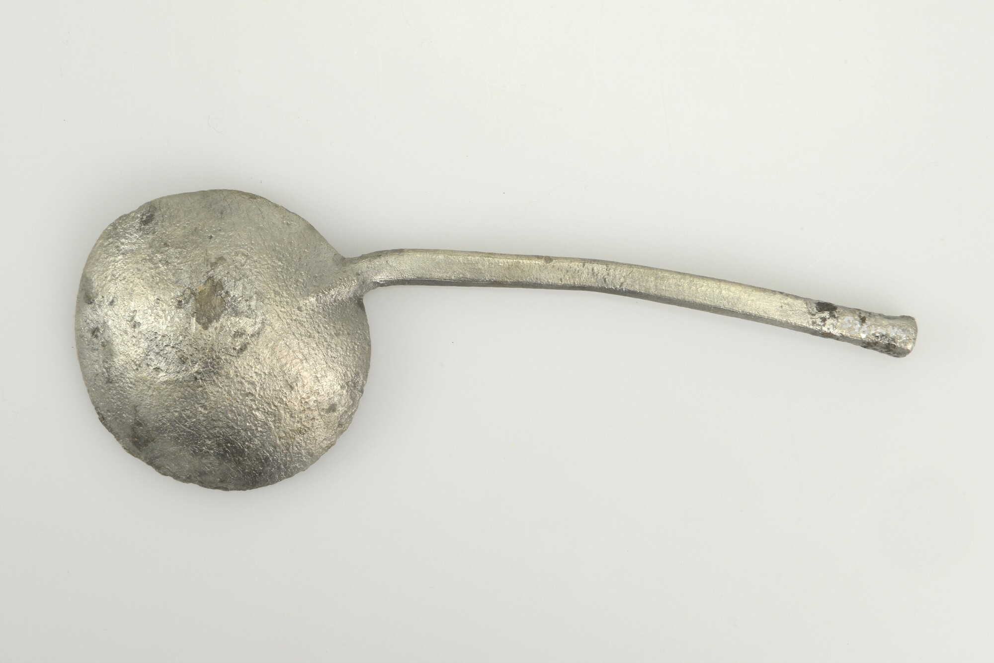 Lepel; sn-lep; ronde bak, hoog zeskantige doorsnede van steel, verbinding tussen brug en bak, d.m.v. een naaldvormige steun