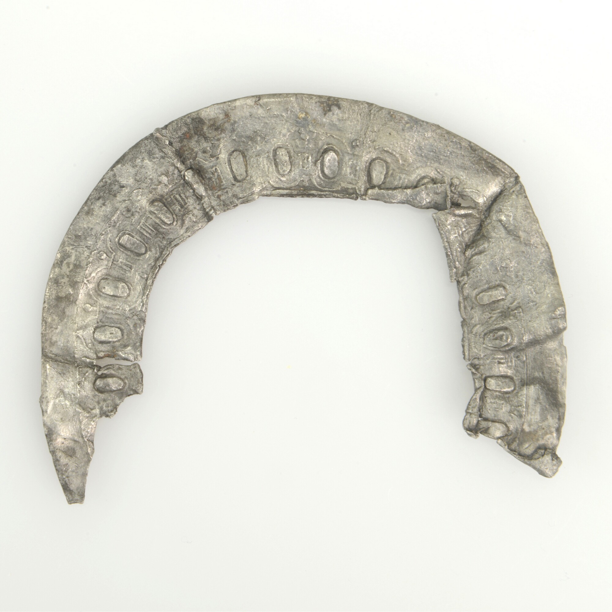 Bord; randfragment; reliefversieringen in de vorm van concentrische eierlijsten