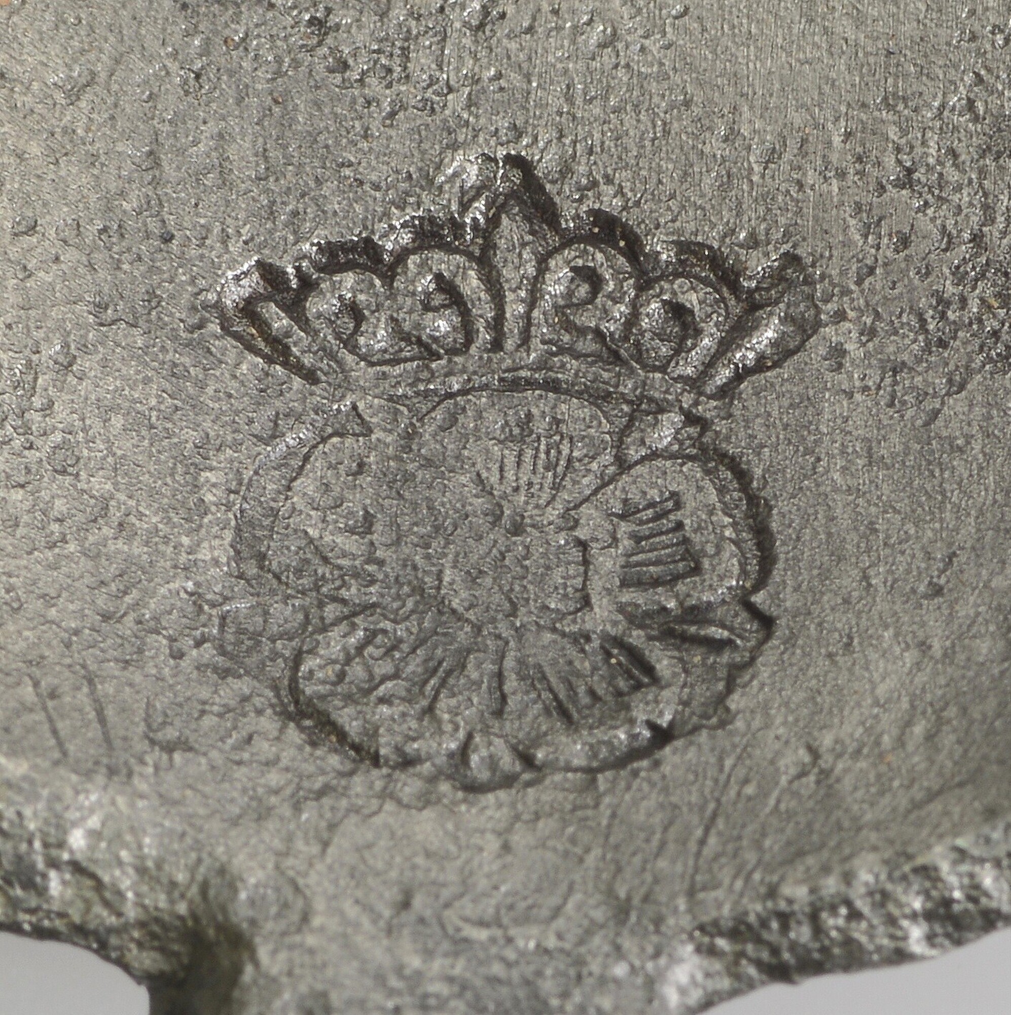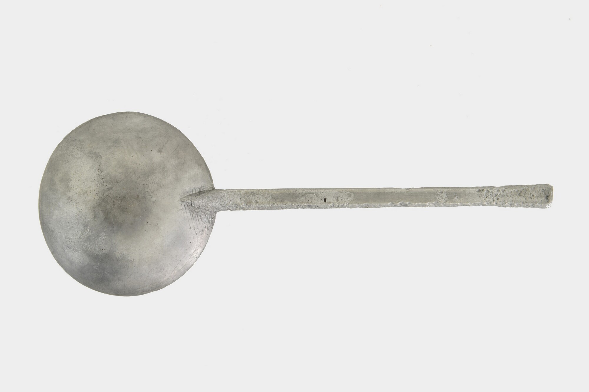 Lepel; sn-lep; ronde bak, zeskantige doorsnede van steel, merkteken in de bak aan de voorzijde onder de brug, verbinding tussen brug en bak, d.m.v. een naaldvormige steun; gevonden in pot (inv.nr. 10276-03)