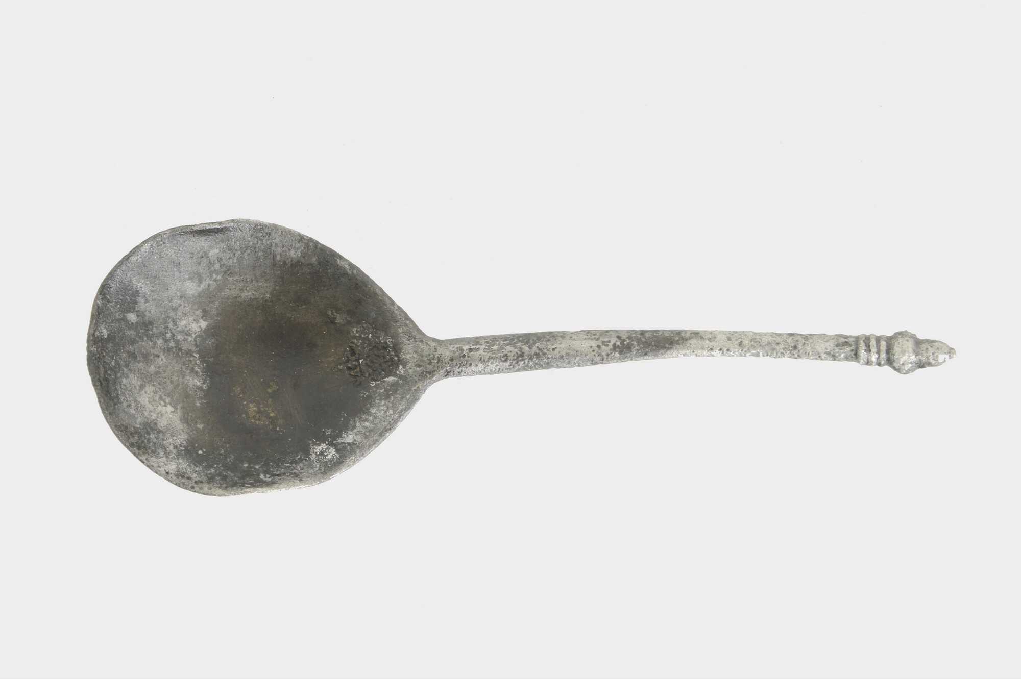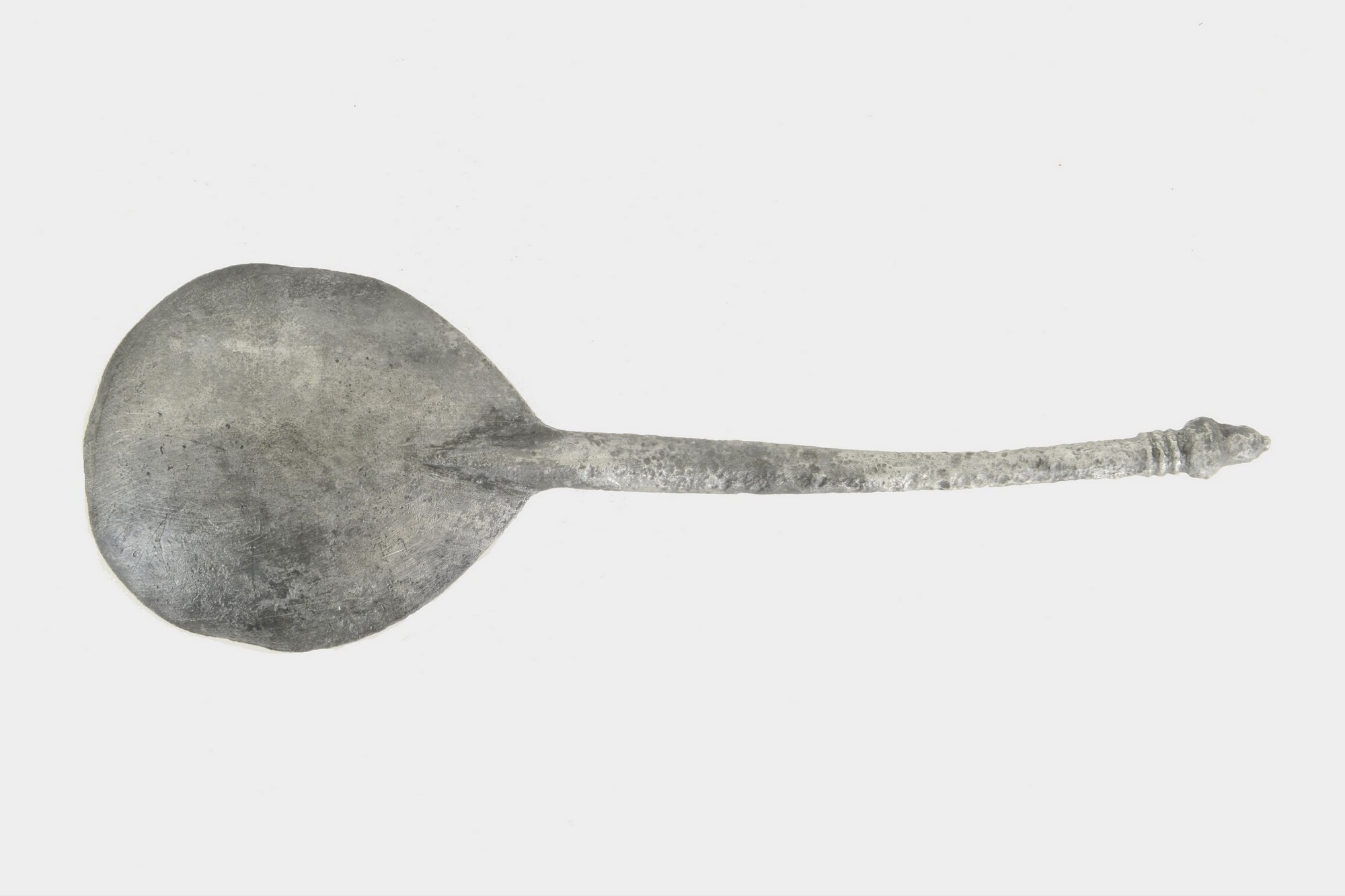 Lepel; sn-lep; druppelvormige bak en steel ruitvormig in doorsnede met een eikel als steeluiteinde; merkteken bak