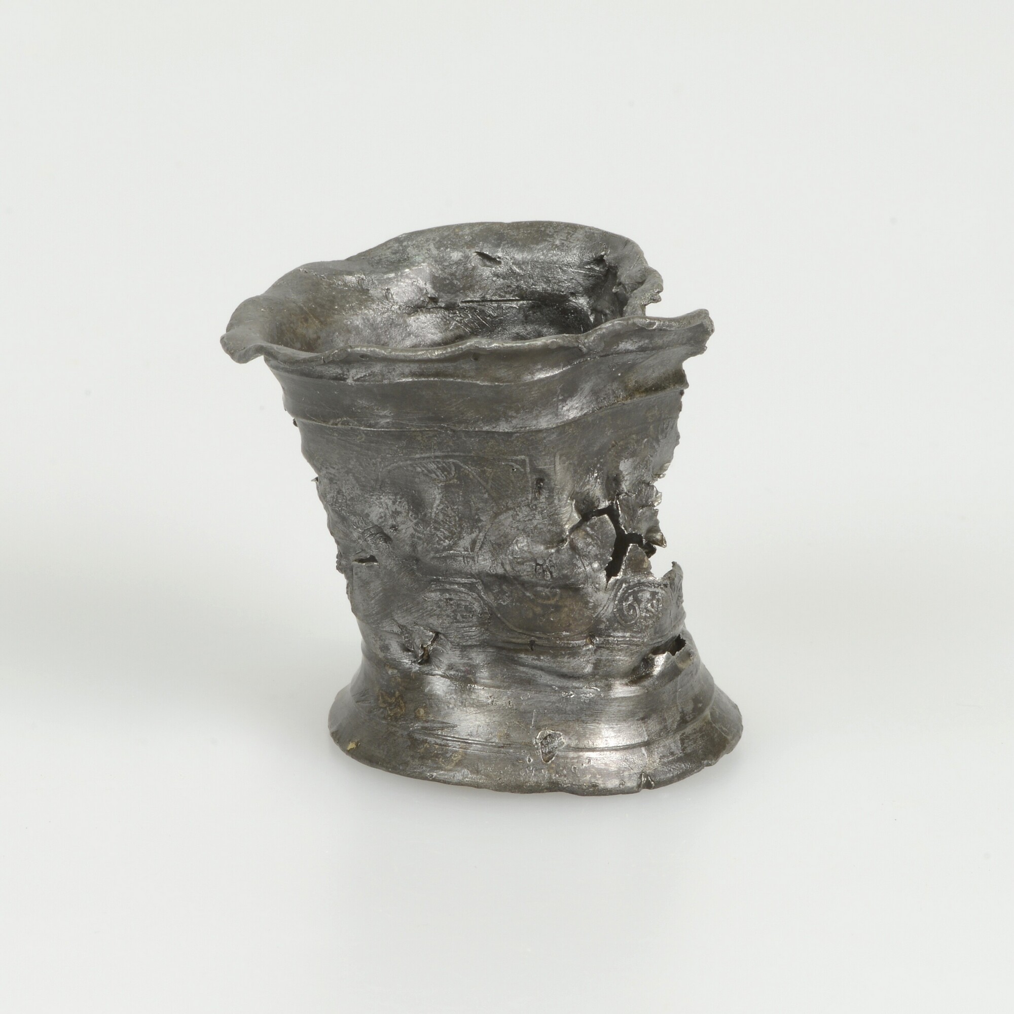 Beker; sn-min; kinderspeelgoed; miniatuur beker op standvoet; uitwendig florale motieven