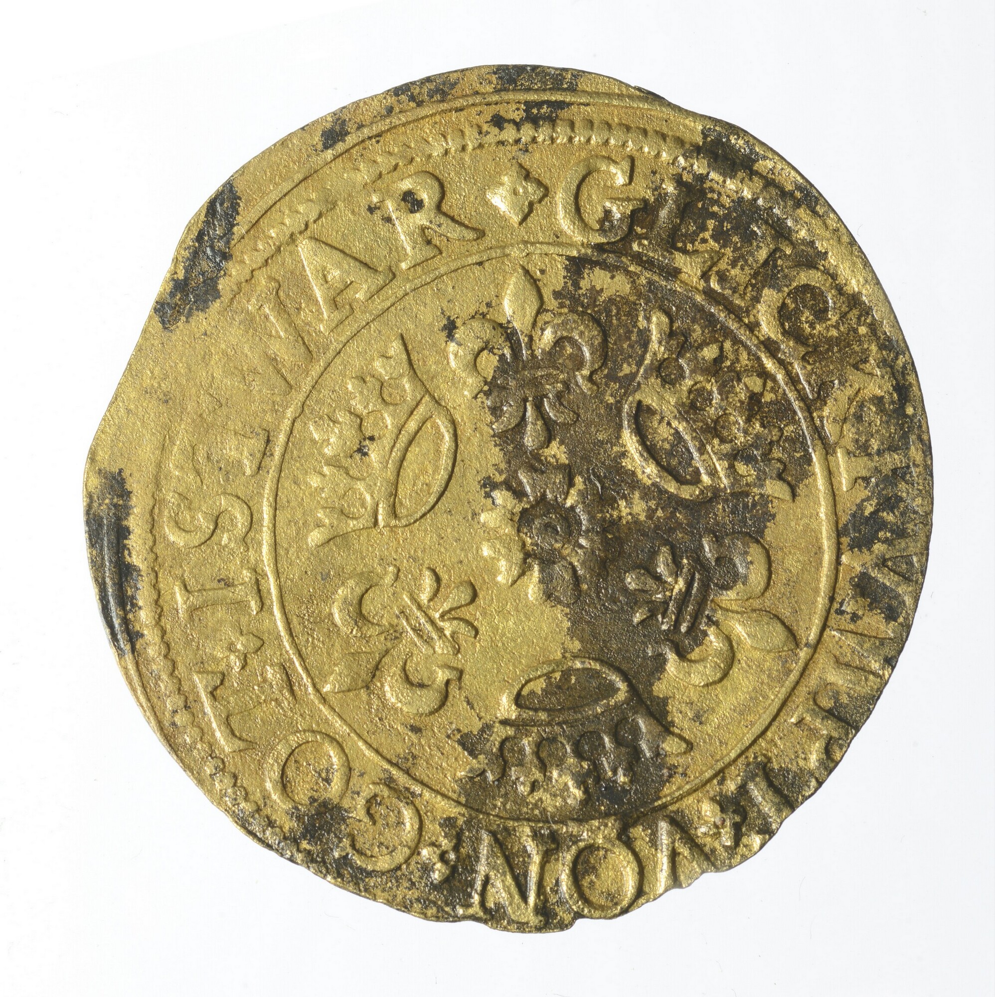 Rekenpenning; Hans Schultes I of II; vz.: Rijksappel in driepas met randtekst HANS SCHVLTES ORNBER; kz.: drie kronen en drie Franse lelies met randtekst GOT IST WAR GLICK..; herkomst: Neurenberg; gewicht: 1.98 gram