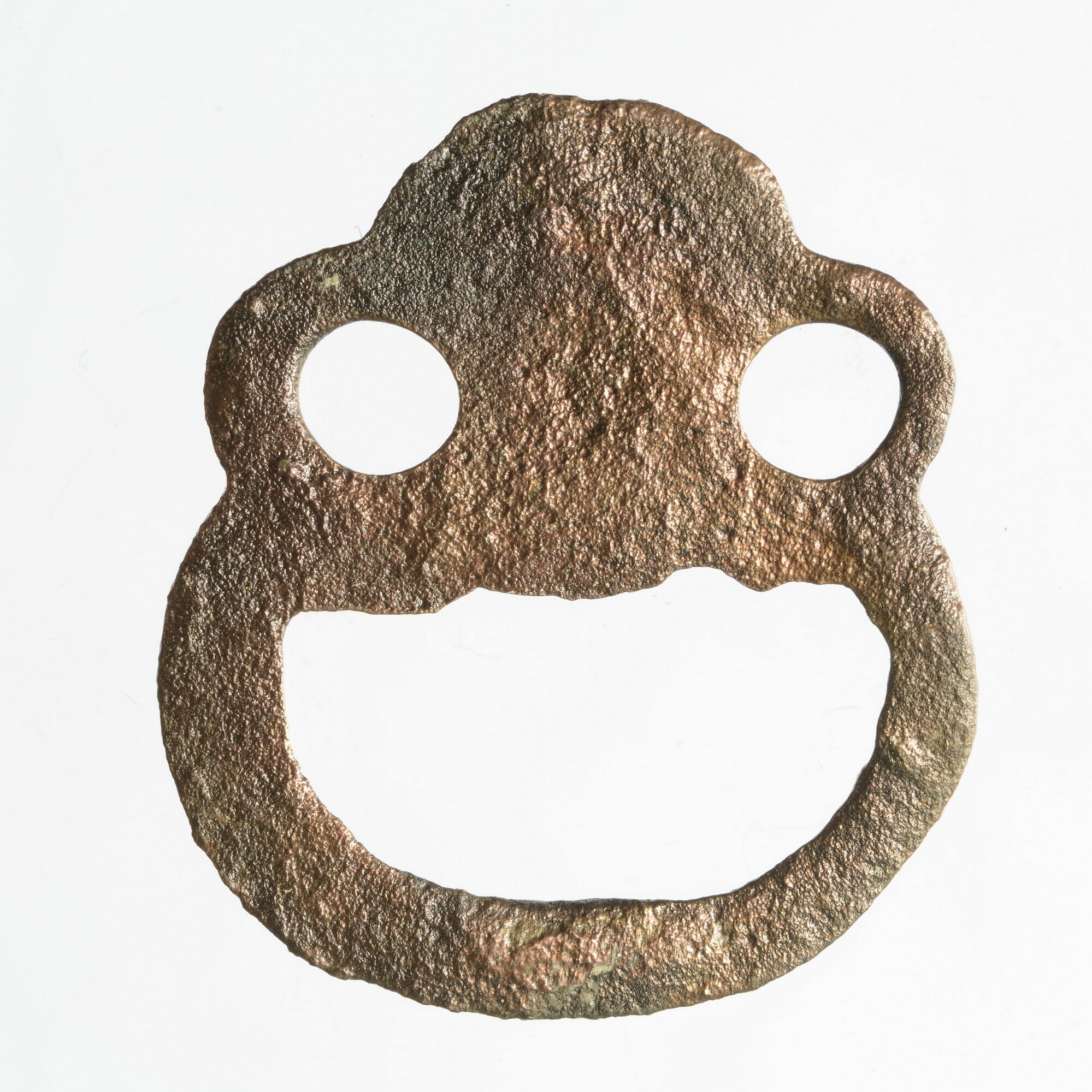 Gordelsluiting; middenstuk driedelige sluiting versierd met engelenkop