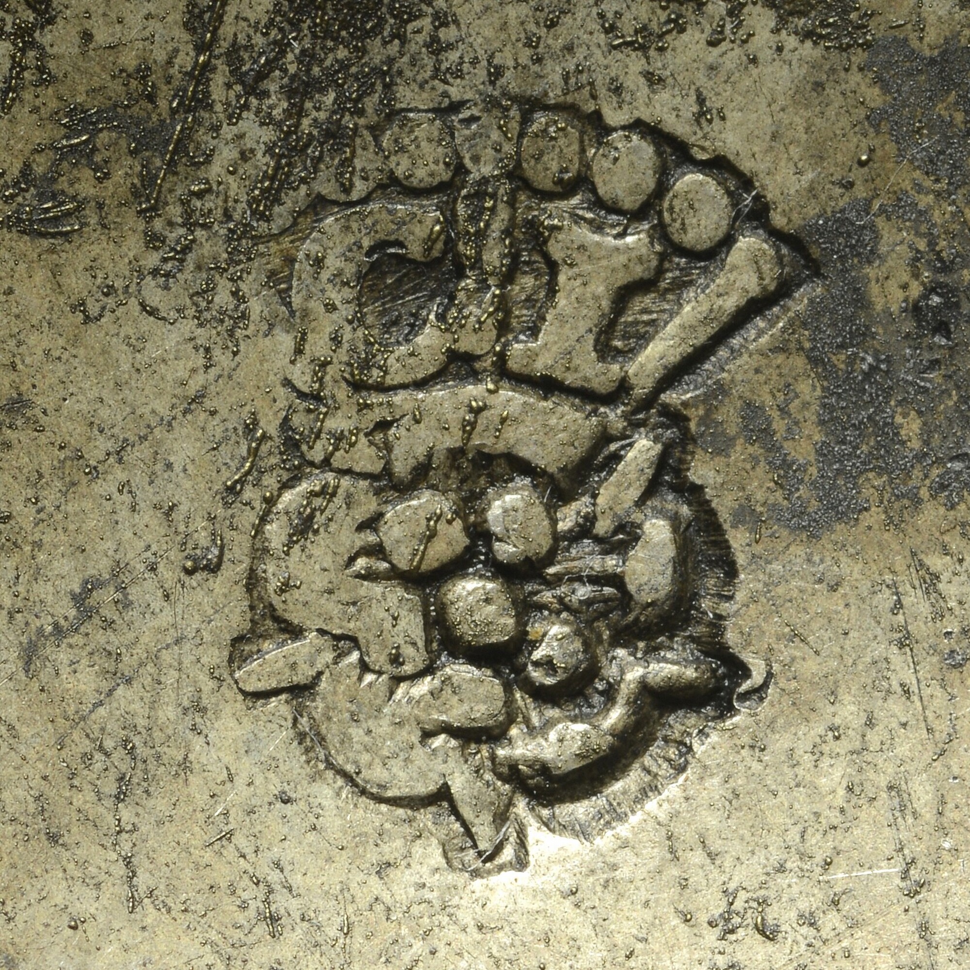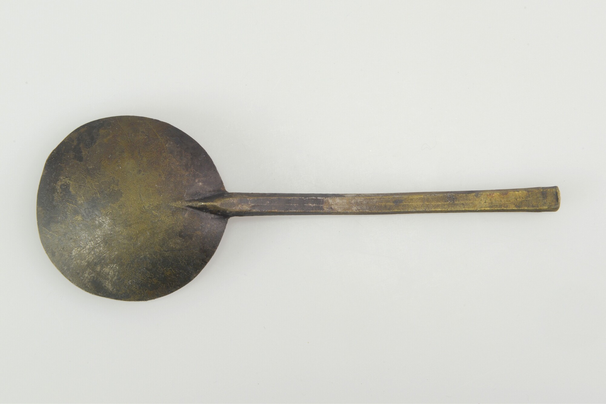 Lepel; sn-lep; ronde bak en zeskantige steel; merkteken in bak