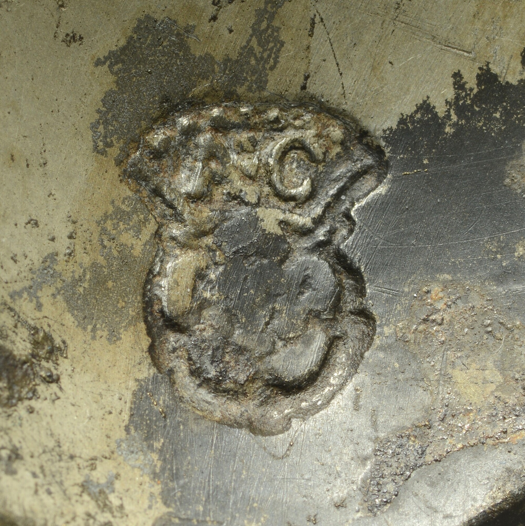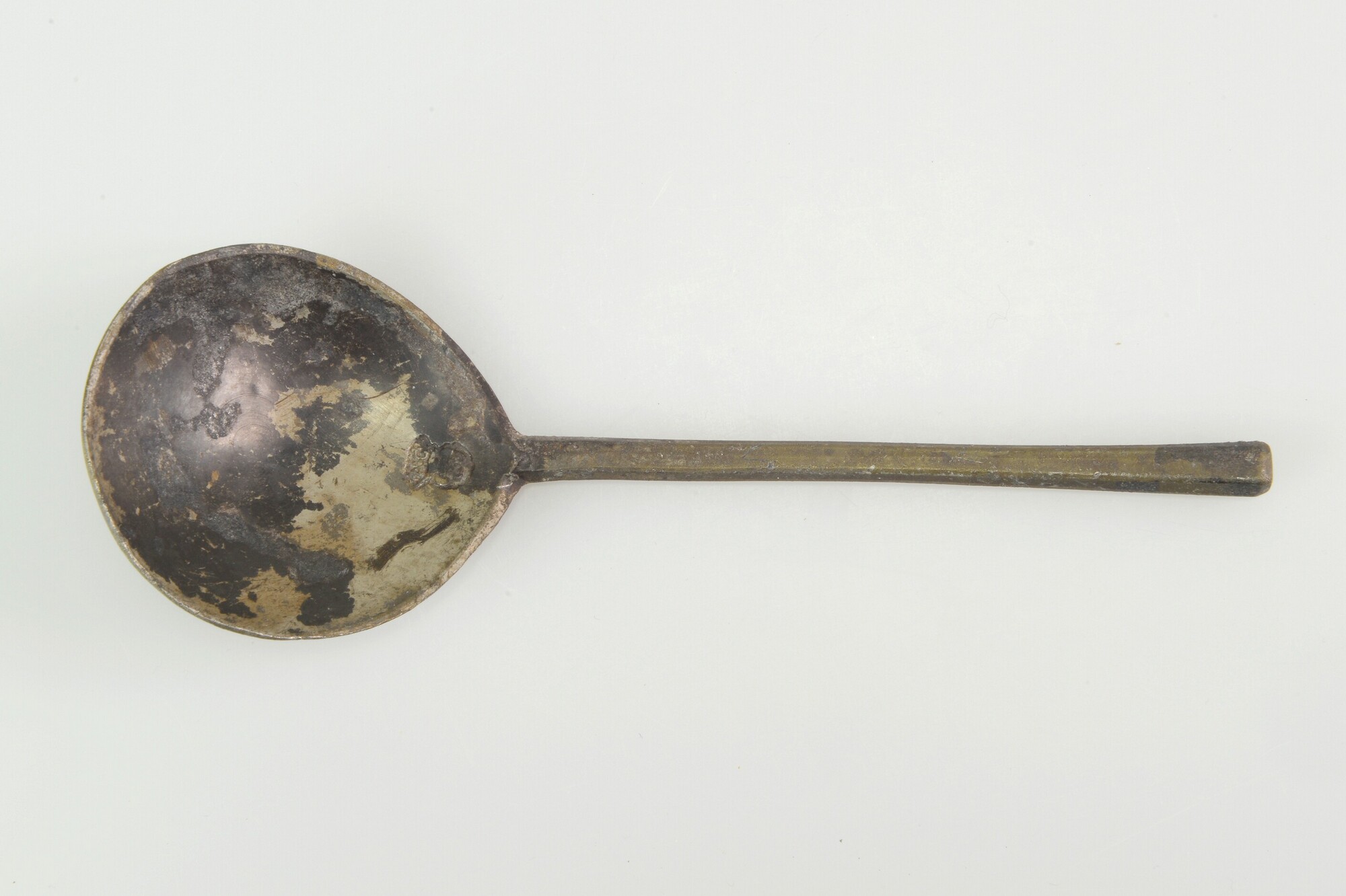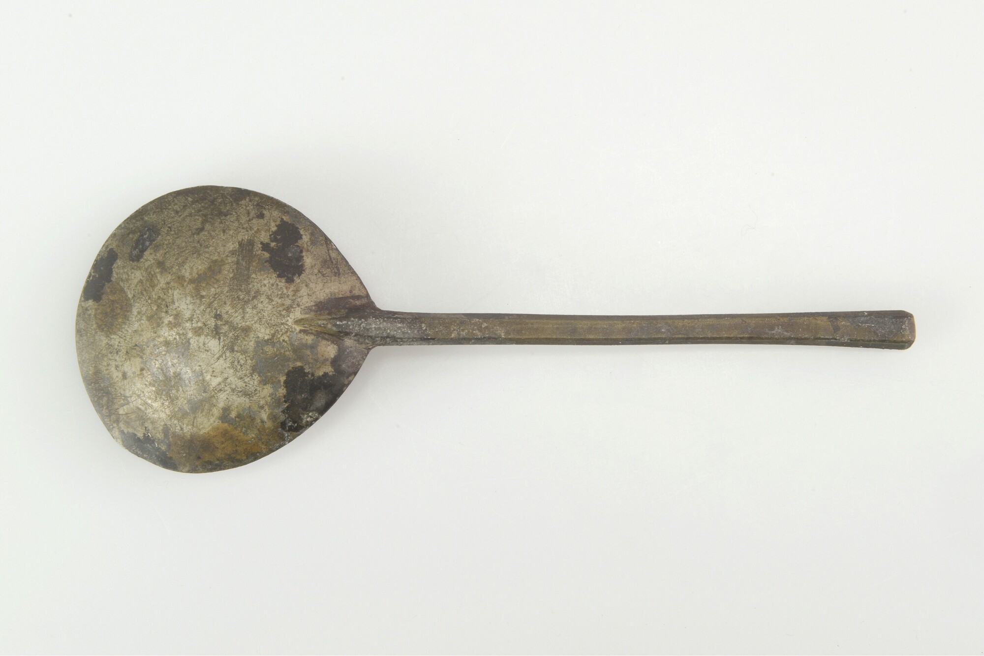 Lepel; sn-lep; vijgvormige bak en zeskantige steel; merkteken in bak