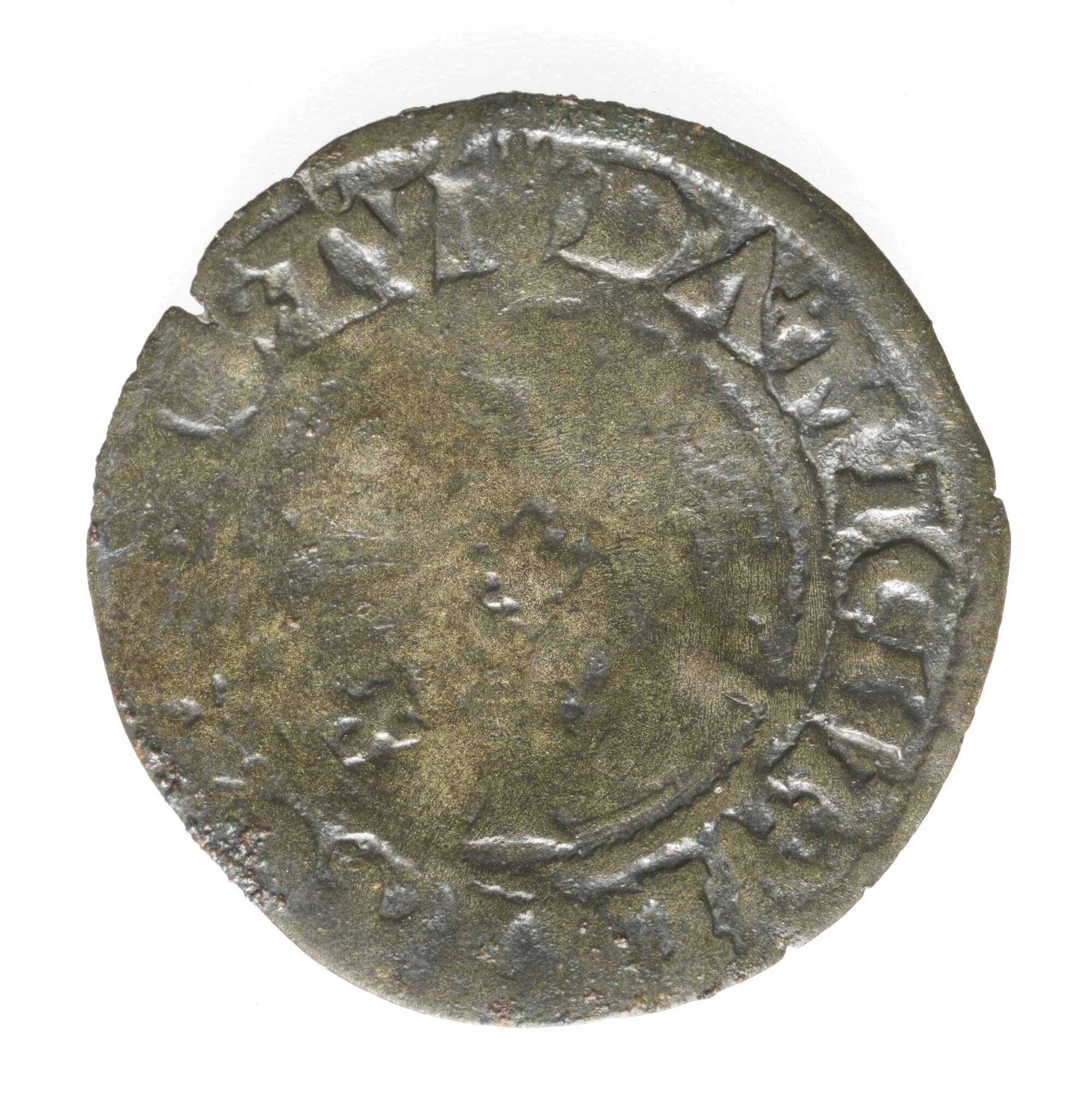 Kwart groot; Hertogdom Brabant (1183-1795); Karel V (1506-1555); vz.: wapenschild in binnencirkel, omschrift: [KAROLVS.ROM]A.IMPE; kz.: kruis in binnencirkel met in hart een rozet, in kwadranten een rozet/franse lelie, omschrift: DA.MICHI. VI[RTVT.CO.HO].TV; gewicht: 0.48 gram