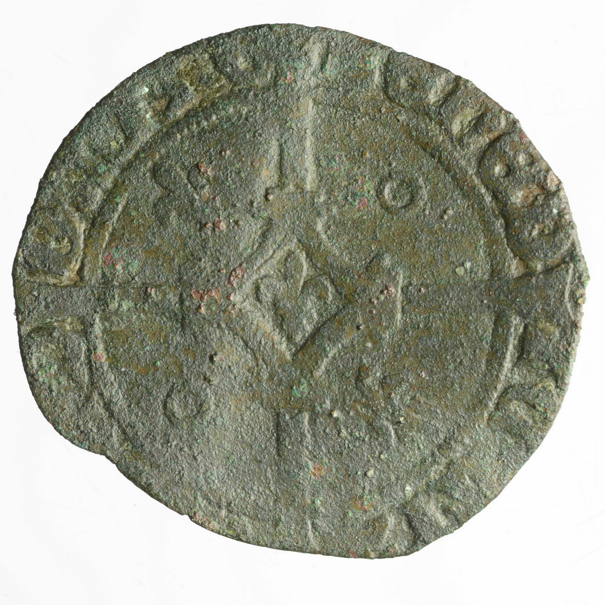 Groot; Hertogdom Gelre?; Philips de Schone (1482-1506); vz.: omschrift en vele wapens in de binnencirkel; kz.: kruis over de hele munt, in het centrum een lelie, in de kwadranten afwisselend cirkel en lelie, het omschrift is moeilijk leesbaar; 1.61 gram