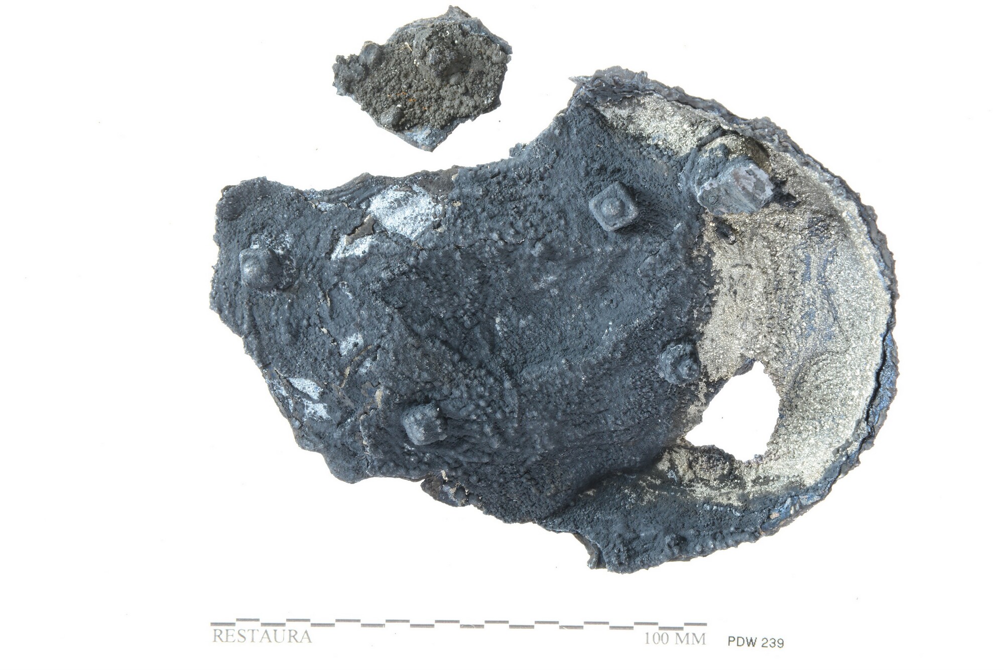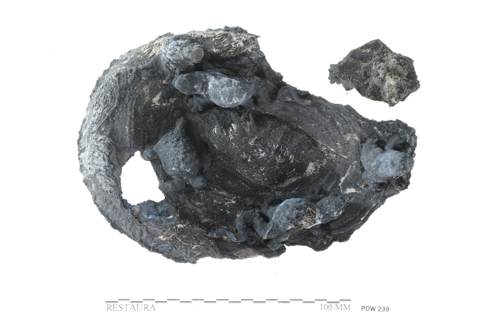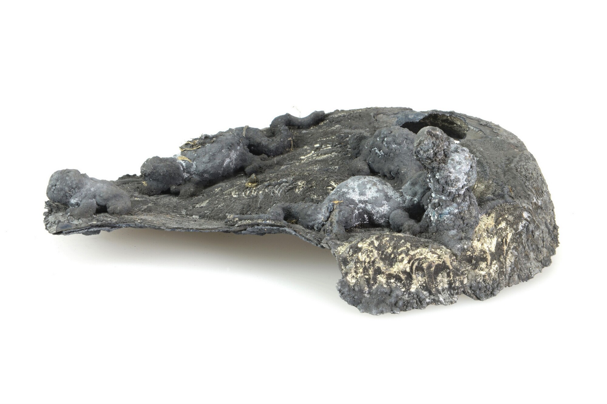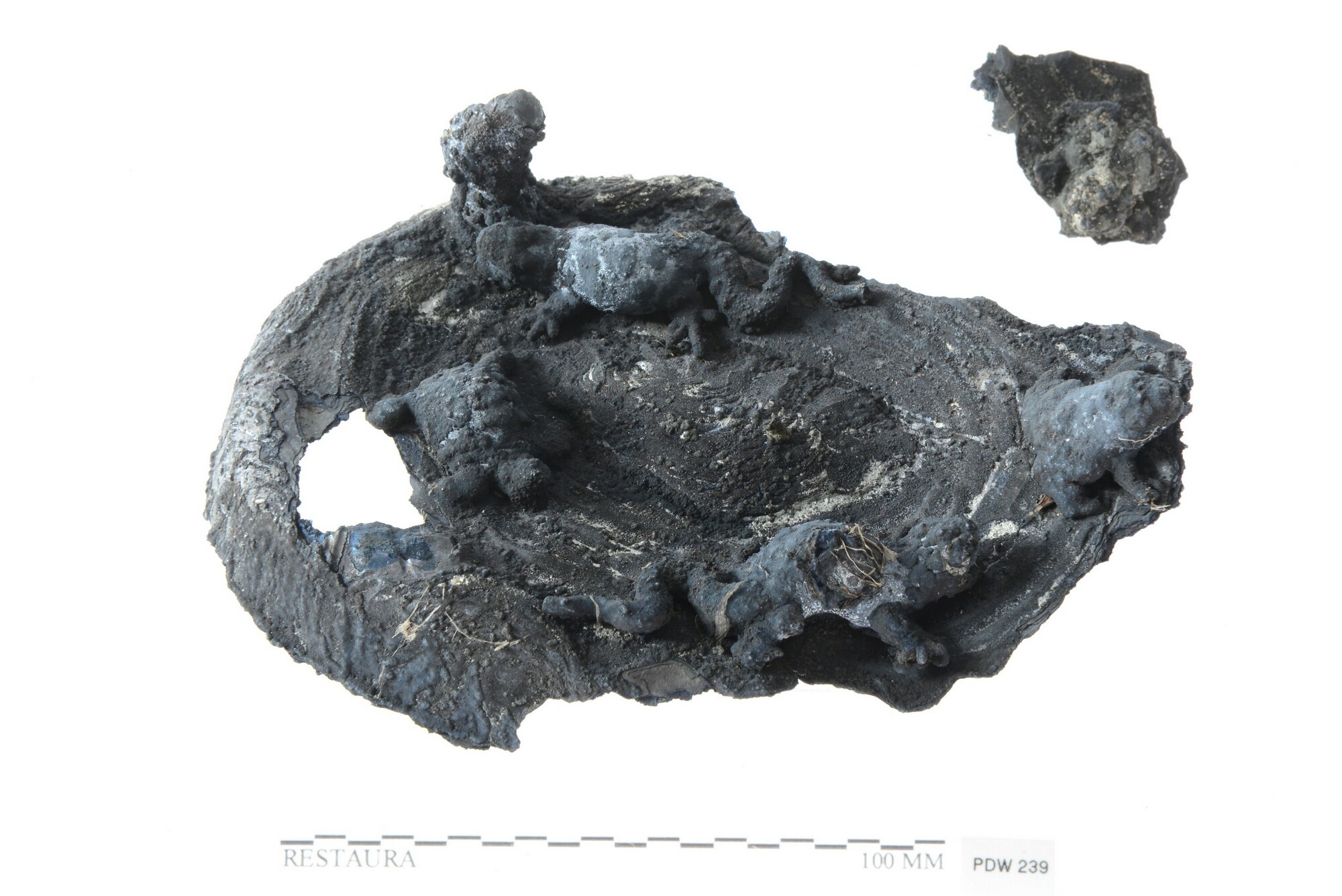 Pronkbeker; fragment; ovaal voetstuk, met gemonteerde kikkers, hagedissen en schildpad, gebroken, diverse delen ontbreken