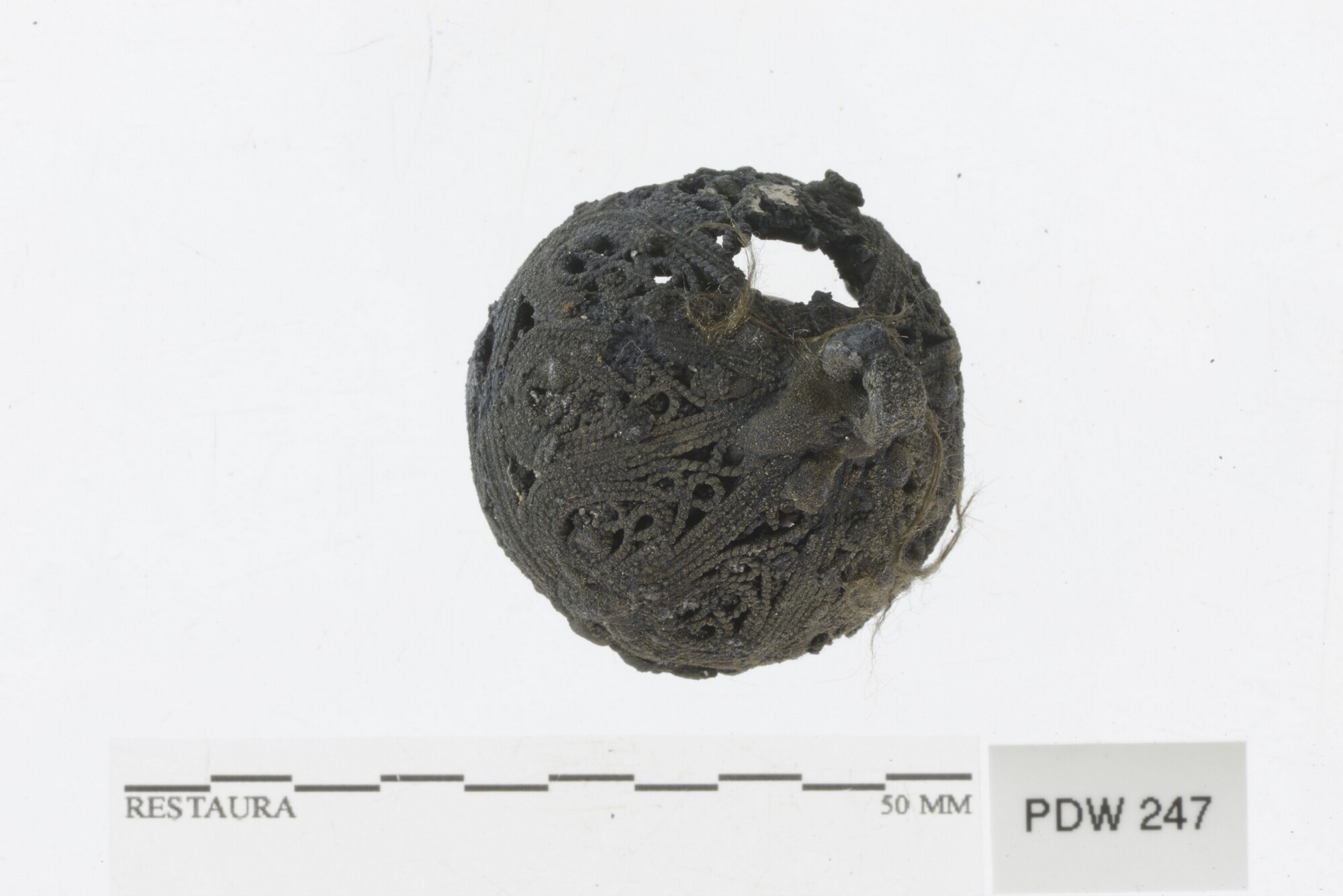 Knoop; filigraandraad; deel ontbreekt; plantaardige vezels; gewicht: 9.85 gram