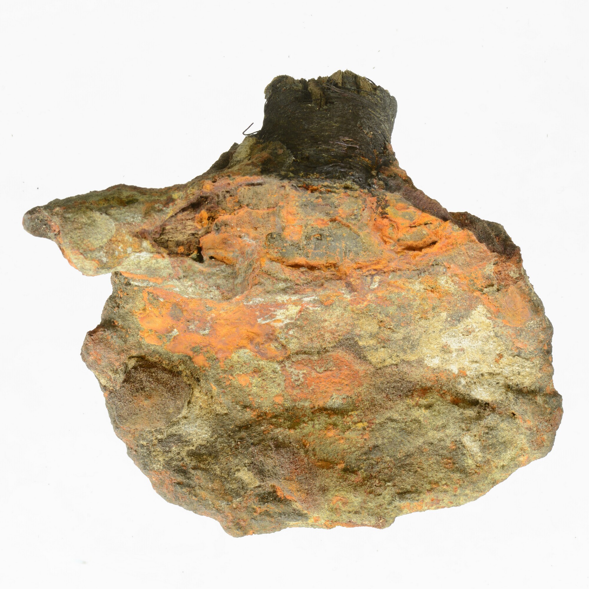 Sabelgevest in concretie; deel van het houten handvat met touw eromheen gewonden