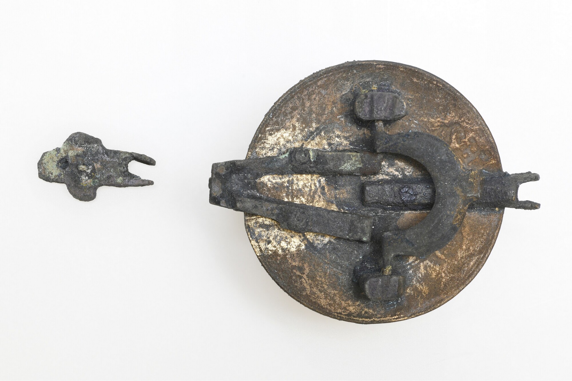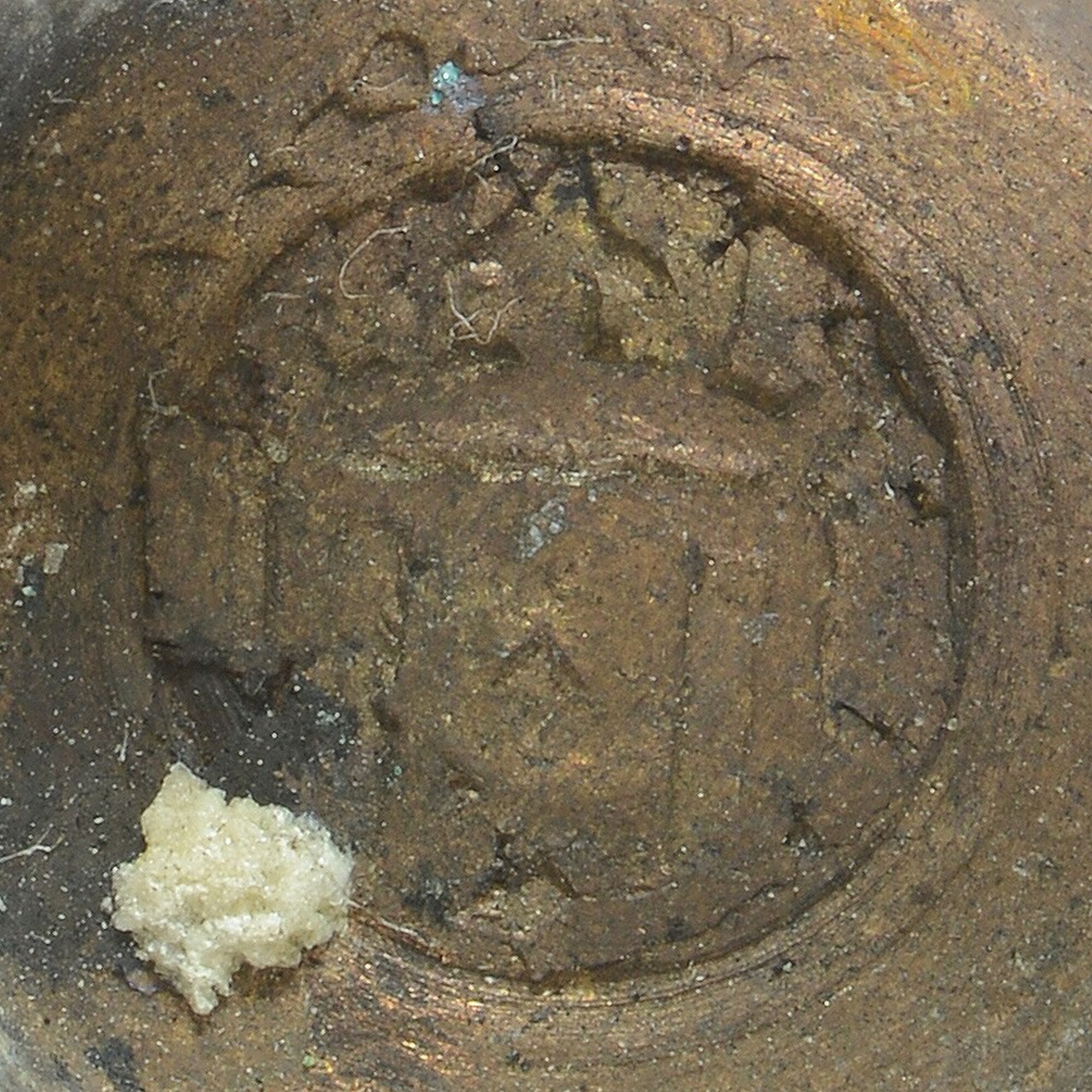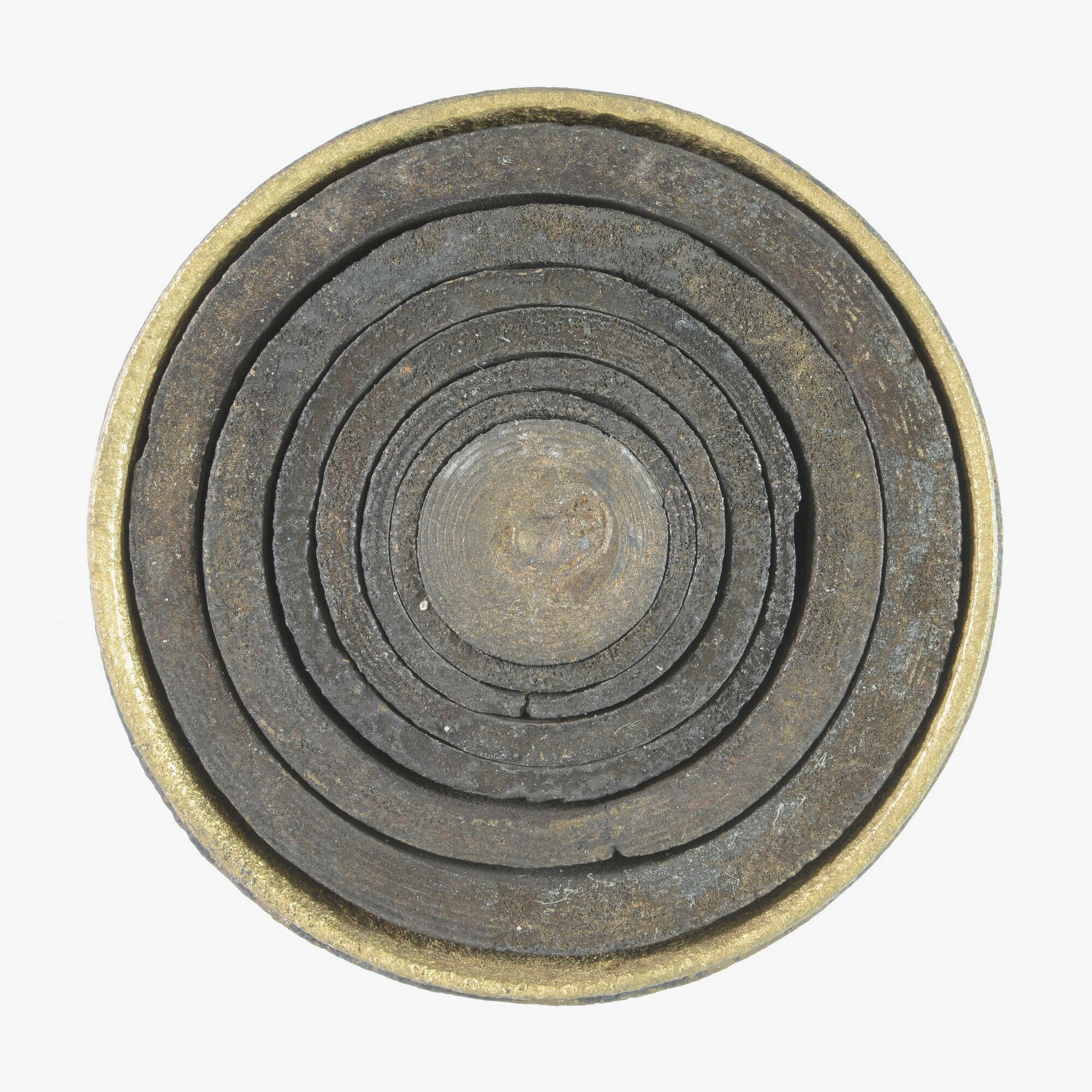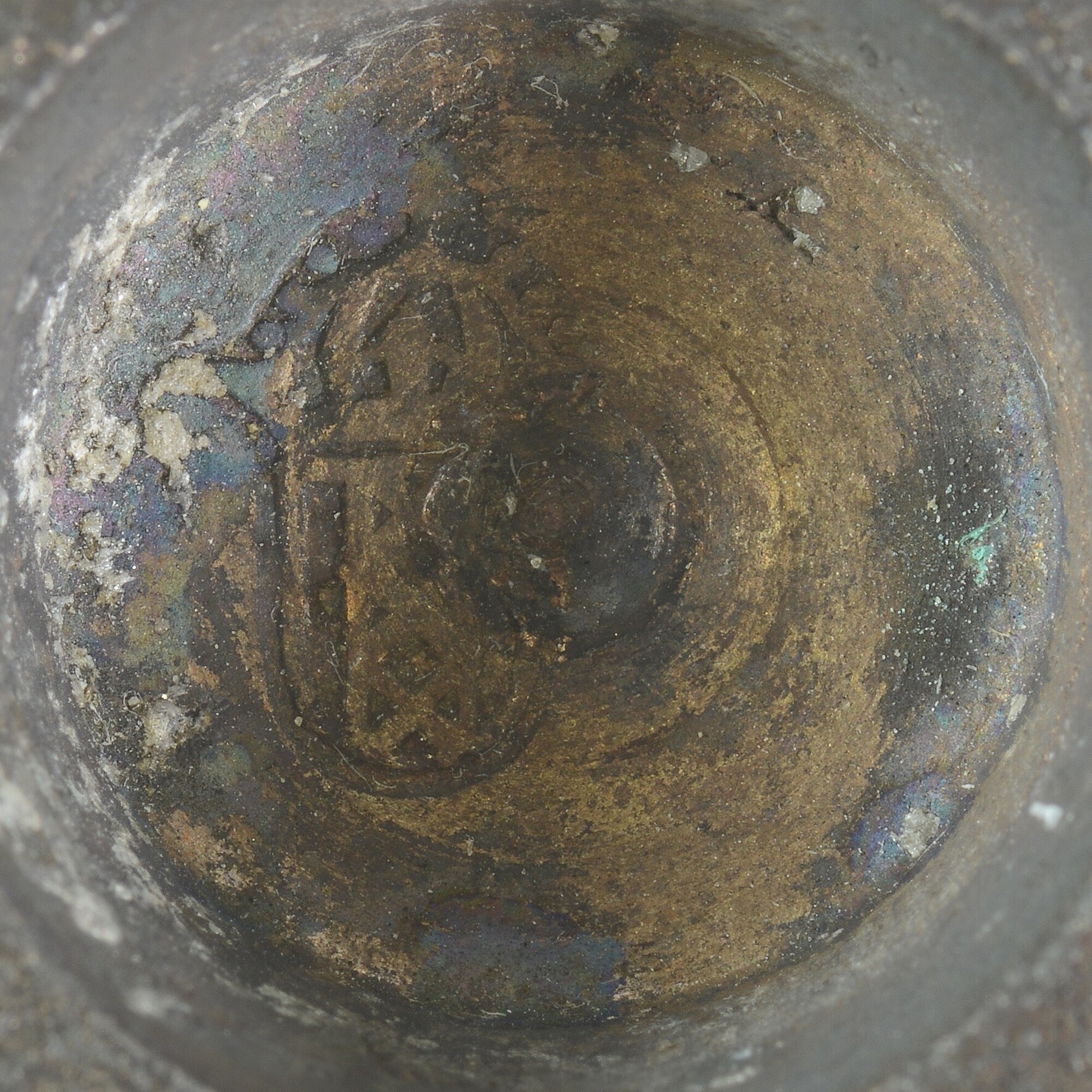 Sluitgewicht/pijlgewicht voor een half Amsterdams pond; type van voor 1650; zeven bakjes en een kleinste, massief gewichtje (sluitstuk); deksel met sluiting en handvat aan de bovenkant; (gieters)merk op het deksel; het buitenste bakje is binnenin geijkt met het wapen van Amsterdam met aan weerszijden de letters I en A; het tweede bakje idem met een ...
