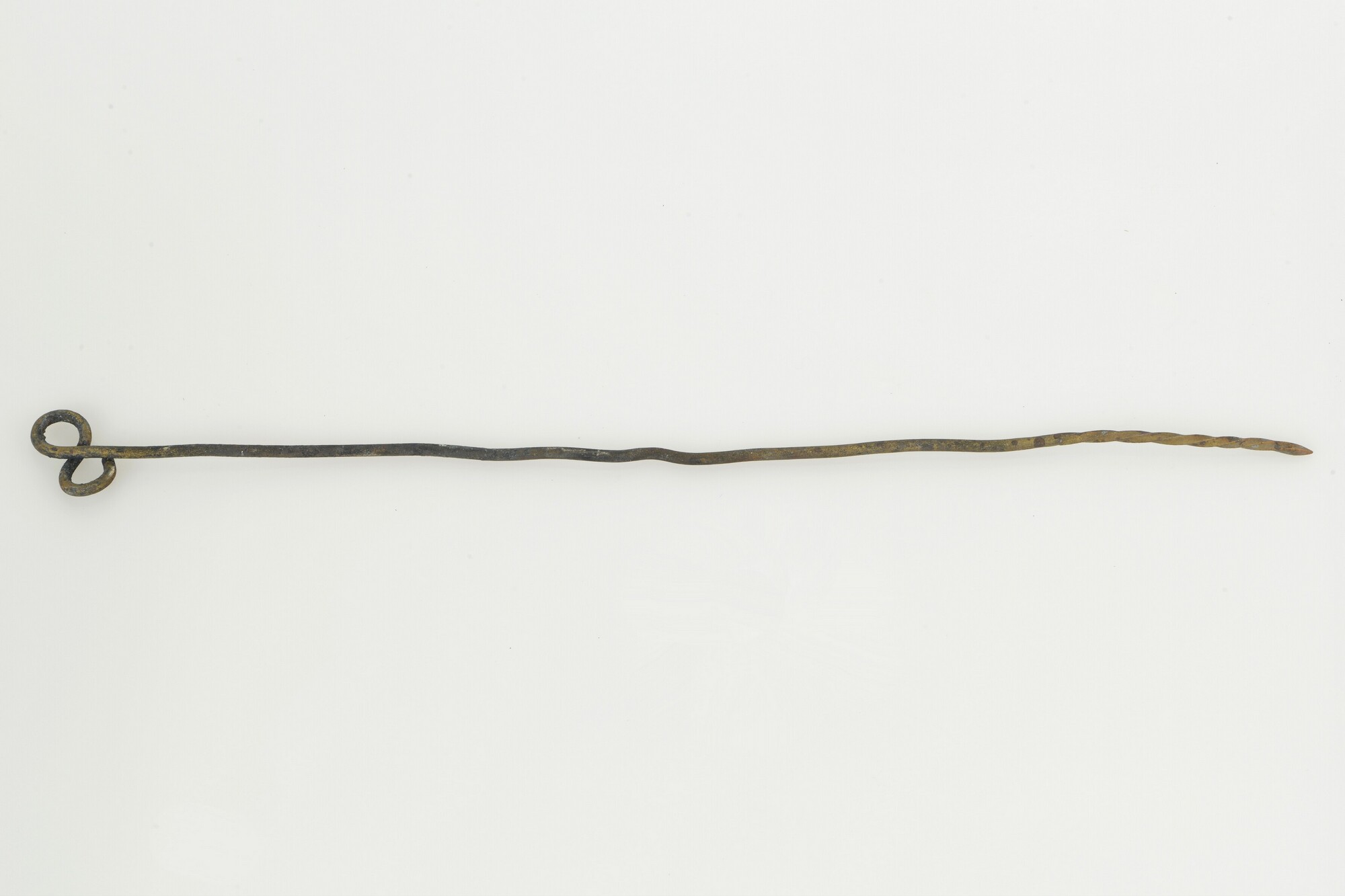 Kardoesprikker; achtvormige lus aan een uiteinde; het andere uiteinde is getordeerd en aangepunt