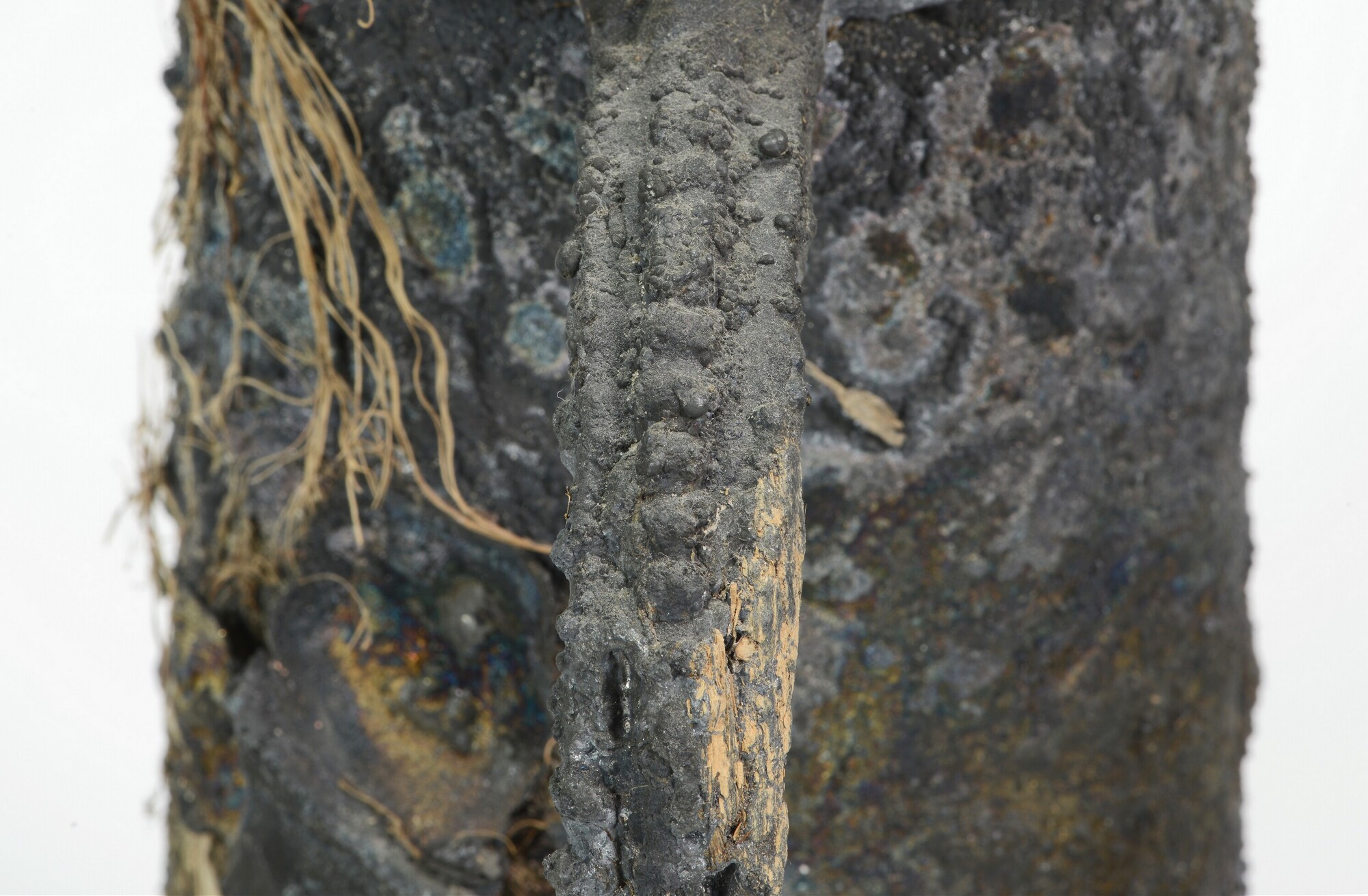 Zilverlegering met koper; organisch verpakkings (?) materiaal; hout