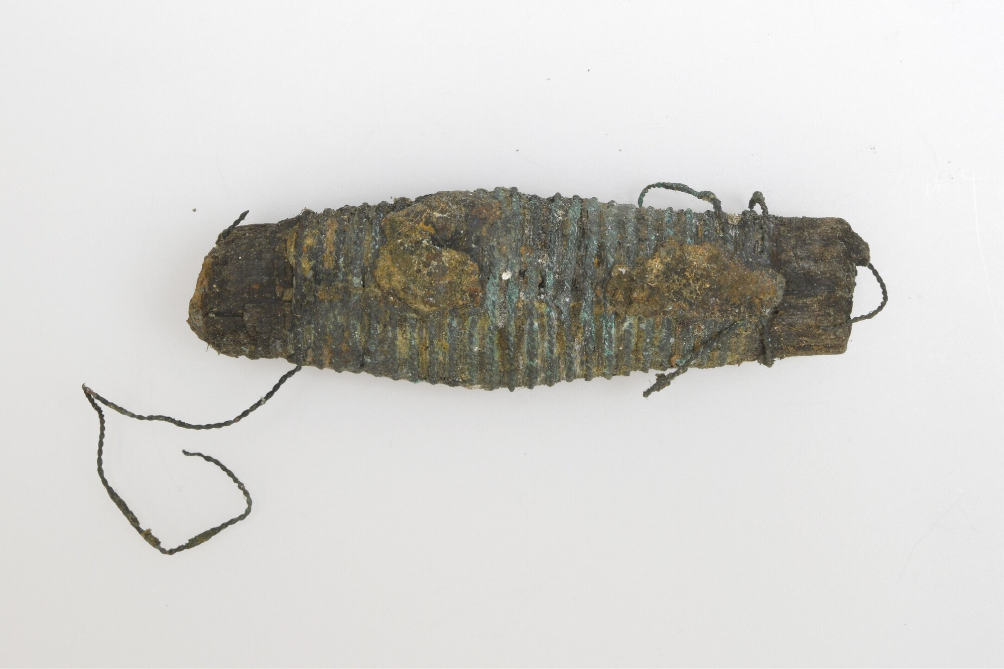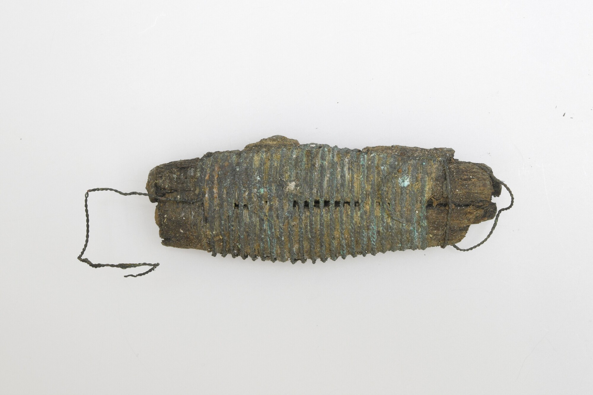 Sabelgevest; houten handvat omwonden met draad van koperlegering