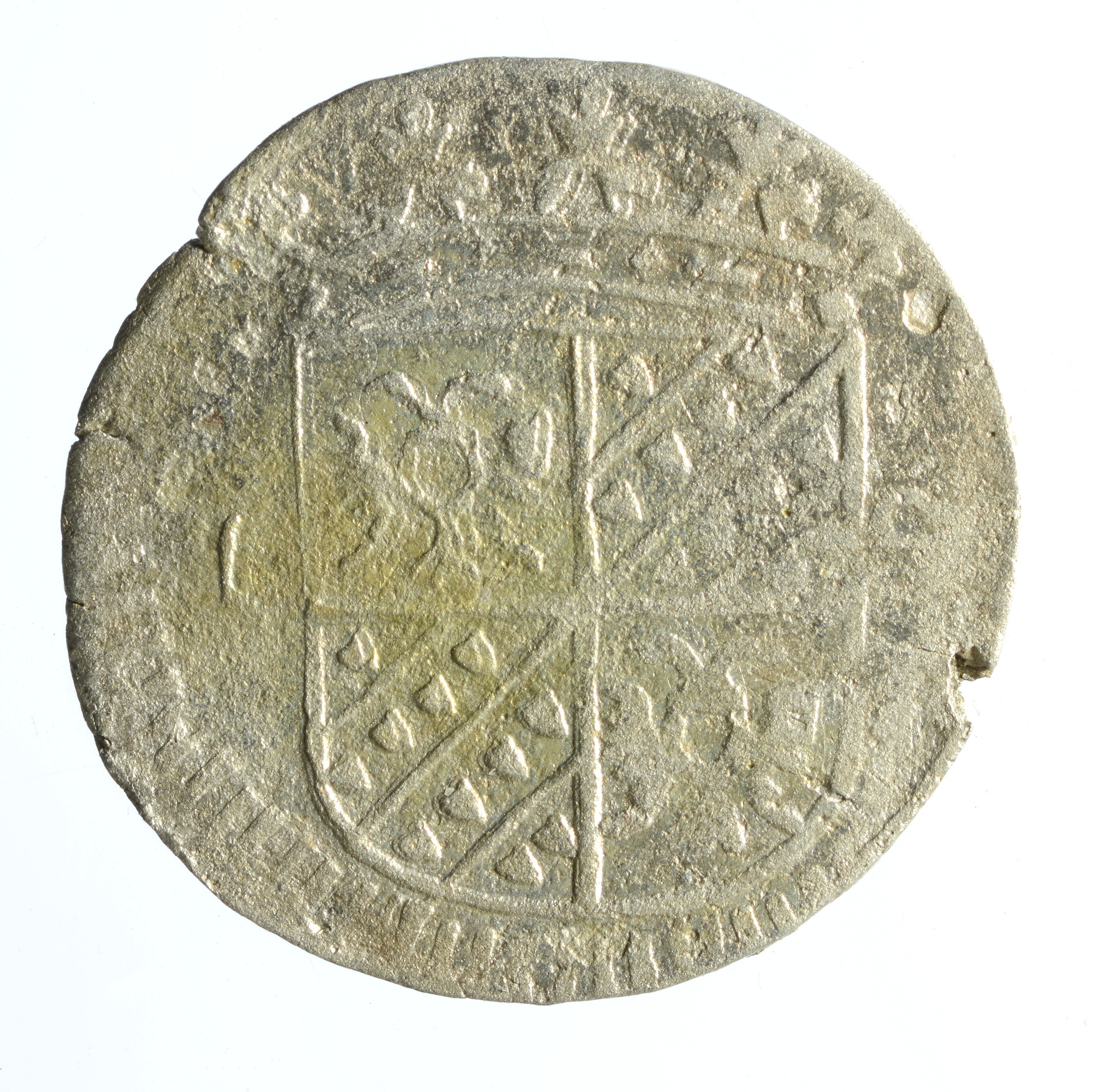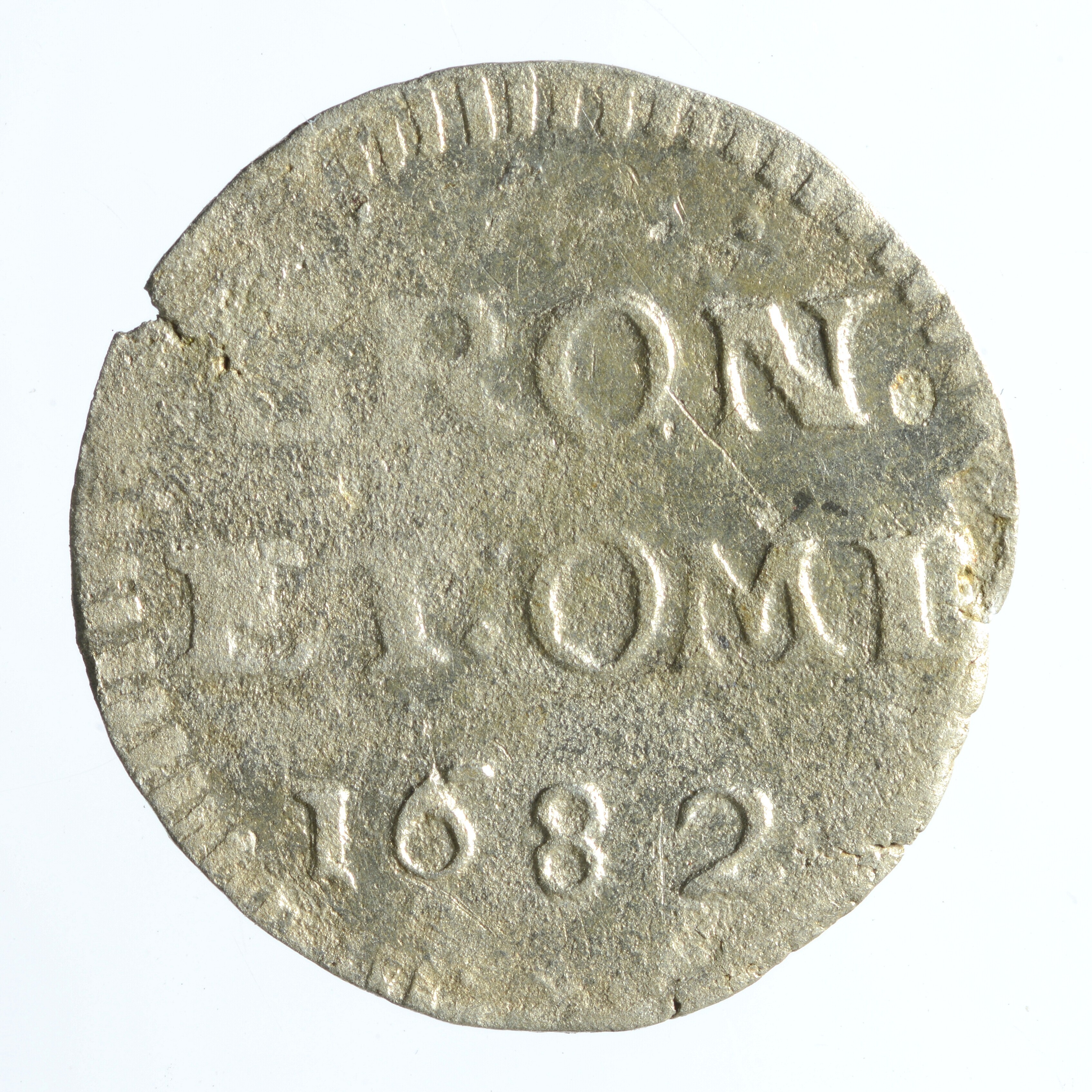 Stuiver; Groningen en Ommeland provincie (1581-1795); vz.: in drie regels: GRON/ ET•OML / jaartal 1682; kz.: gekroond wapenschild van Groningen en Ommelanden en aan weerszijden 1 S; muntplaats: Groningen; gewicht: 0.82 gram