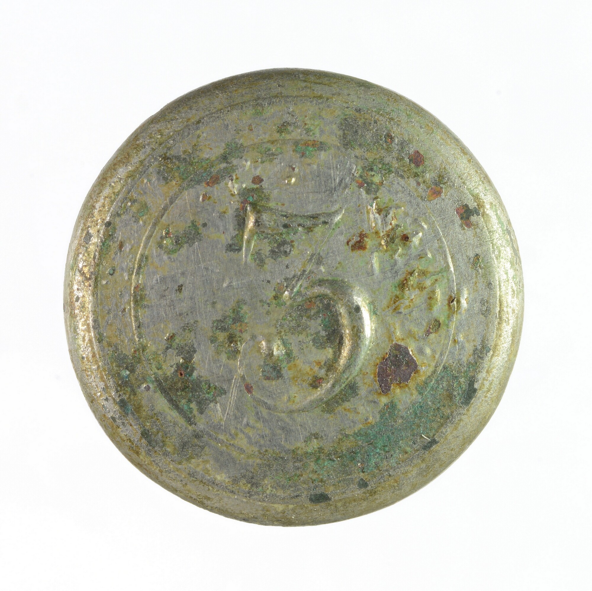 Uniformknoop; Bataafse leger, 3e Bataljon Infanterie; oog; cijfer 3 binnen dubbele cirkel