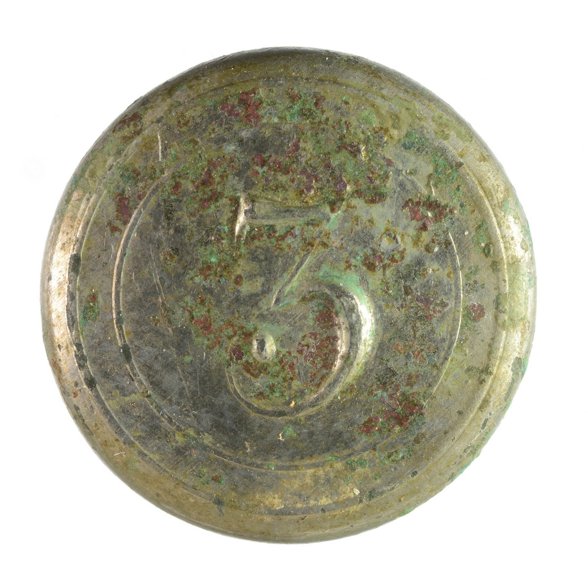 Uniformknoop; Bataafse leger, 3e Bataljon Infanterie; oog; cijfer 3 binnen dubbele cirkel