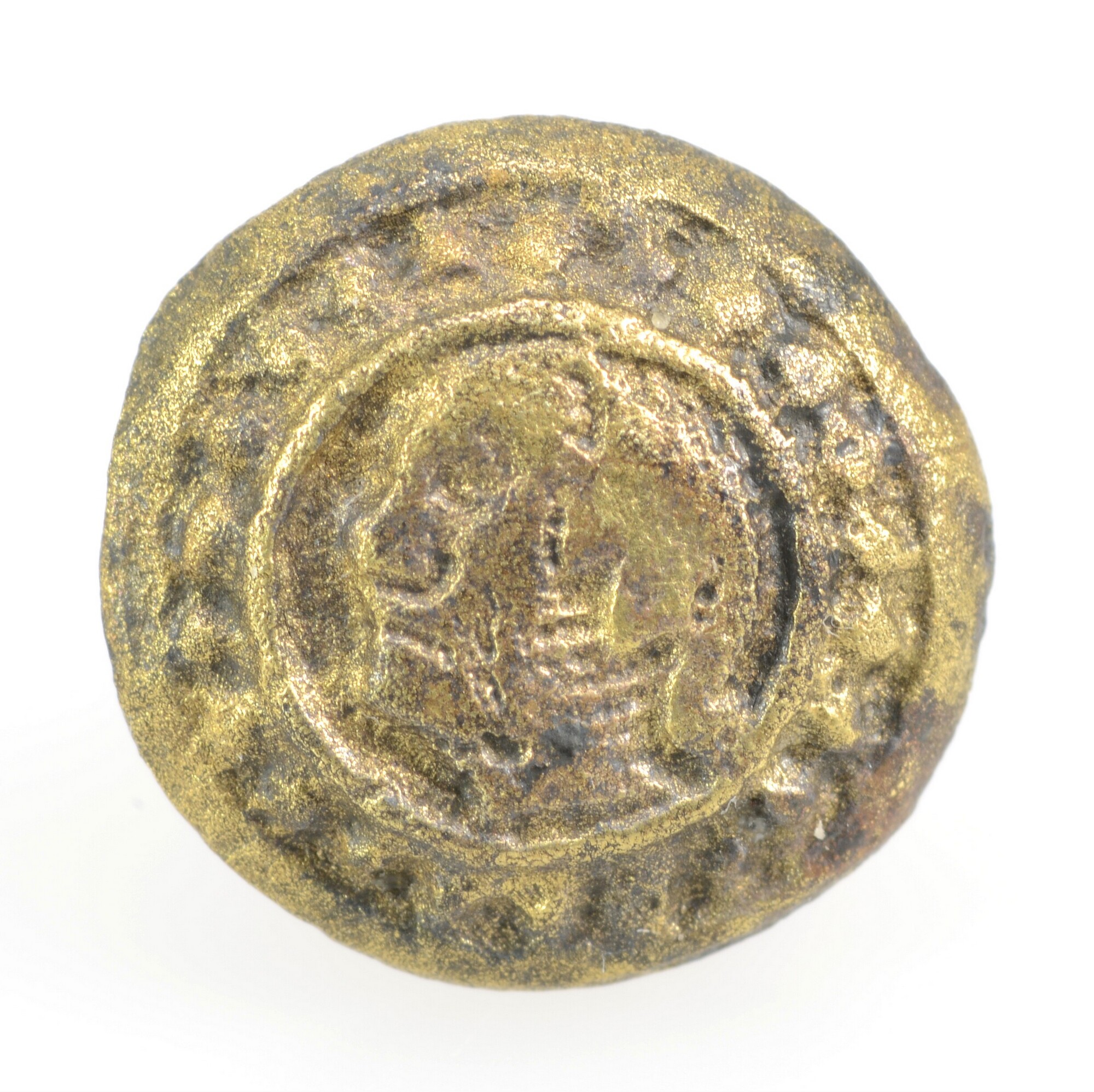 Knoop; draadoog; mannenbuste naar links binnen parelrand