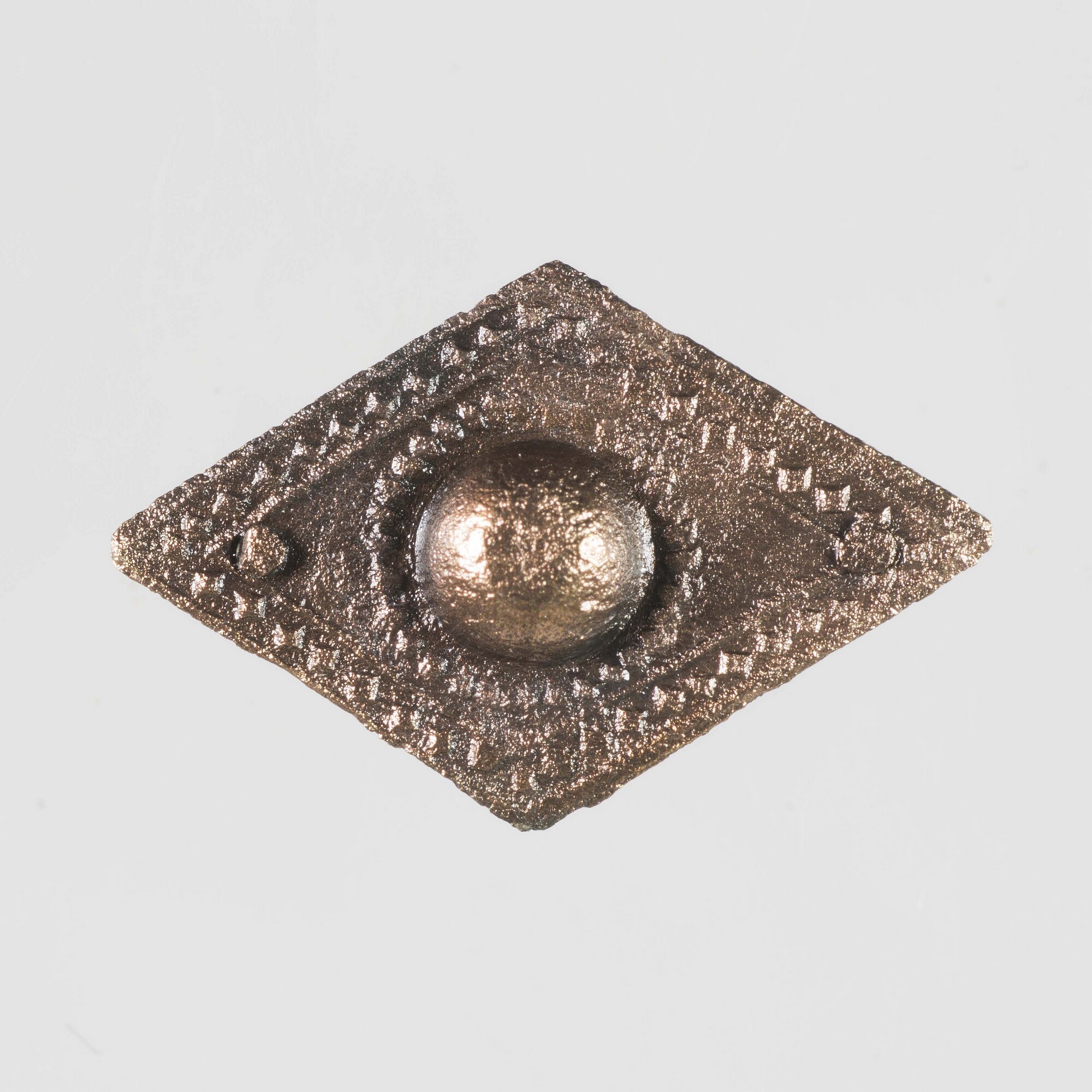 Boekbeslag; bevestigingshaken; ruitvormig met ronde, holle knop