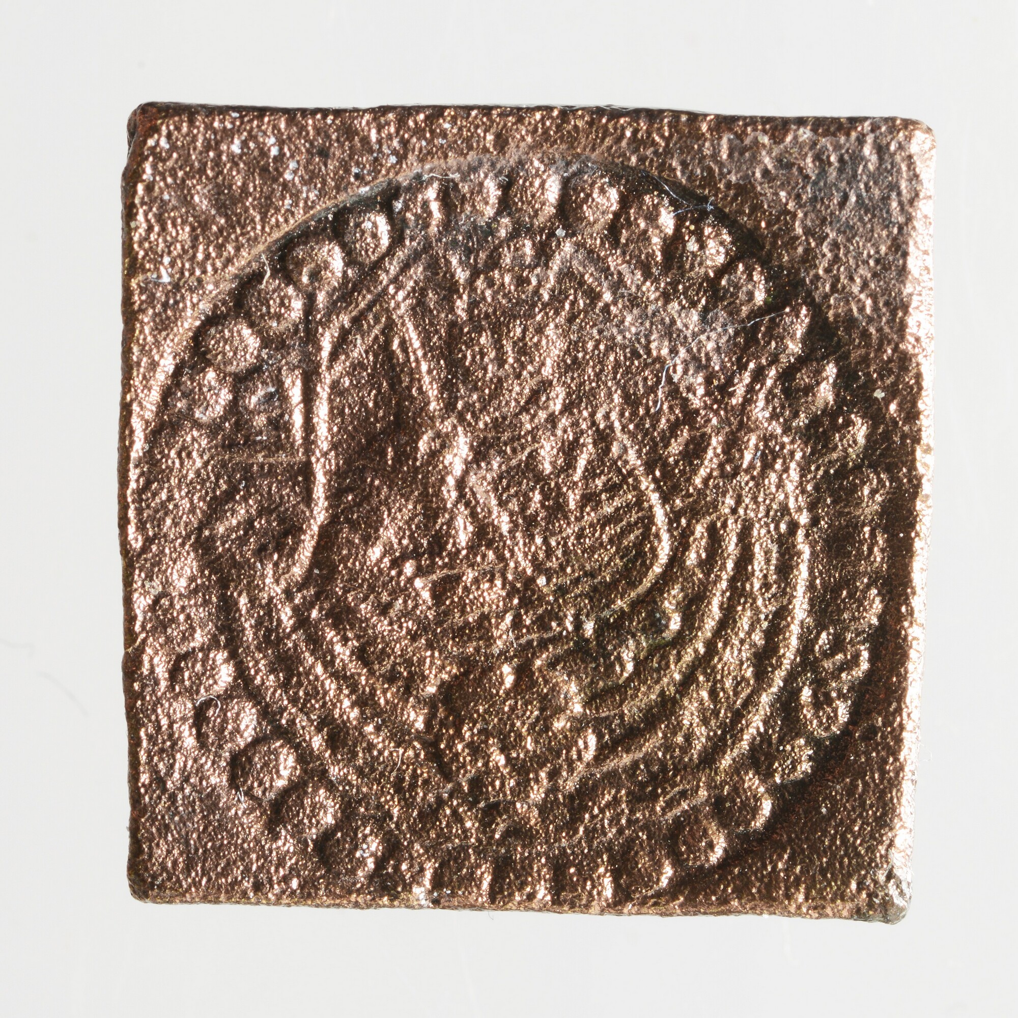 Muntgewicht; Rozennobel van de Verenigde Nederlanden, Zeeland (1579-1603); vz.: vorst met zwaard en wapenschild op een schip met roos, vlag met gotische E op achtersteven; kz.: Merkteken met ponjaard en de letters G D N; vervaardiger: Guilliam de Neve; herkomst: Amsterdam; gewicht: 7.45 gram