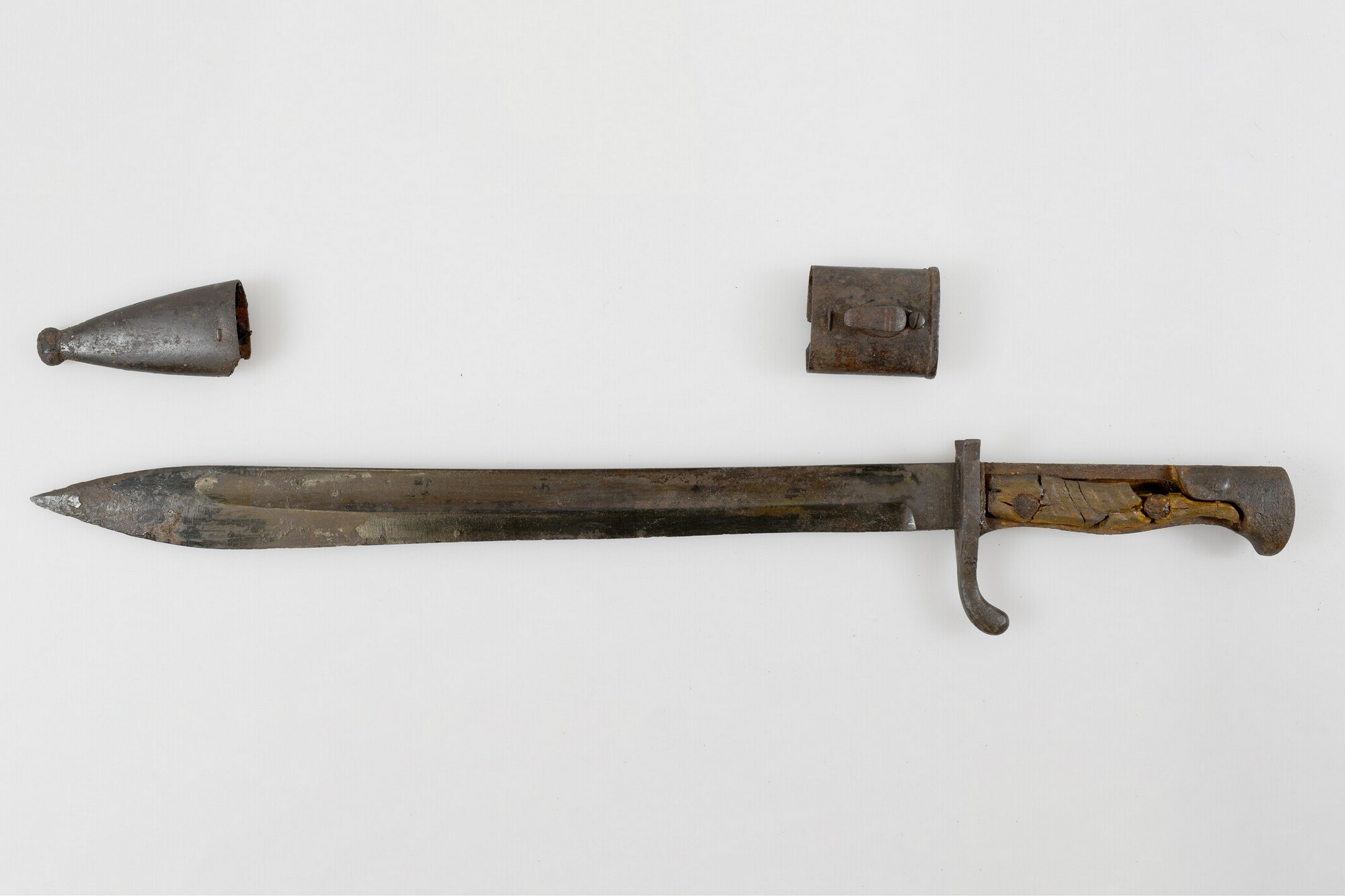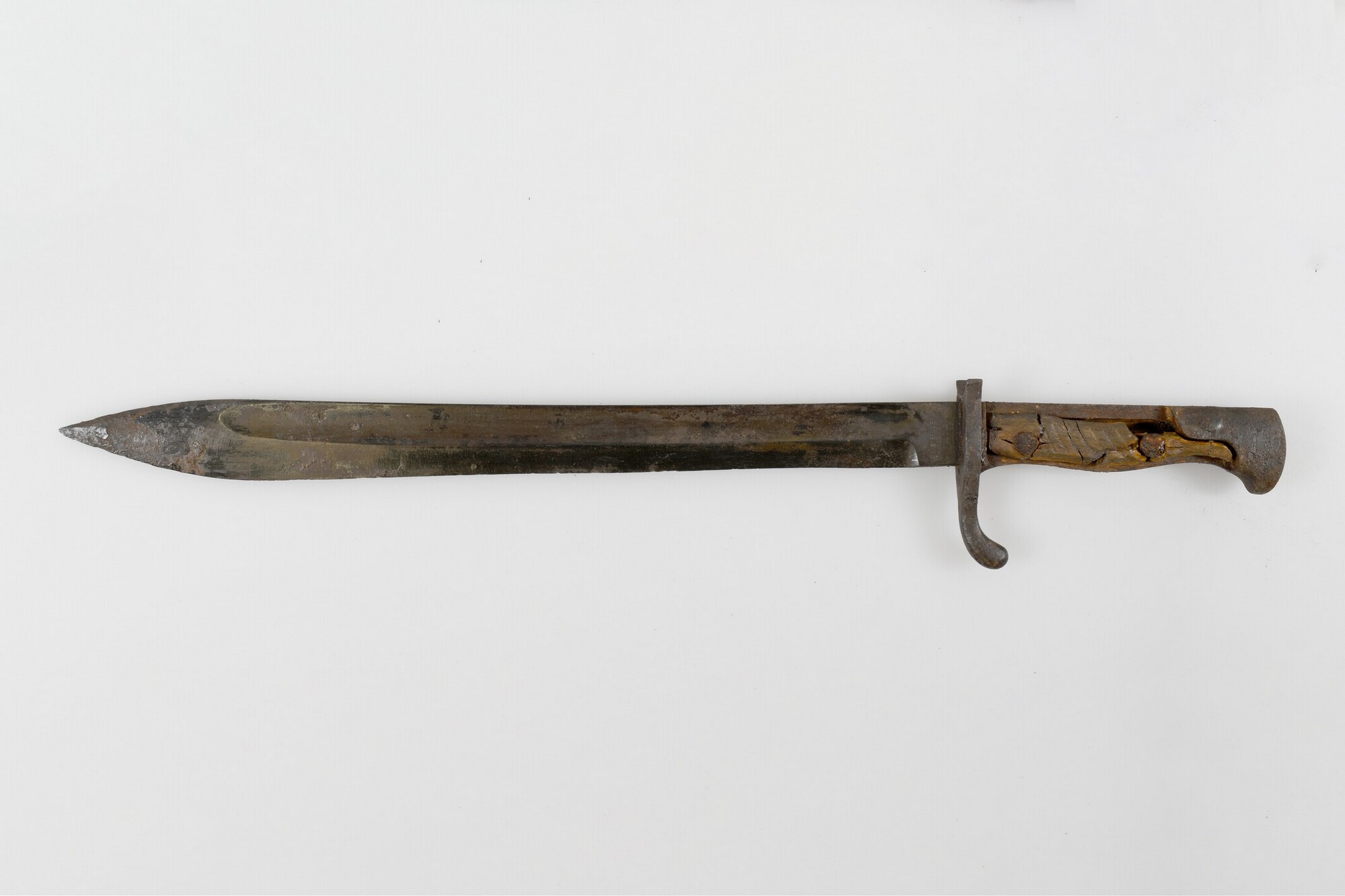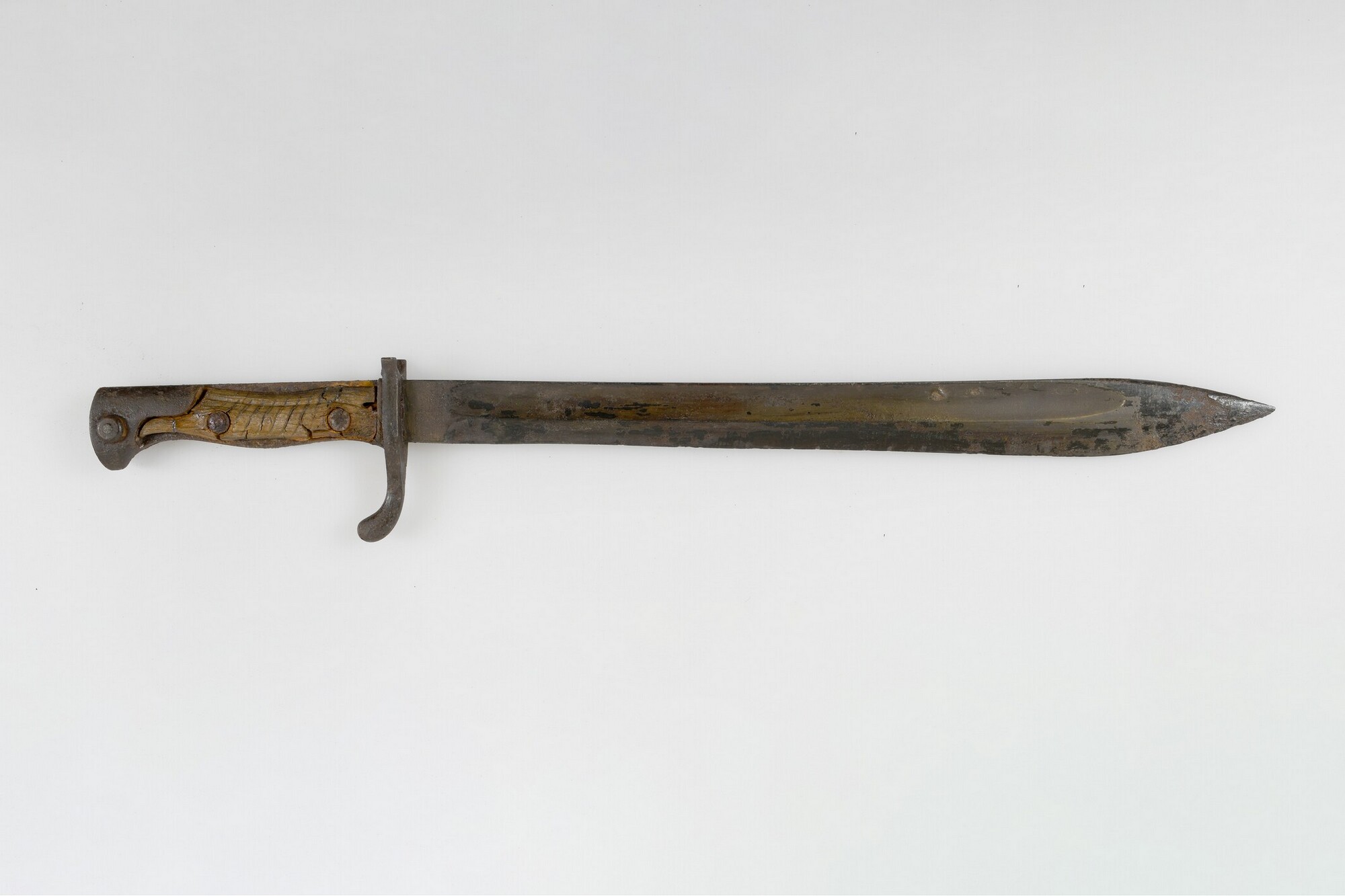 Bajonet; lemmet van ijzer met handgreep van hout; type S98/05, bedoeld voor het Duitse Gewehr 98; schuine groeven in het hout van de handgreep; merk op het lemmet bij de handgreep: WEYERSBERG KIRSCHBAUM & CIE SOLINGEN; merk op de rug van het lemmet: gekroonde W14, verwijzend naar de Duitse keizer Wilhelm II en het productiejaartal ...