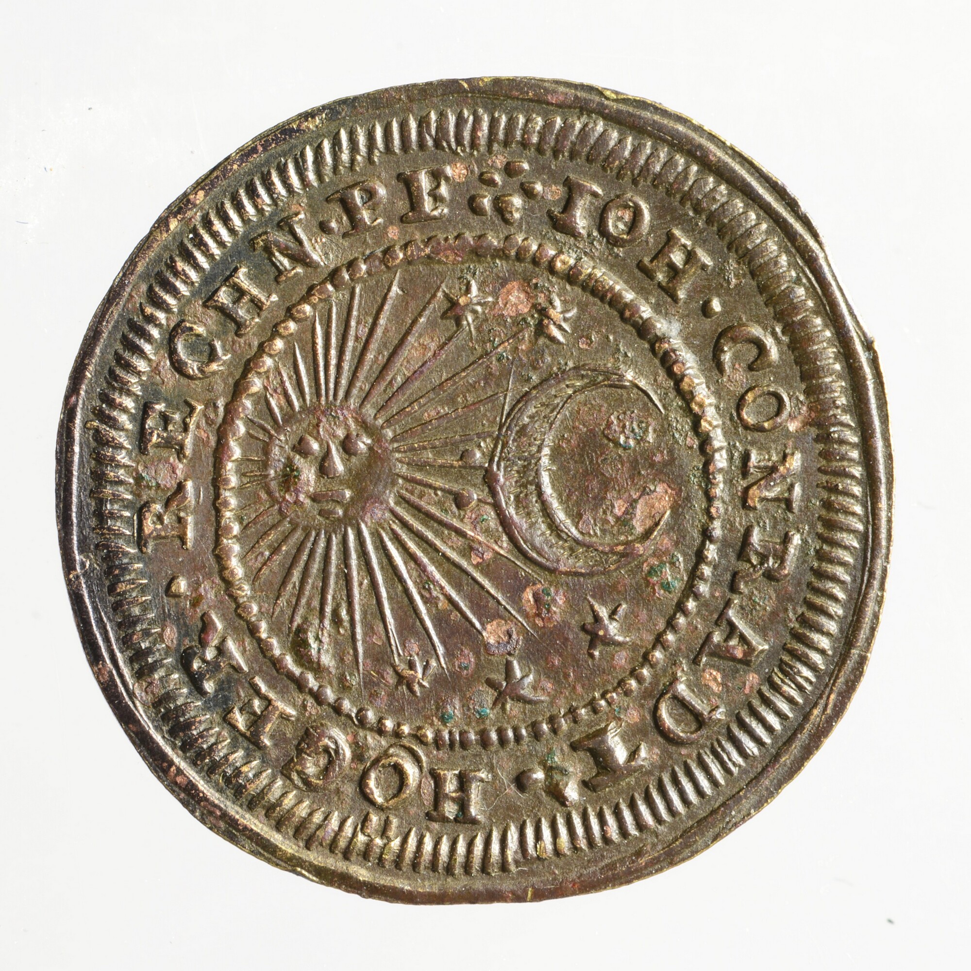 Rekenpenning; vz.: zon met maan en sterren met omschrift IOH CONRADT HOGER RECHN PF; kz.: schip met omschrift DVRCH GLVCK VND KVNST en onder de streep I.C.H.; vervaardiger: Johann Conradt Hoger; muntplaats: Neurenberg; gewicht: 1.33 gram