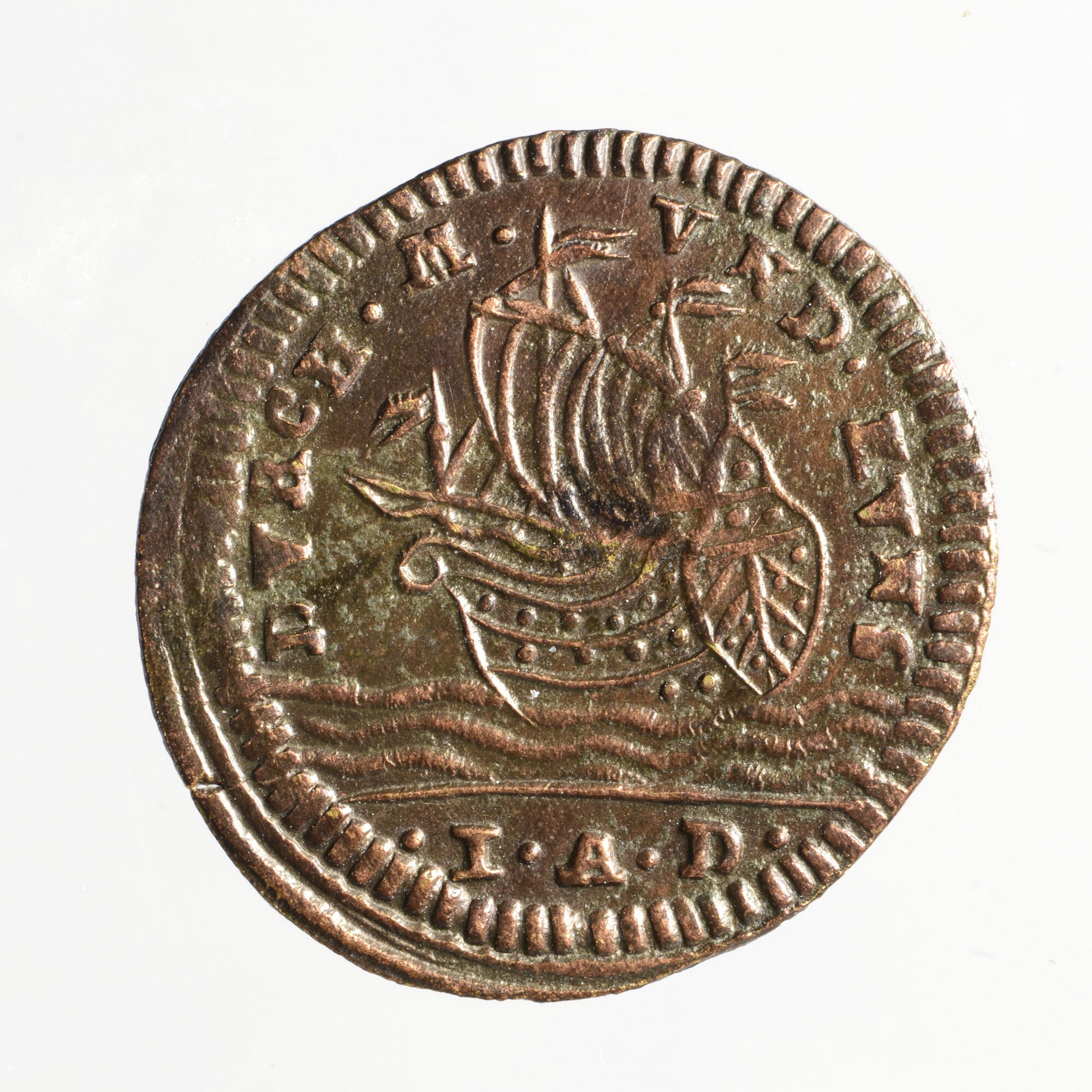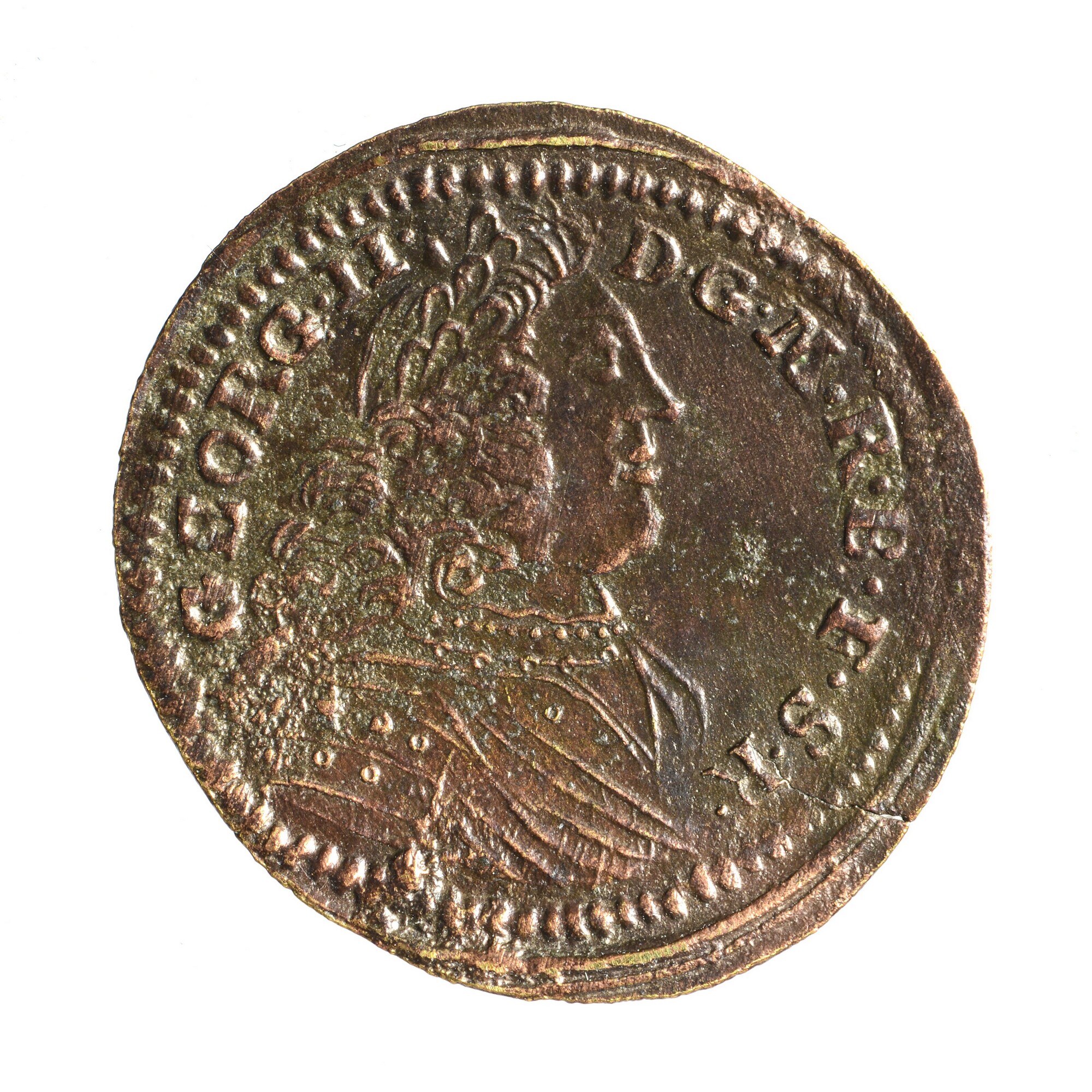 Rekenpenning; vz.: buste van Koning George II van Engeland (1727-1760) en omschrift GEORG II D•G•M•B•E•F•S•K; kz.: schip met omschrift DVRCH M VND LTWS en onder de streep I.A.D.; vervaardiger: Johann Albrecht Dorn; muntplaats: Neurenberg; gewicht: 0.87 gram