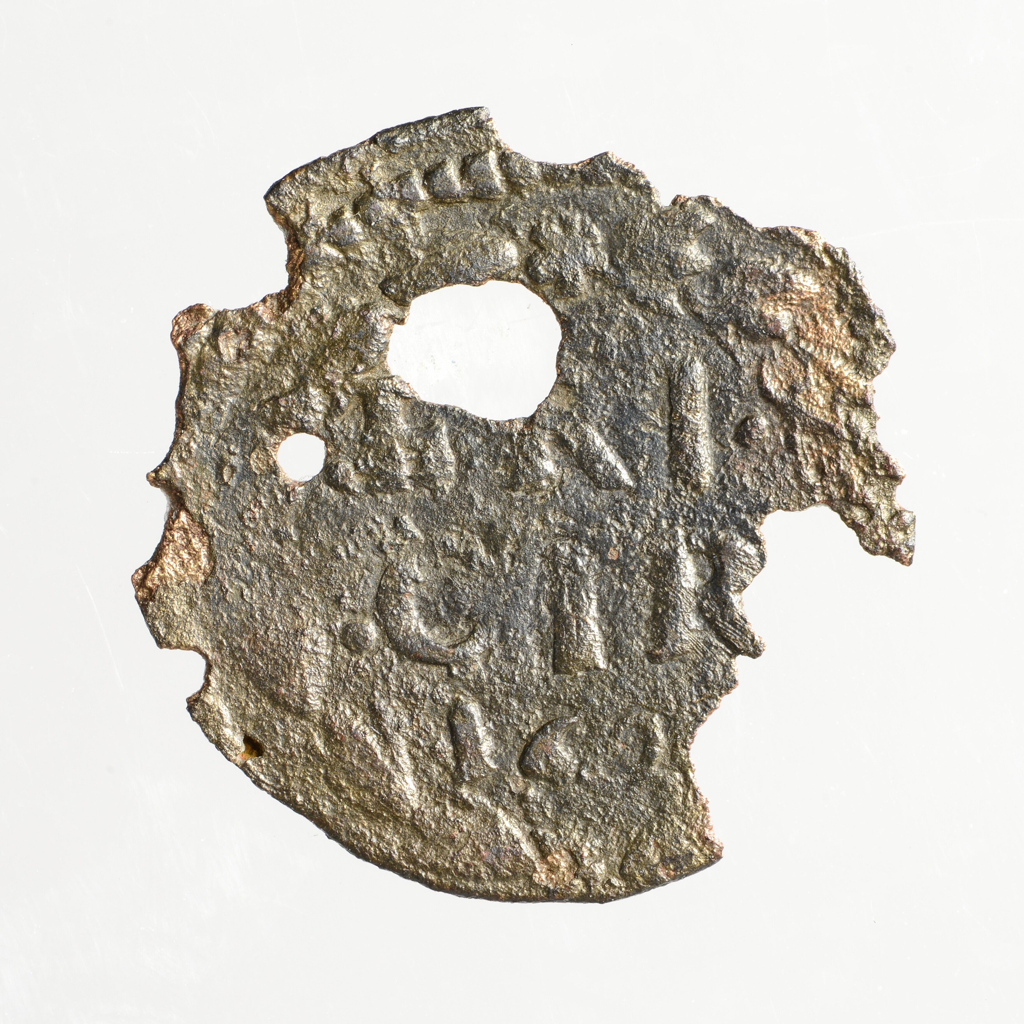 Duit; Reckheim Baronie (1356-1623) of Rijksgraafschap (1623-1795); vz.: binnen een bladerkrans in drie regels: FRI / CIR / 162[.]; kz.: ongekroond en versierd wapenschild met twee leeuwen, gelijkend op dat van Friesland, muntplaats: Reckheim; gewicht: 0.86 gram