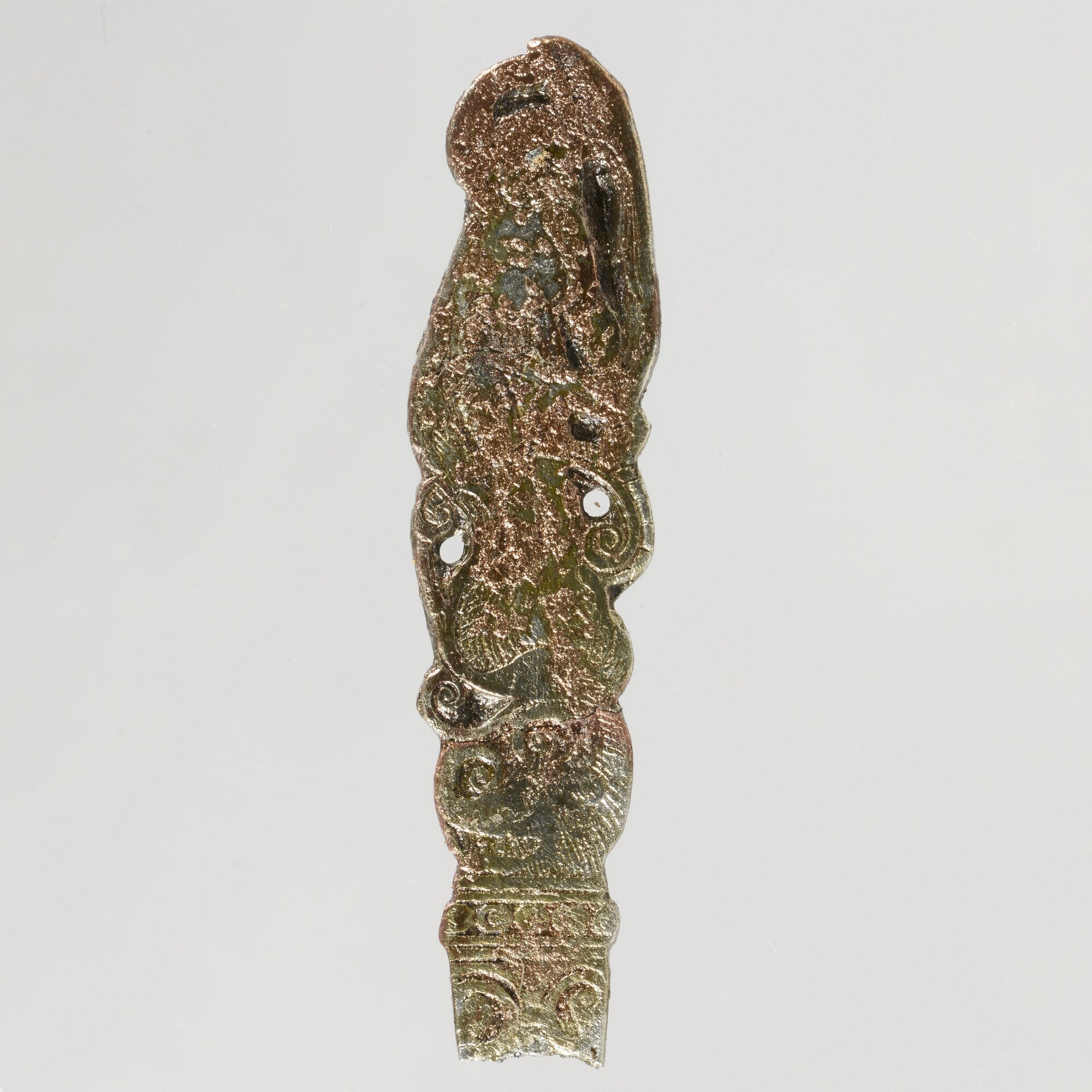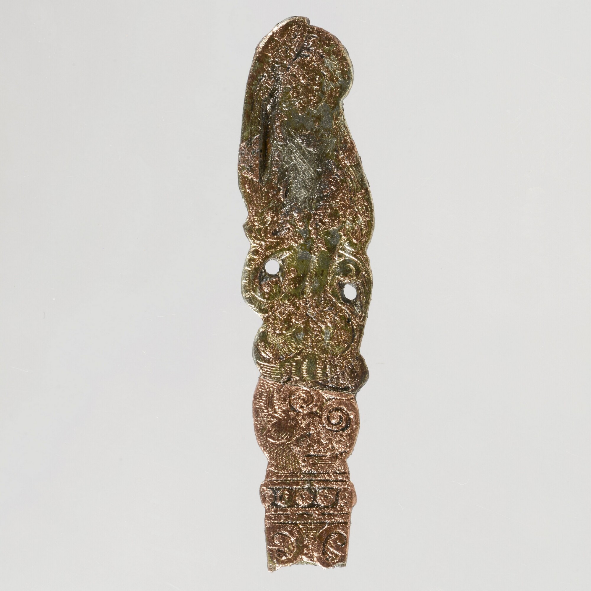 Lepel of haarnaald; afgebroken deel van een lepel of haarnaald; vrouwfiguur
