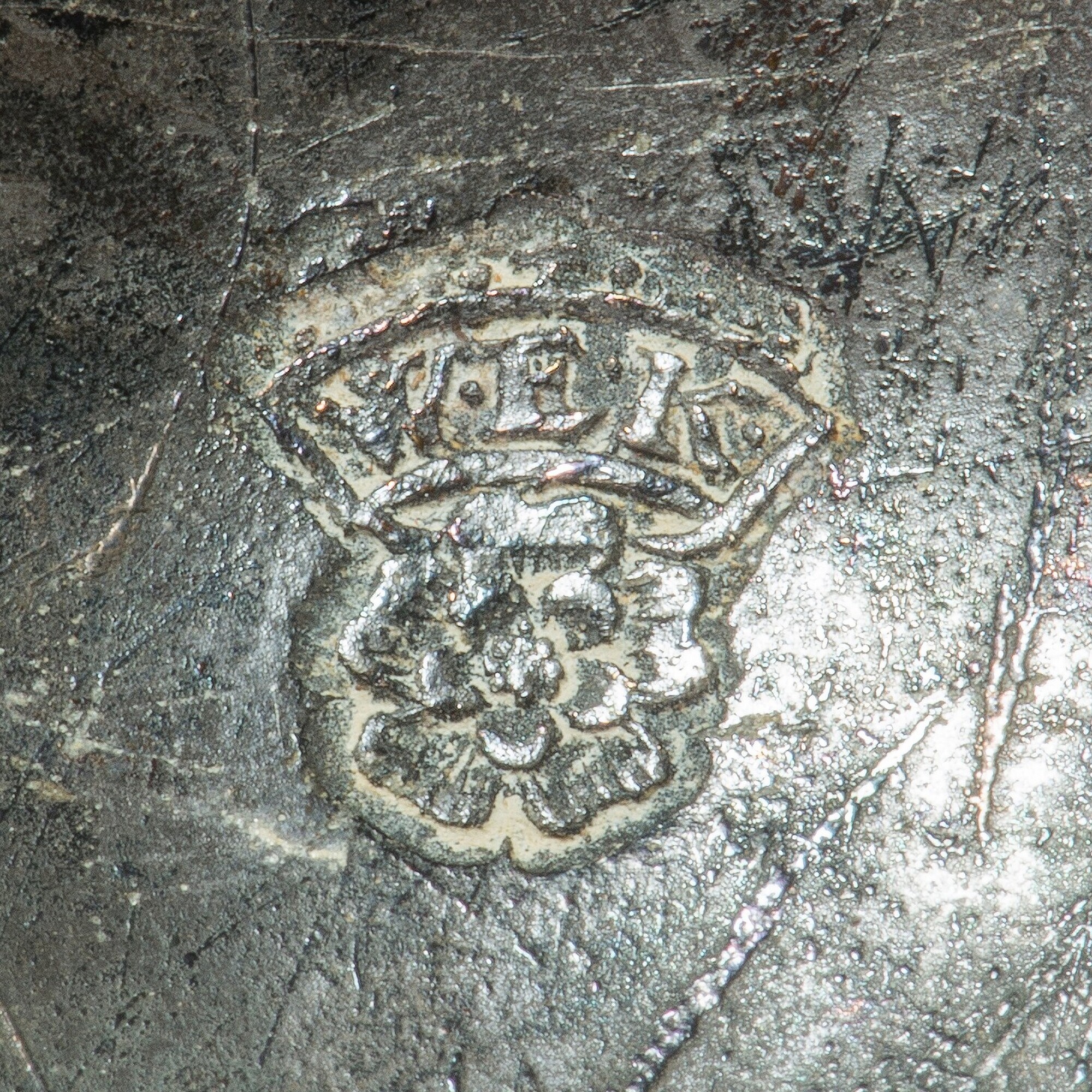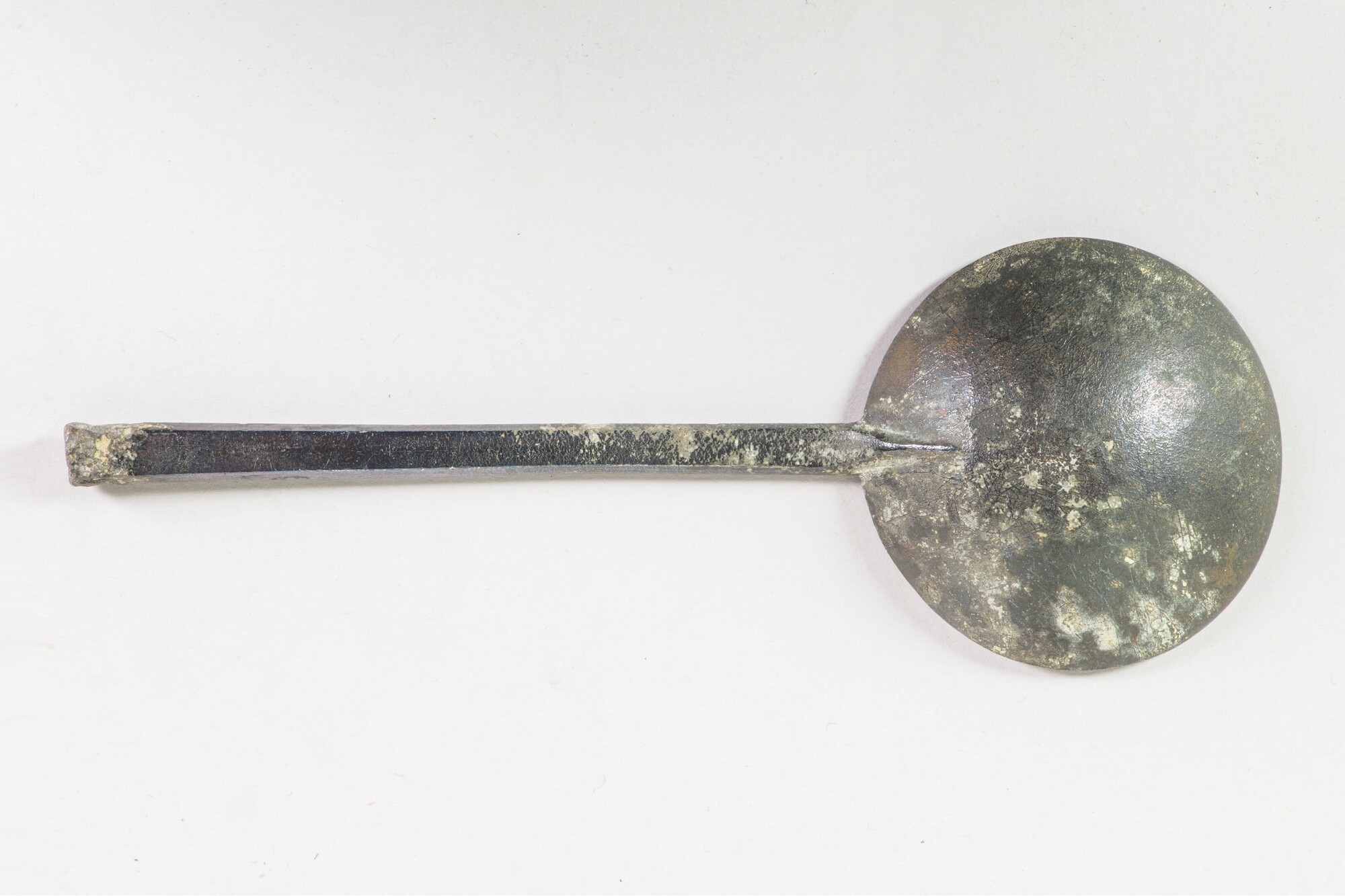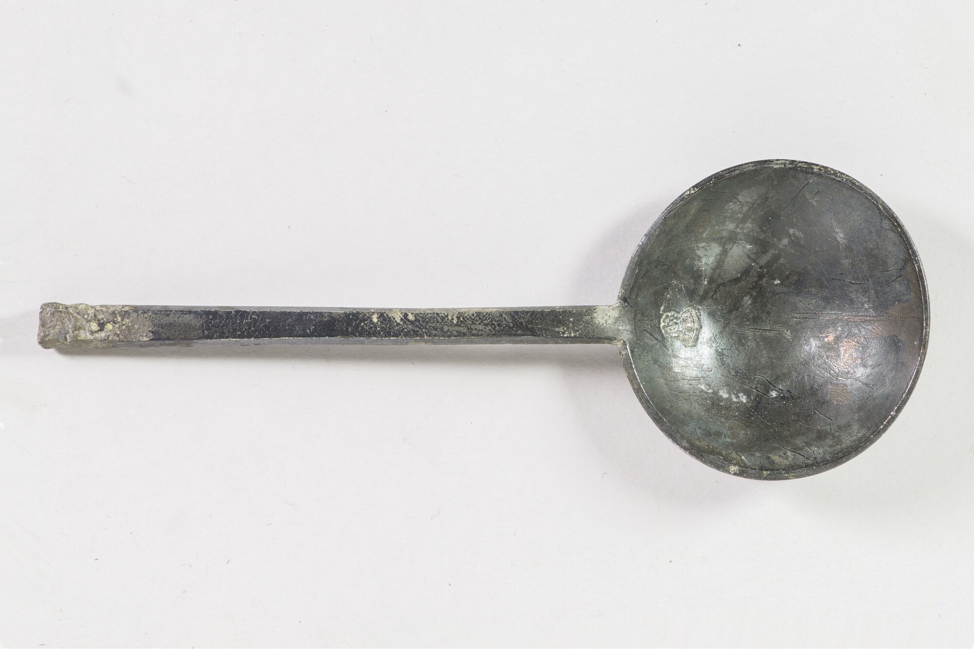 Lepel; sn-lep; ronde bak, platte zeskantige steel met recht uiteinde; verbinding bak-steel: korte naald; merkteken in de bak: gekroonde roos met in de kroon de initialen W E K; vondstomstandigheden: gevonden op of nabij de hockeyvelden Bloemendaal, Aelbertsbergweg 3, jaren 1980/1990; waarschijnlijk betreft het de locatie van het huis Aelbertsberg