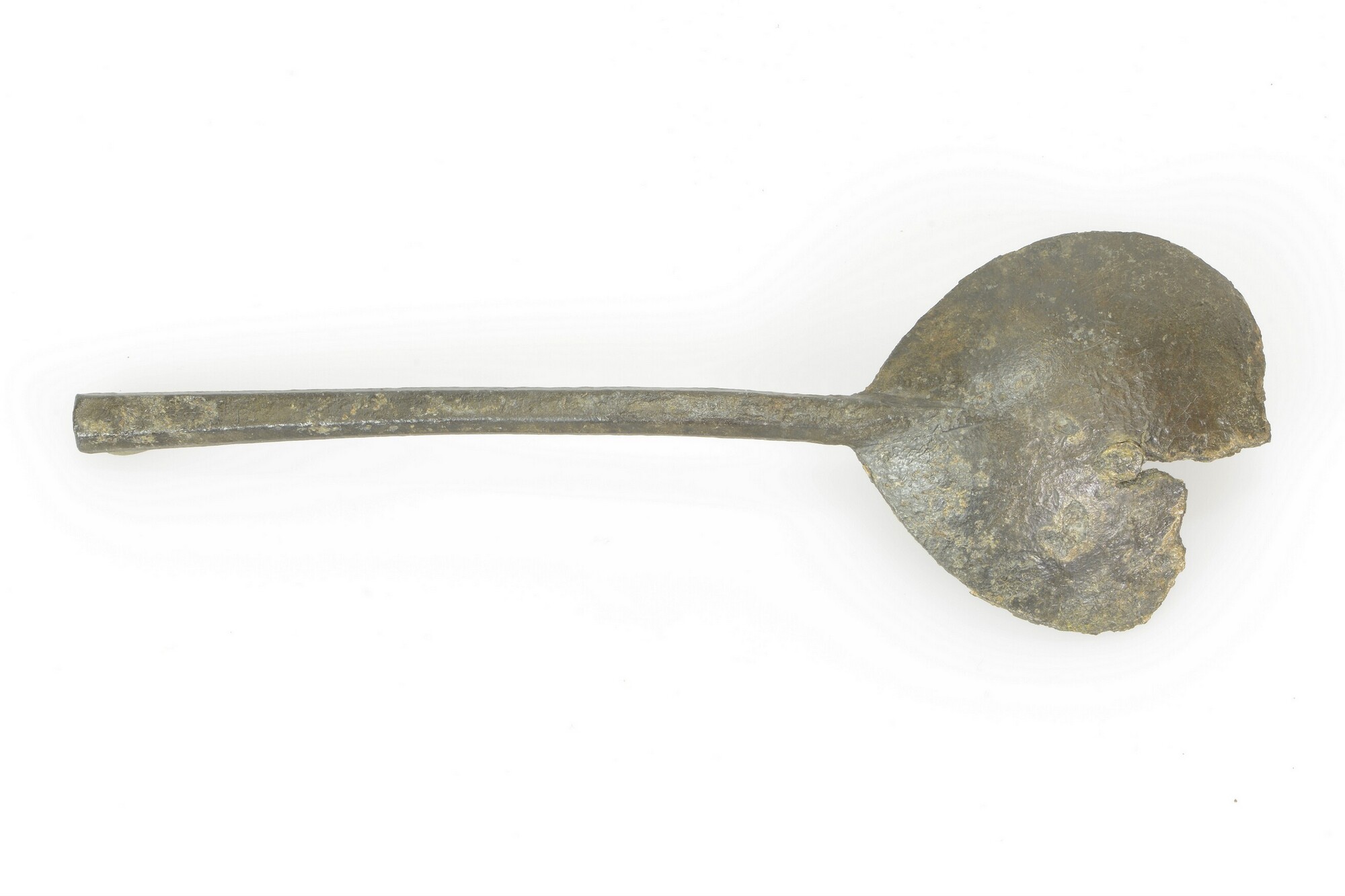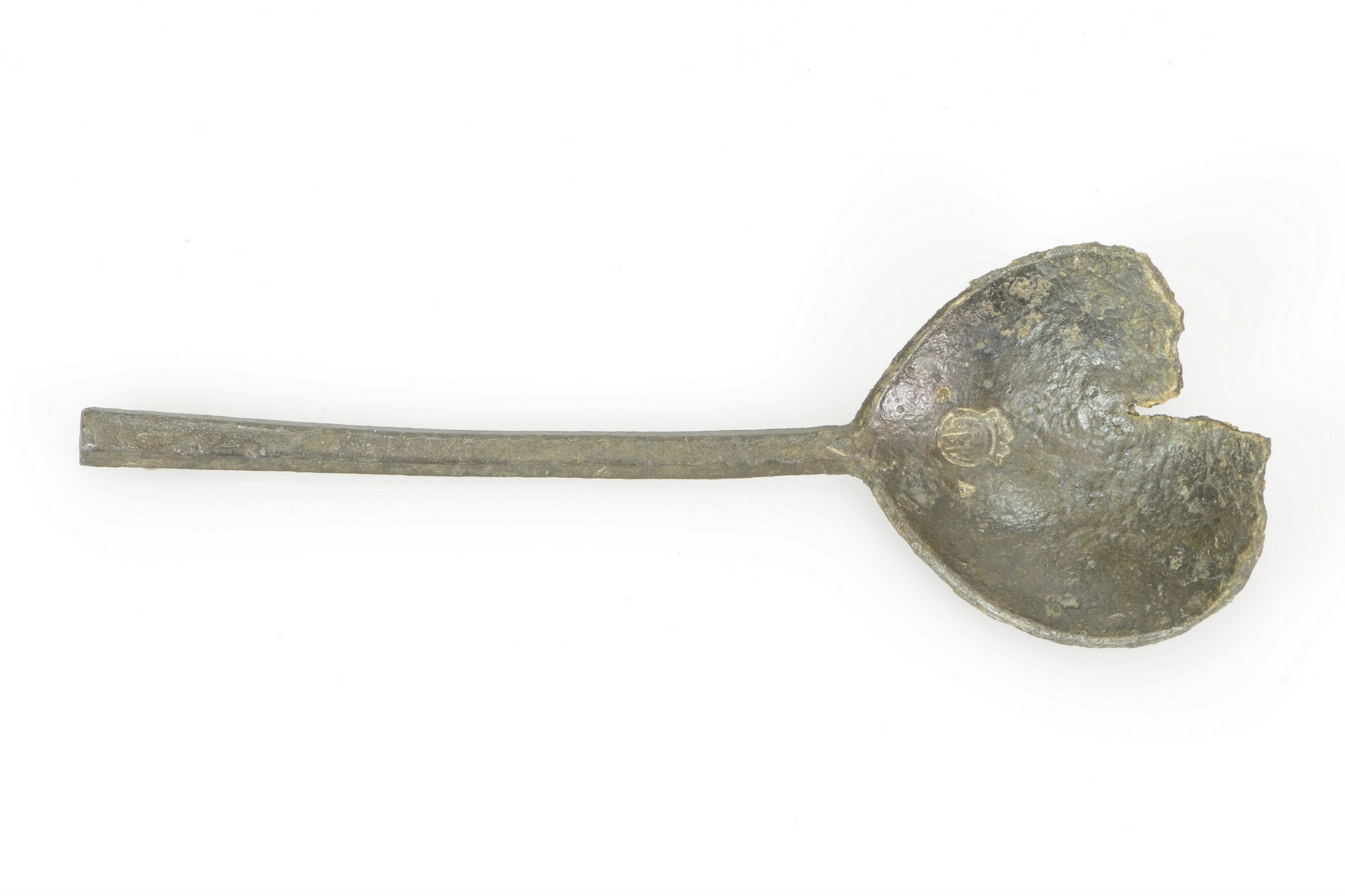 Lepel; sn-lep-; lepel met druppelvormige bak, zeshoekige steel, rechte steelbeeindiging; merkteken, op bak: gekroond stadswapen van Amsterdam met daarin de letters KK en de initialen G.?., aan weerszijden van het stadswapen de letterstempels G en A