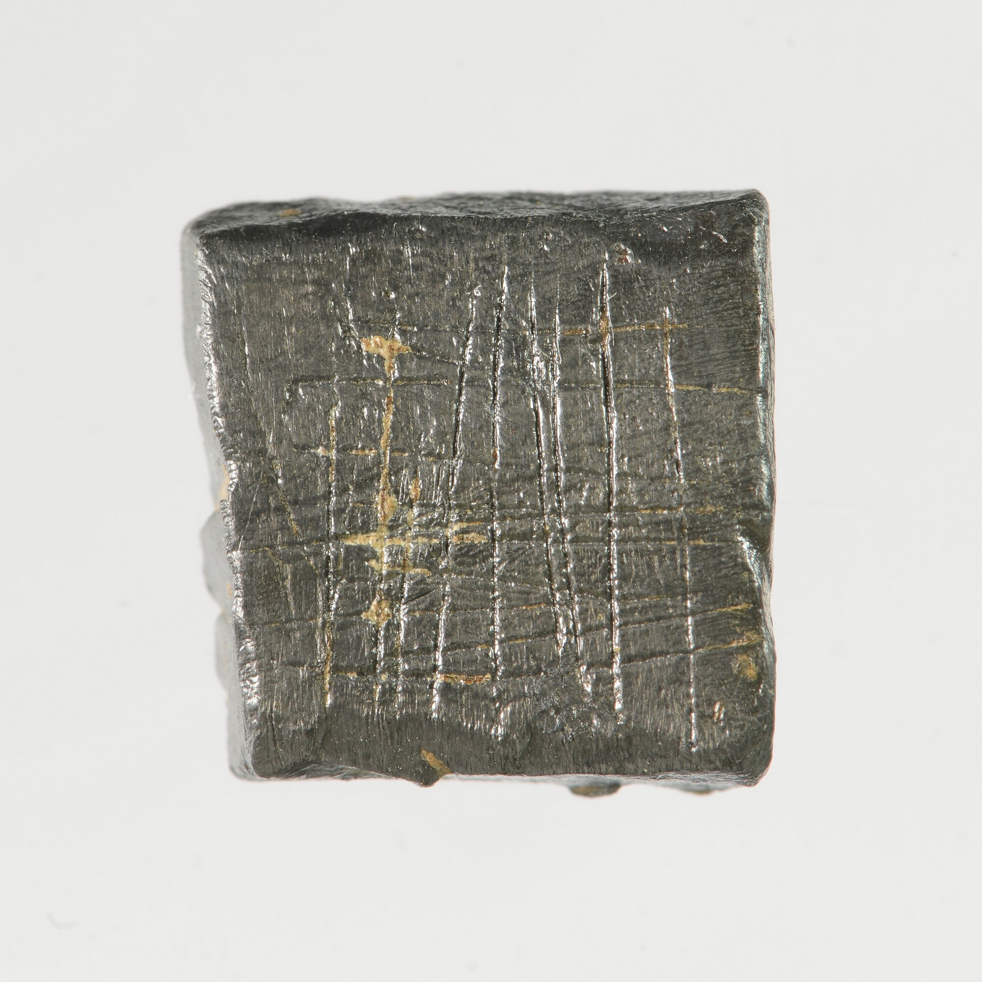 Gewicht (?); vierkant; ingekraste strepen in een ruitpatroon