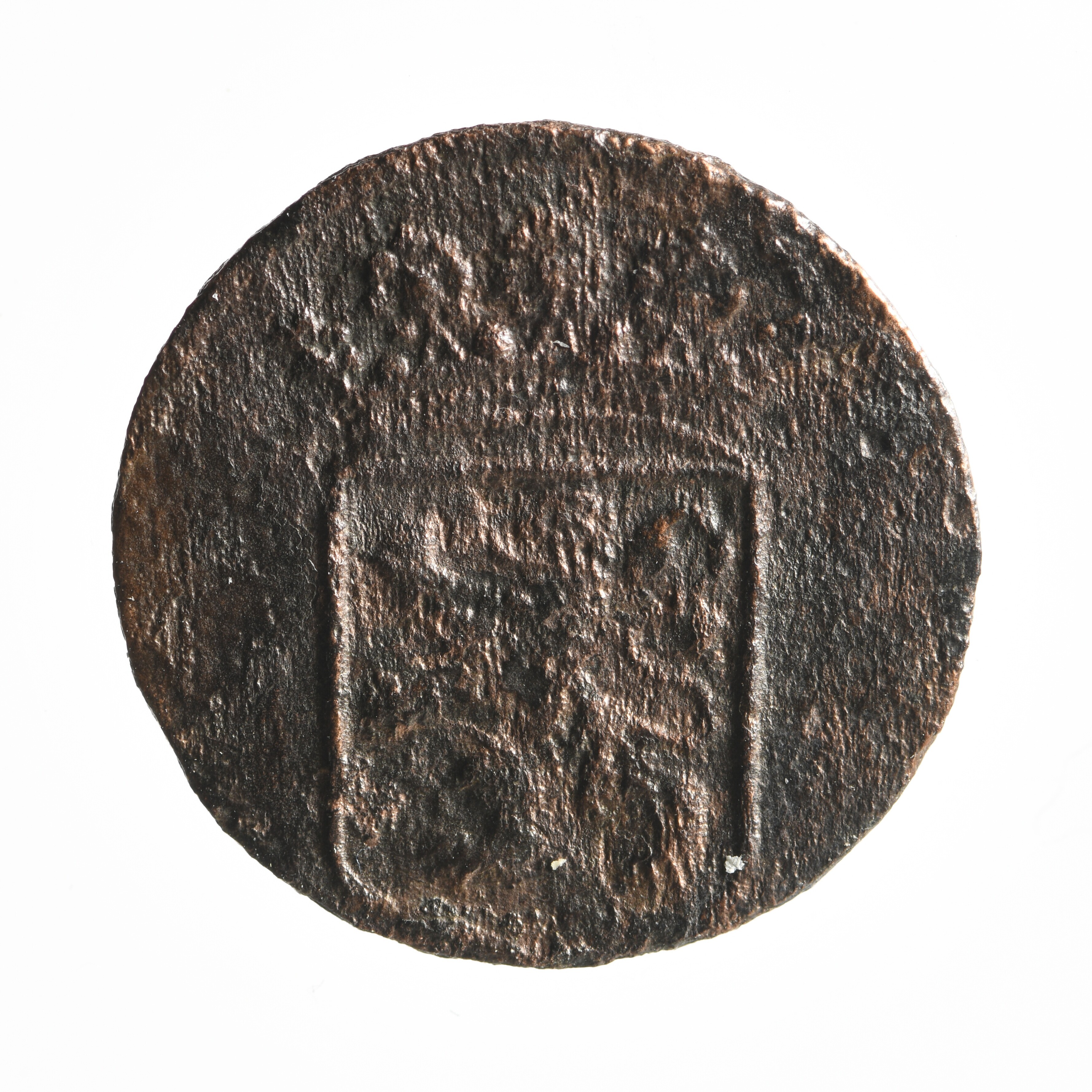 Duit; Verenigde Oostindische Compagnie (1602-1799); vz.: monogram van de V.O.C. met daarboven een vijfbladige rozet tussen punten, onder het monogram het jaartal 1752; kz.: gekroond wapen van Holland; gewicht: 2.04 gram