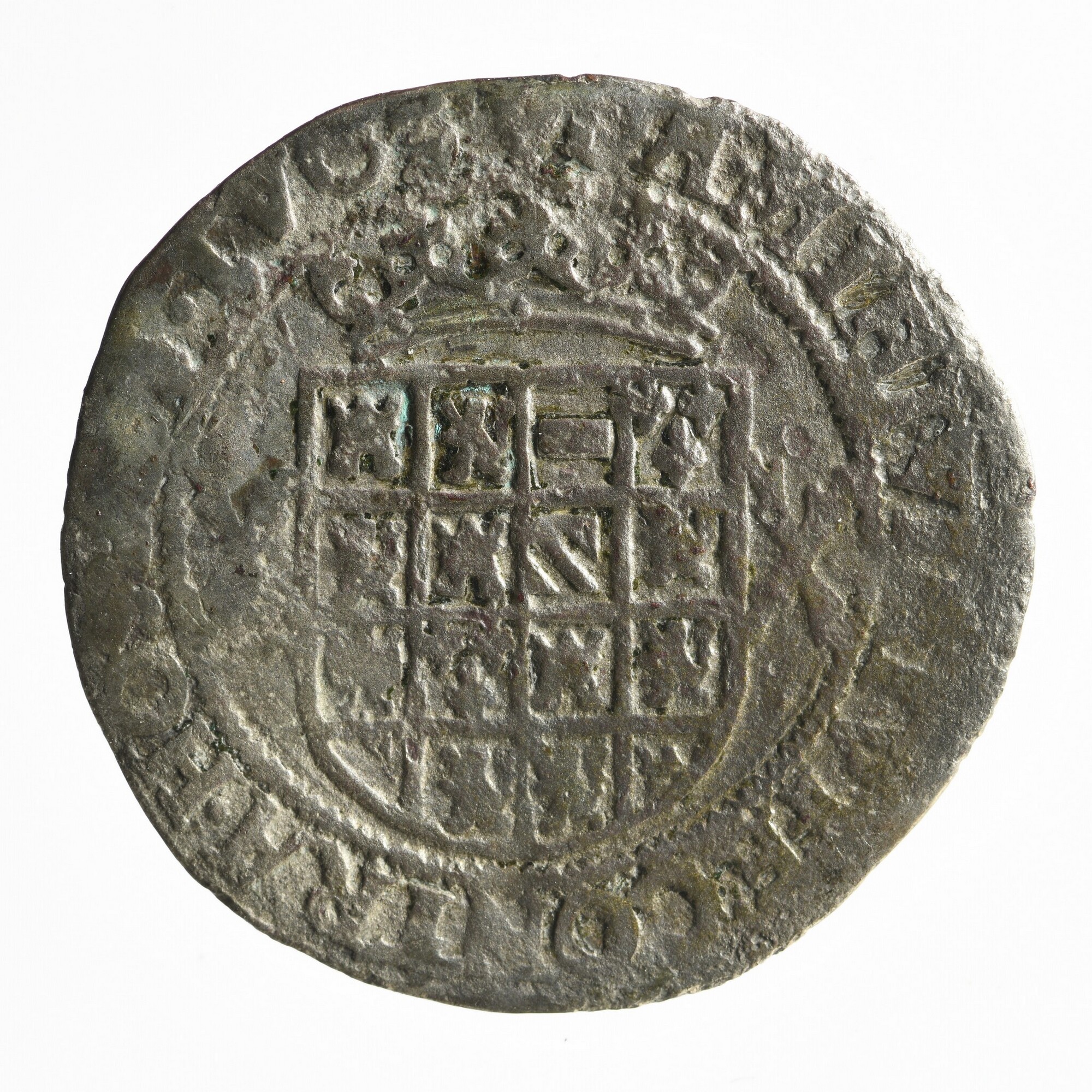 Stuiver; hertogdom Brabant / Antwerpen - Karel V (1506-1555); vz.: lang gevoet en versierd kruis, in het midden opengewerkt met het gekroonde wapen van het Roomse Rijk, een versierde vierpas, met drieblaadjes op de binnenhoeken en ringetjes in de buitenhoeken, en het omschrift onderbrekend; omschrift: KAROL D:G •RO.IMP.[Z.H]ISP.REX; kz.: gekroond wapenschild van Oostenrijk en Bourgondië, ...