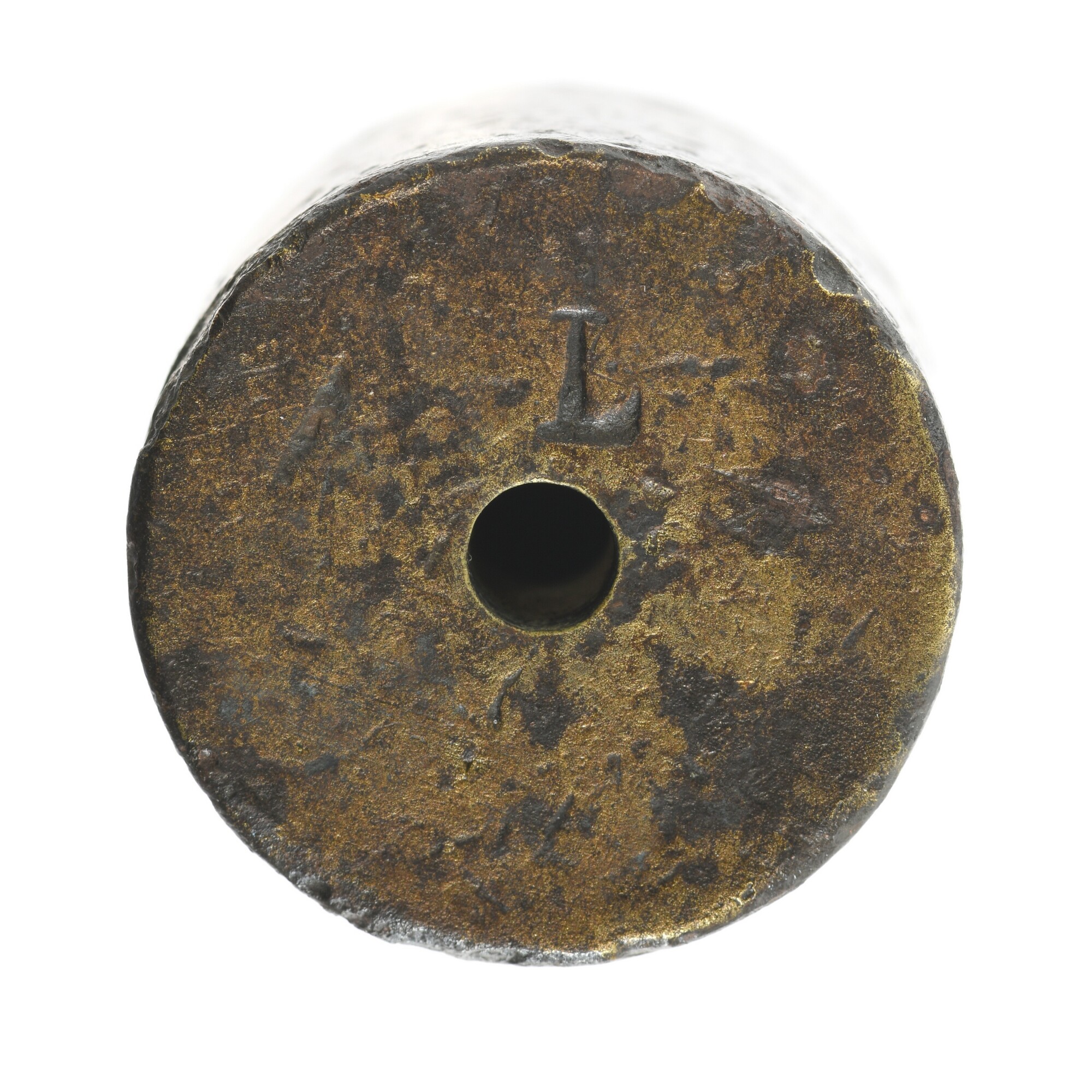 Gewicht; ijkletter h (1898-1899); 15 (ijkkantoor Leeuwarden, kantoorwerk 15); 1 HEKTOG[RAM]; onderzijde: L (Louwmans uit Sneek); gewicht: 99.0 gram