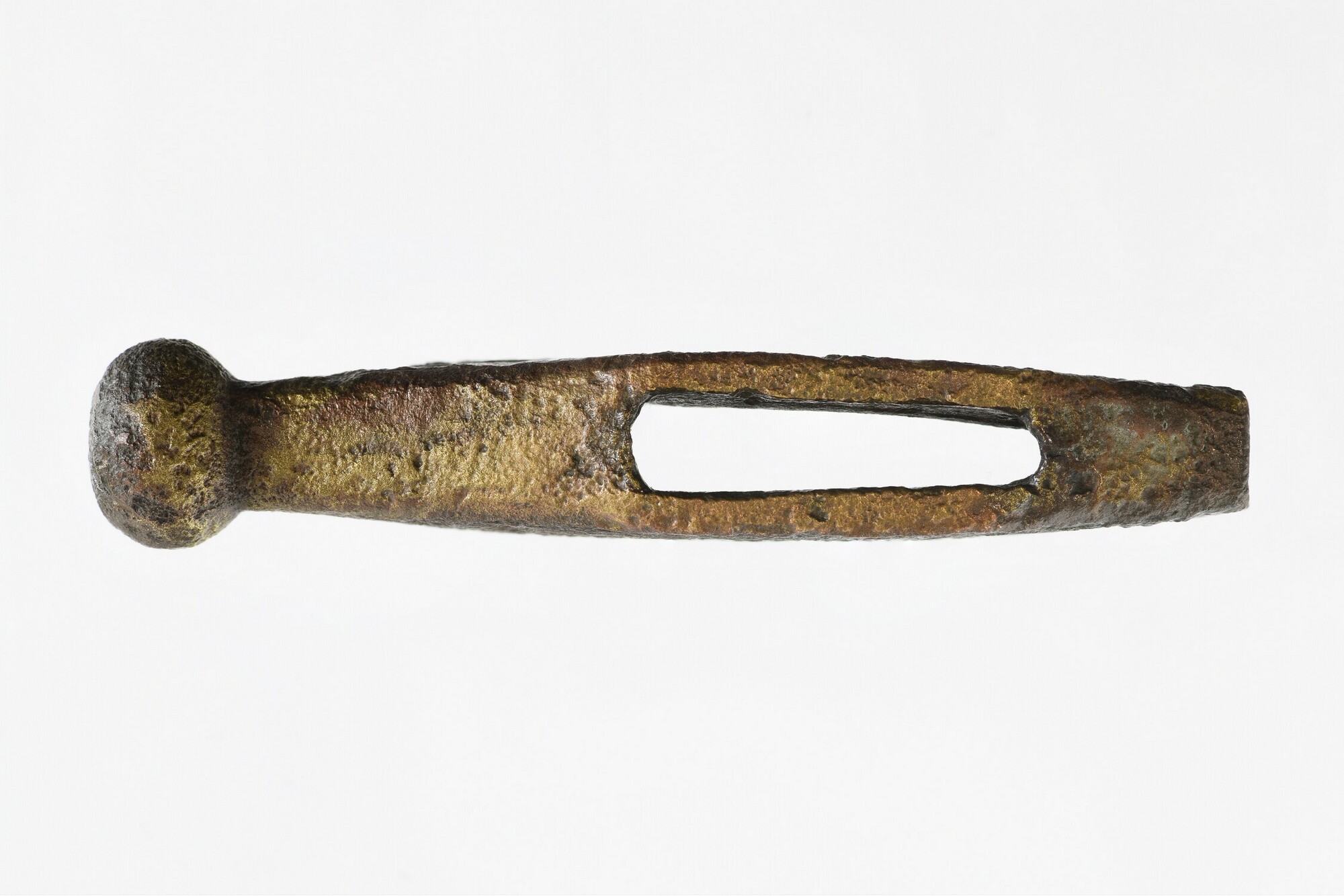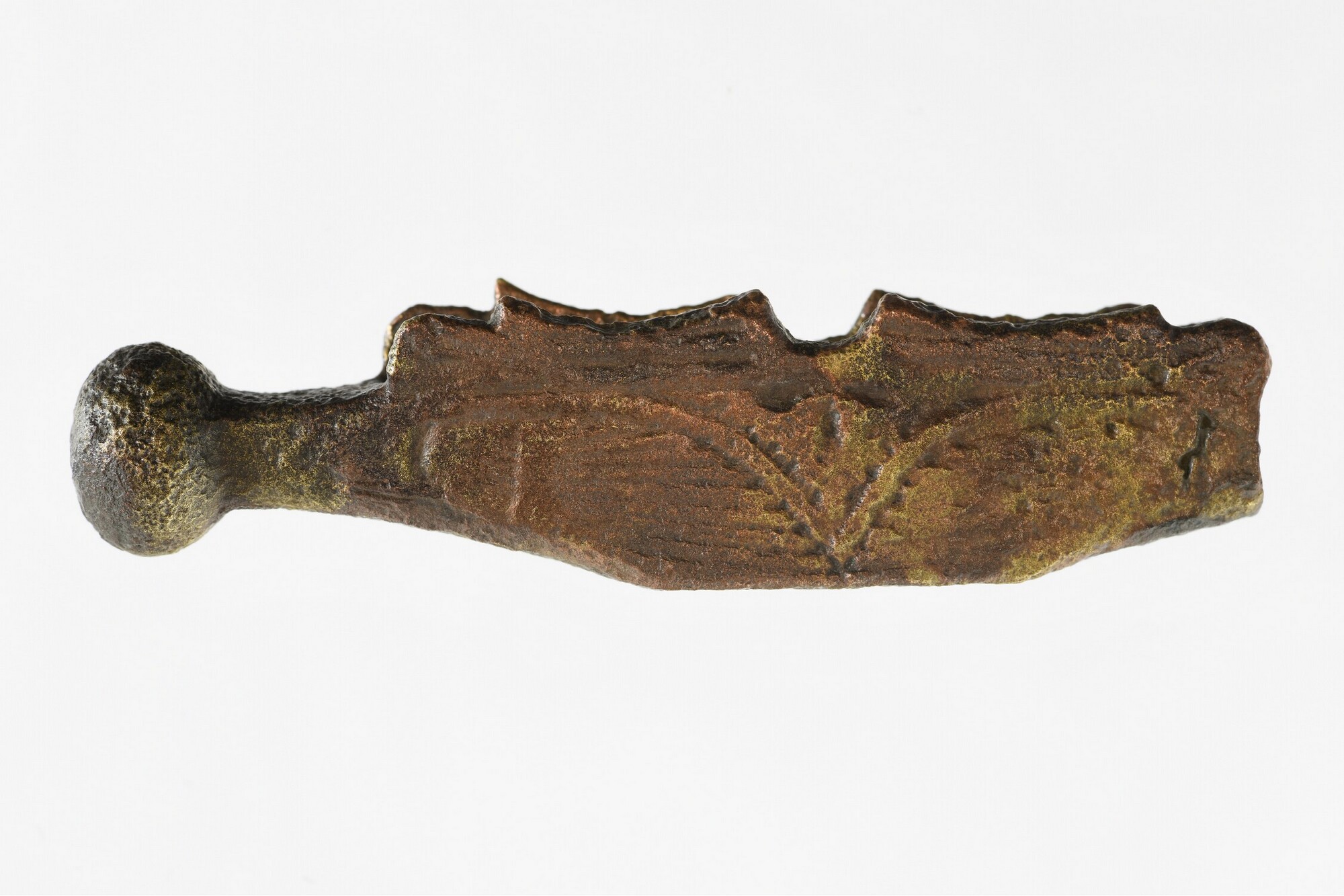 Pareerstang van dolk of klein zwaard; een knopvormig uiteinde; gegraveerde lijnversiering