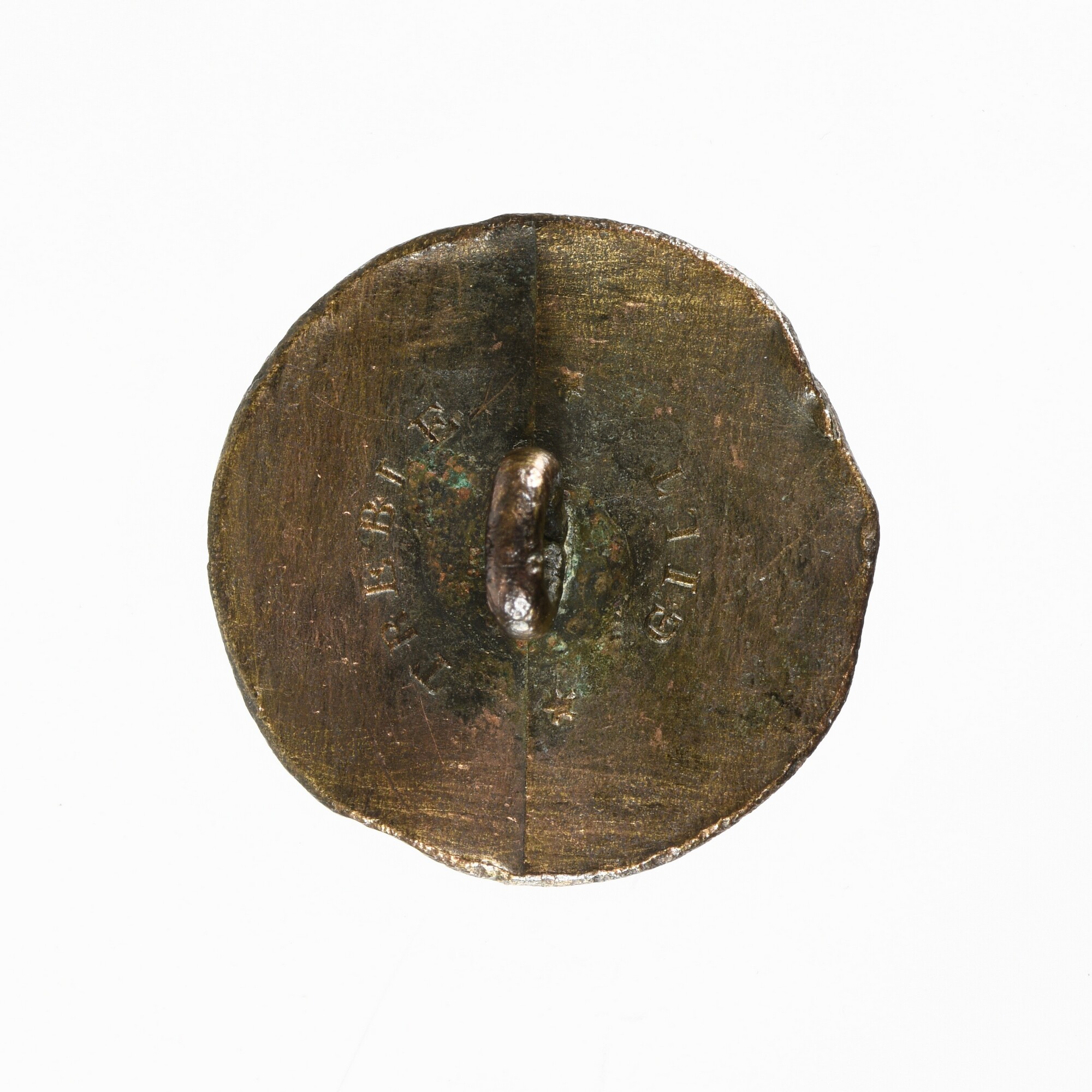 Knoop; draadoog; marine; vz.: anker met ketting binnen een kabelrand; kz.: gemerkt rond oog: TREBLE ? GILT ?; gewicht: 6.08 gram