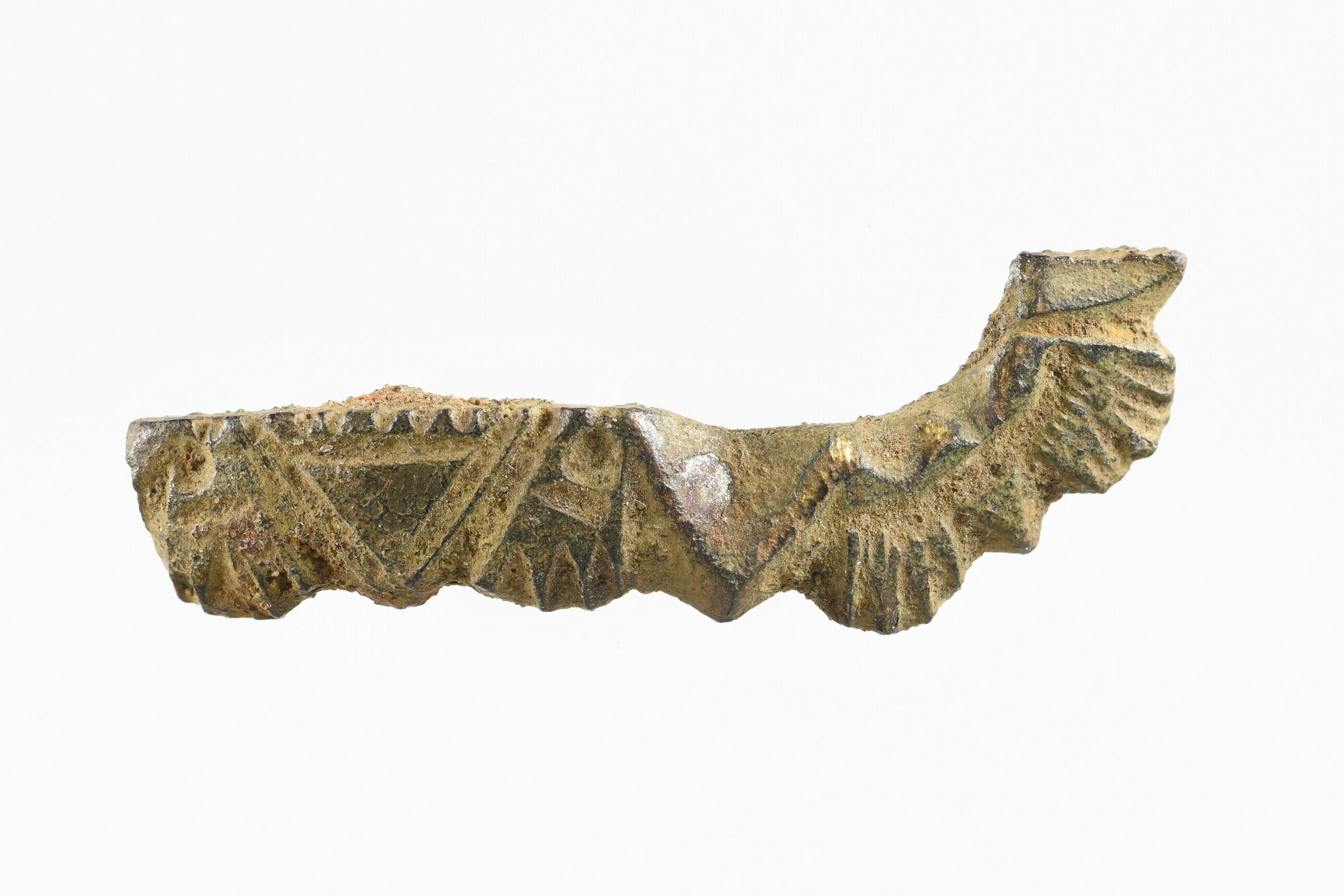 Gesp; fragment; versierd met driehoekige motieven; vondstdatum: februari 2021