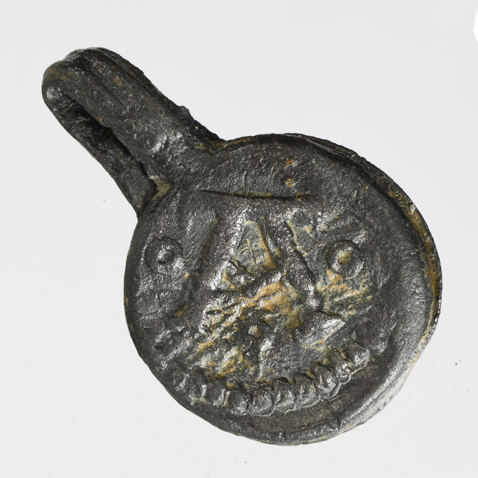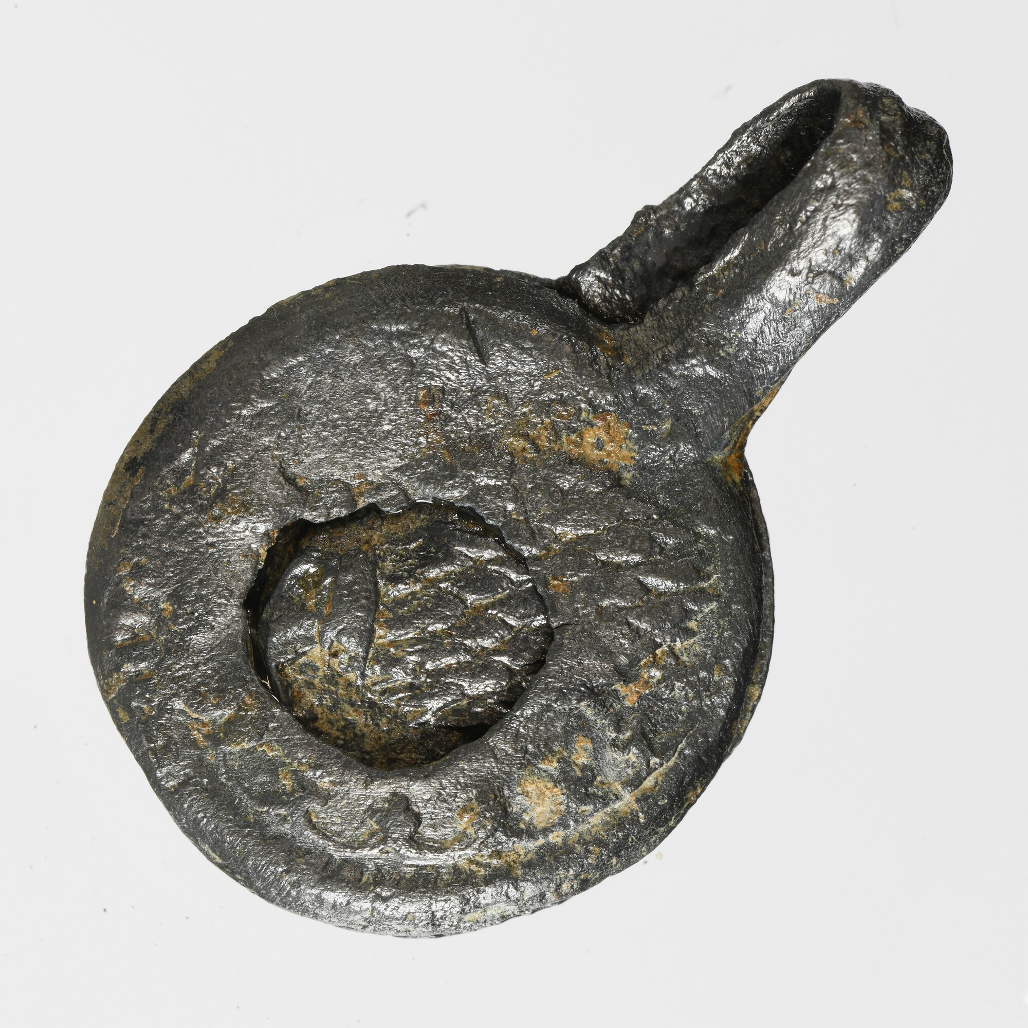 Textiellood; vz.: binnen versiering een kaardebol; kz.: binnen parelrand een A met rondjes aan drie zijden; herkomst: Augsburg